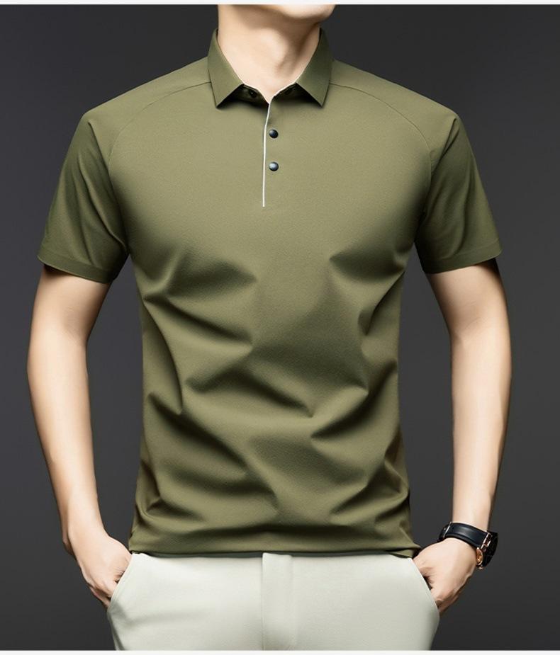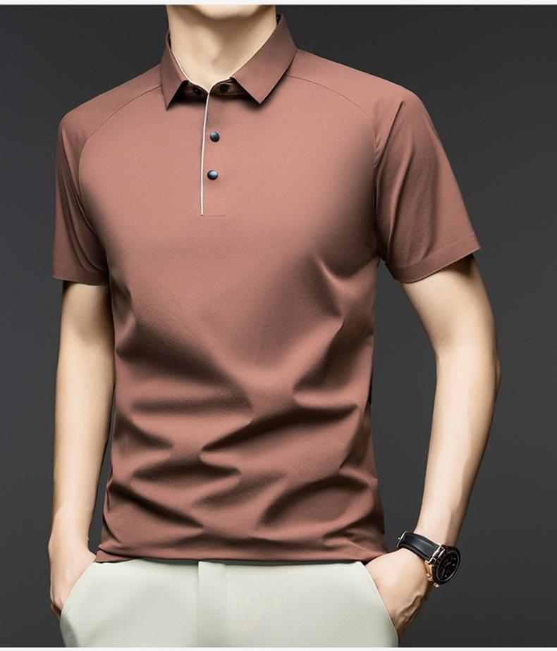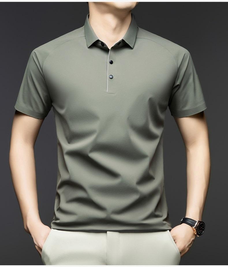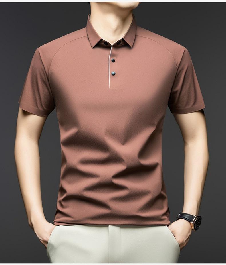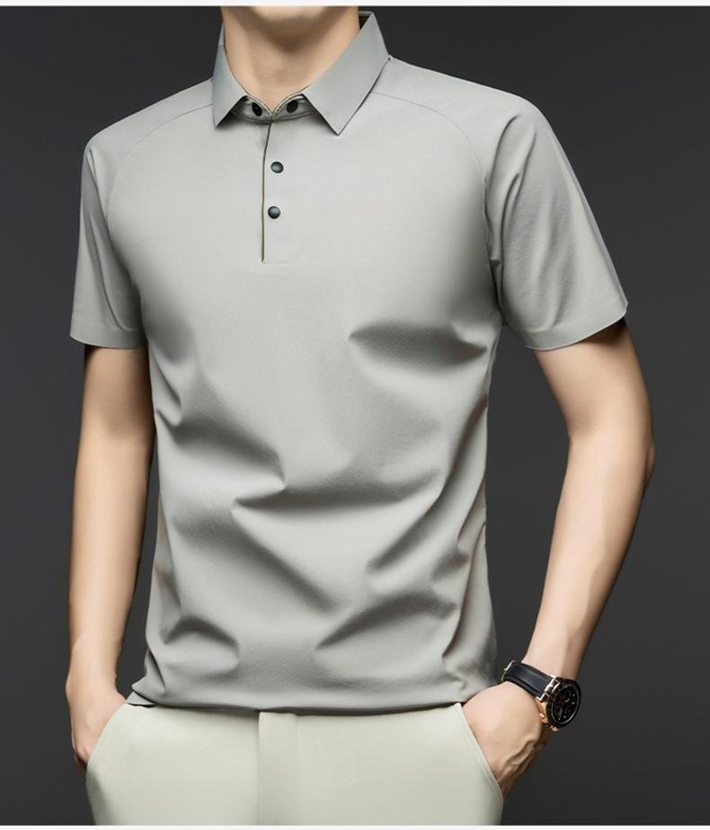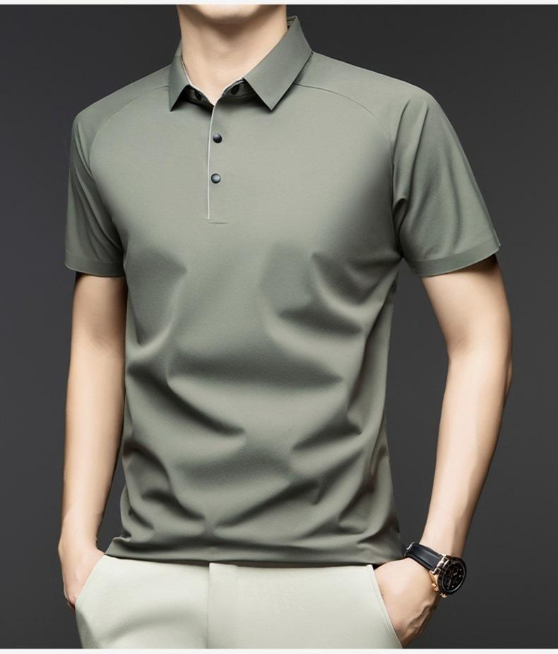 Camisa Polo de Seda de Hielo de Alta Gama para Hombre de Negocios Slim-fit Camisa Paul 2025 Verano Solapa Moderna Versátil Camiseta de Manga Corta para Hombre