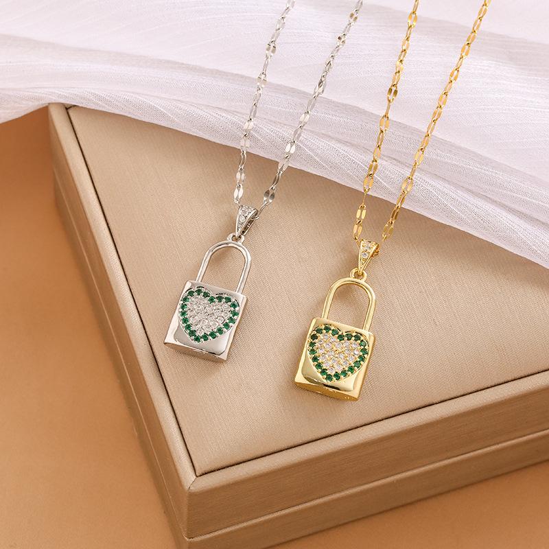 Nuevo colgante de cerradura de circonita con incrustaciones de cobre a la moda, collar con ranura de amor, fabricantes de estilo coreano, joyería de comercio exterior al por mayor