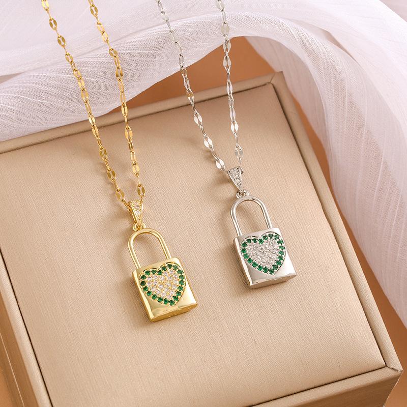 229 color zircon lock necklace-Golden Green, 229 color zircon necklace-silver Green