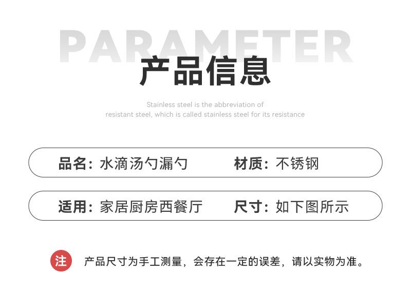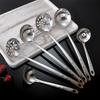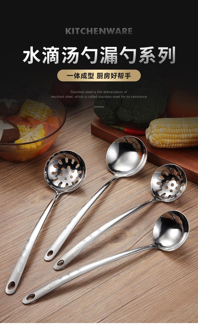 Cuchara de sopa de acero inoxidable con forma de gotas de agua, colador, cuchara para olla caliente, sopa doméstica, sopa espesa, cuchara con filtro de mango largo, gotas de cotiledón