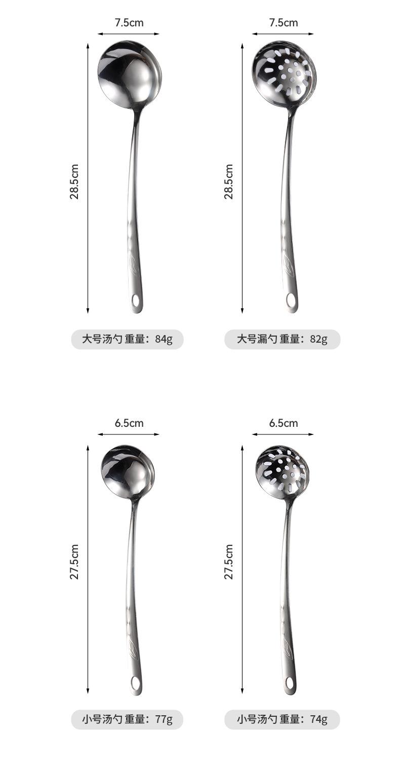 Large spoon (thick style), Large colander (thick version), Small spoon (thick style), Small colander (thick version)