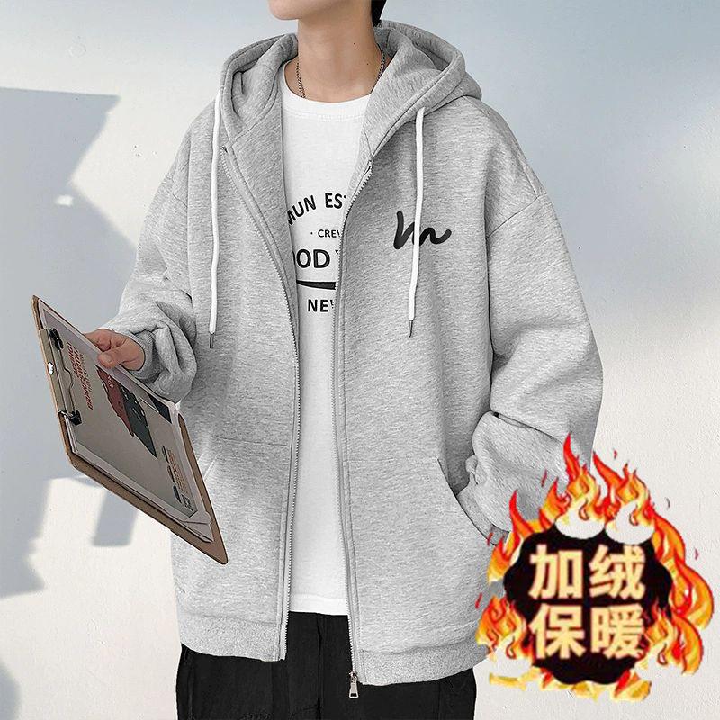 Suéter cárdigan para hombre, otoño e invierno, nueva chaqueta con capucha, abrigo holgado, moderno, simple, creativo, americano, pesado, estudiante