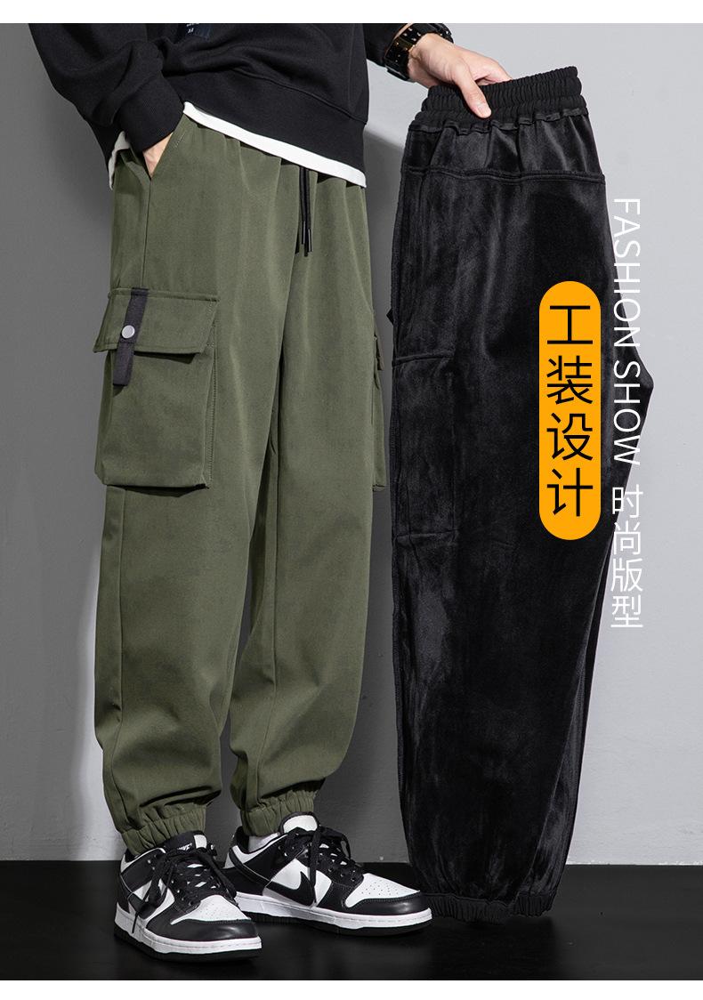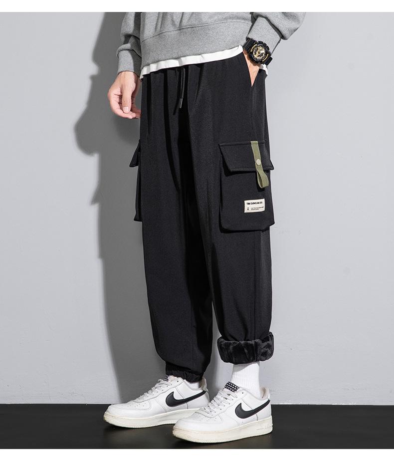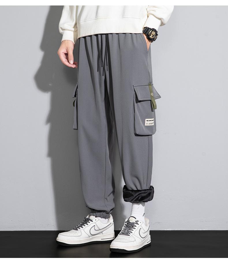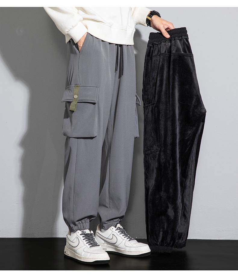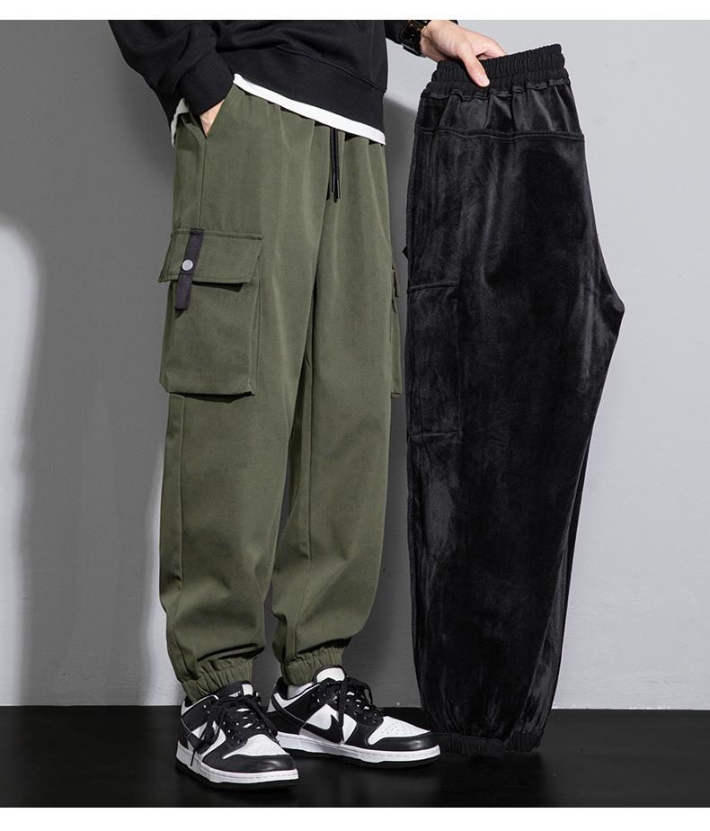 Mono grueso con forro polar para hombre, pantalones deportivos casuales con cordones en los tobillos para otoño e invierno, holgados, de talla grande