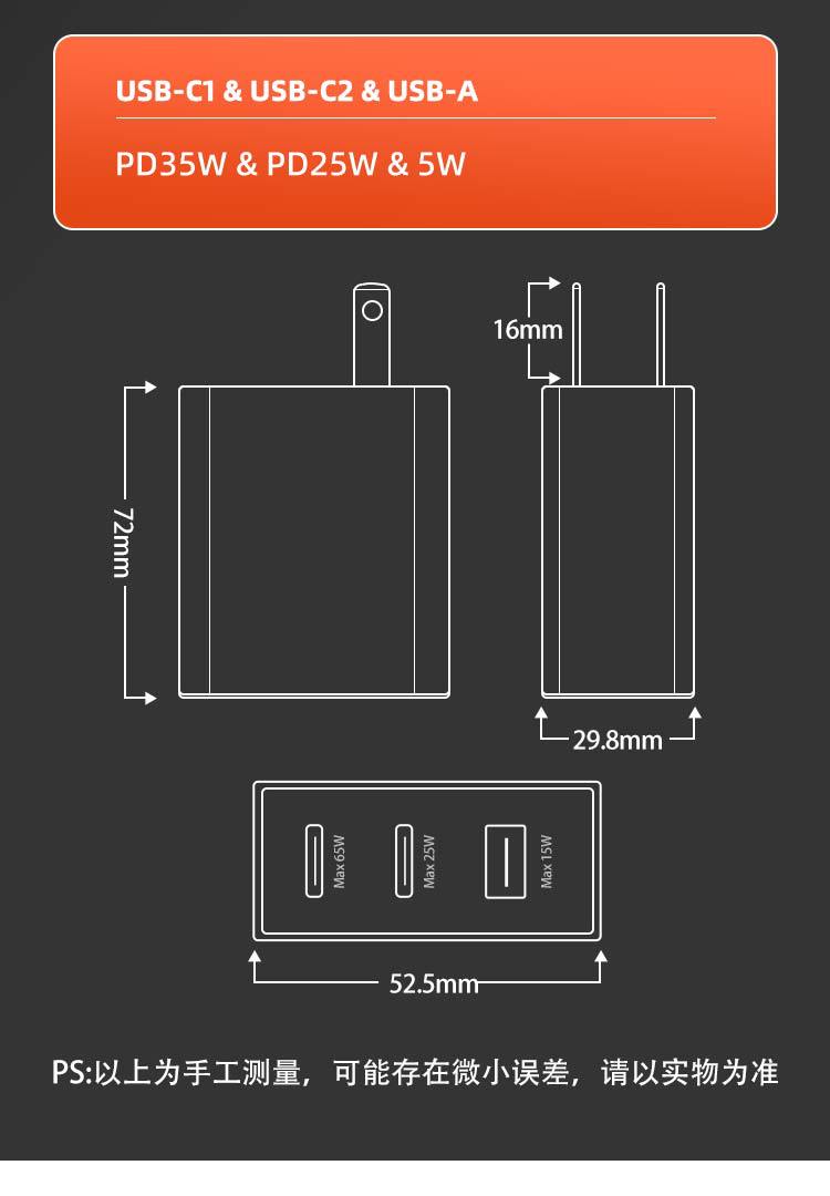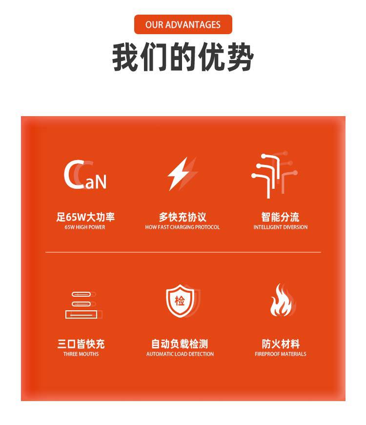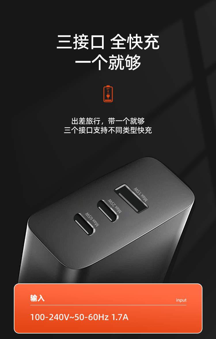 Cargador de Nitruro de Galio 65W Estándar Americano Adecuado para Samsung S24 Apple 15 Protocolo Completo Cargador Original de Fábrica para Teléfono Móvil Huawei