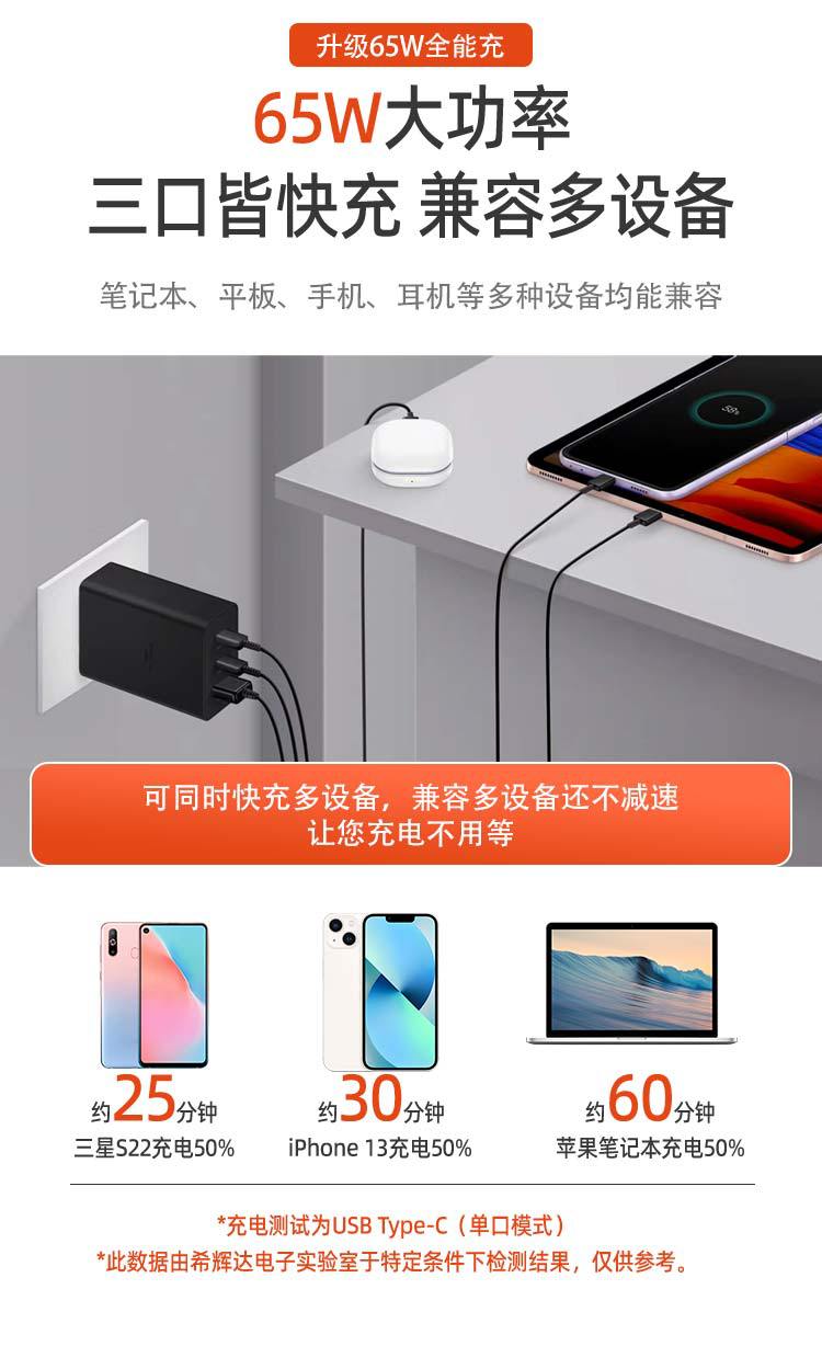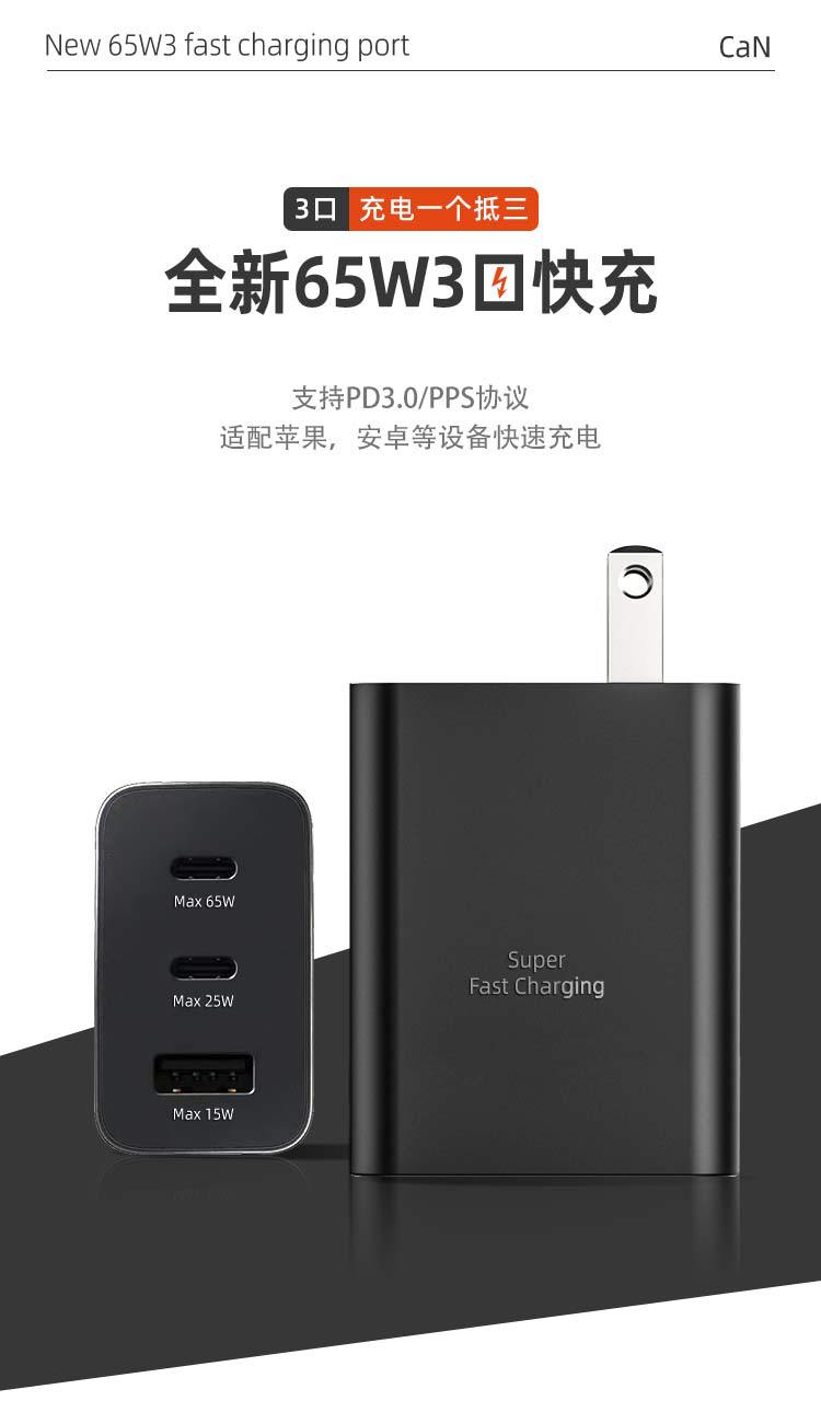 Cargador de nitruro de galio de 65 W estándar estadounidense adecuado para Samsung S24 Apple 15 protocolo completo cargador original de fábrica para teléfono móvil Huawei