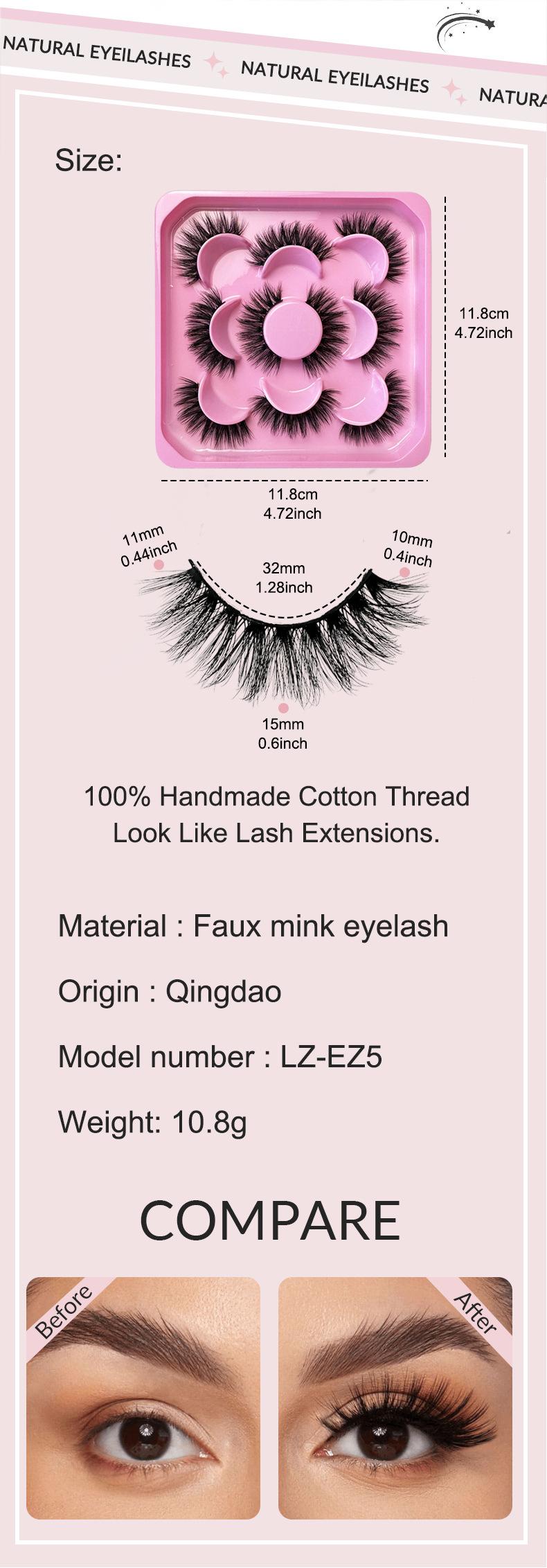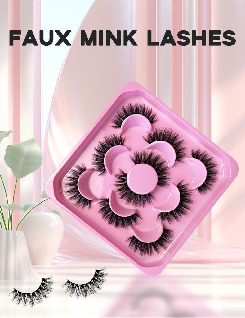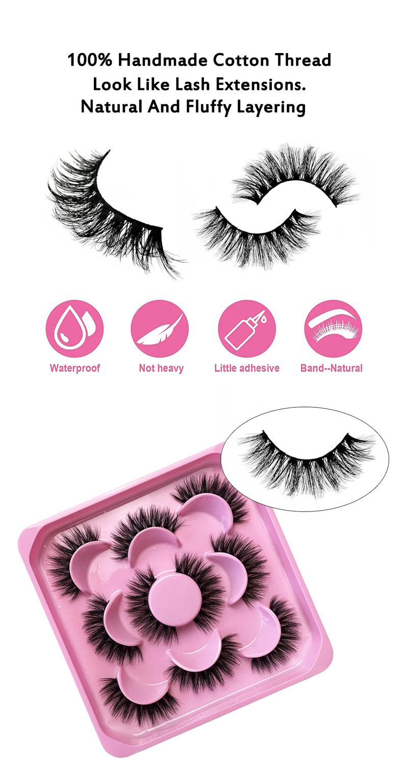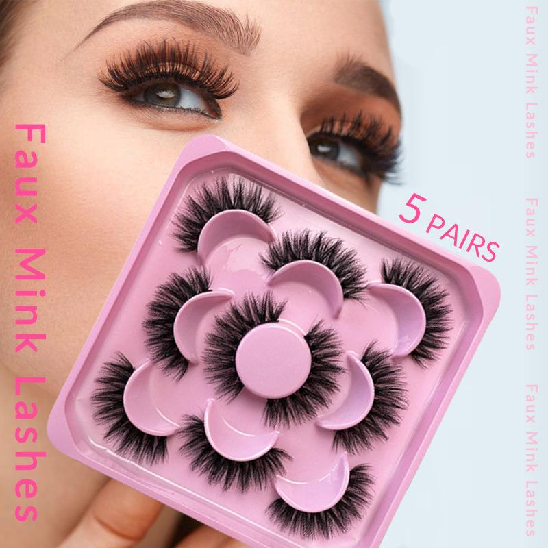 Nuevas pestañas de visón en tira para comercio exterior transfronterizo 5 pares de plataforma de loto de una sola pieza pestañas postizas europeas y americanas al por mayor