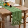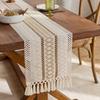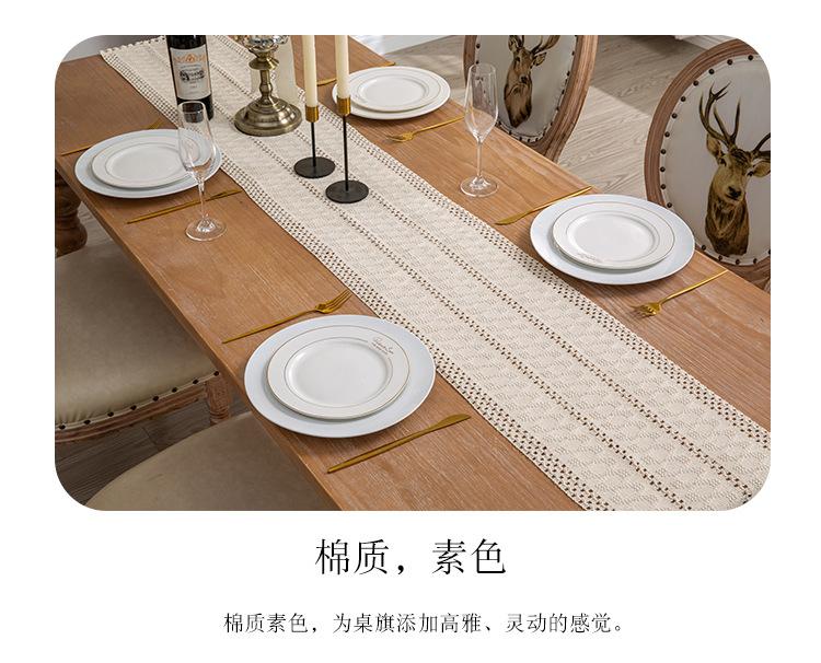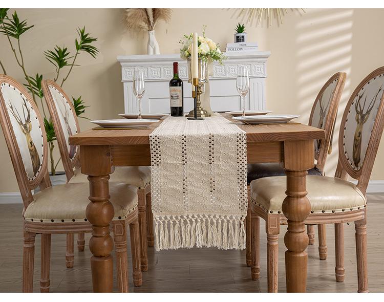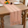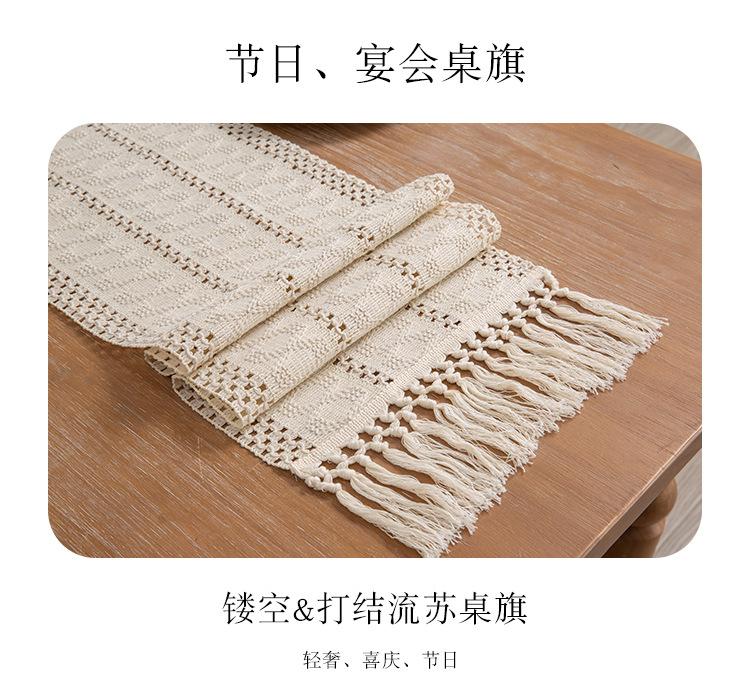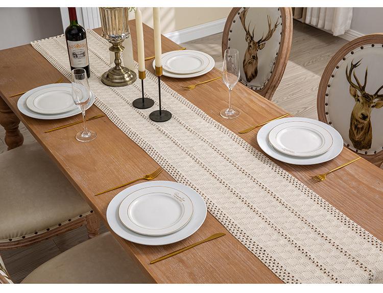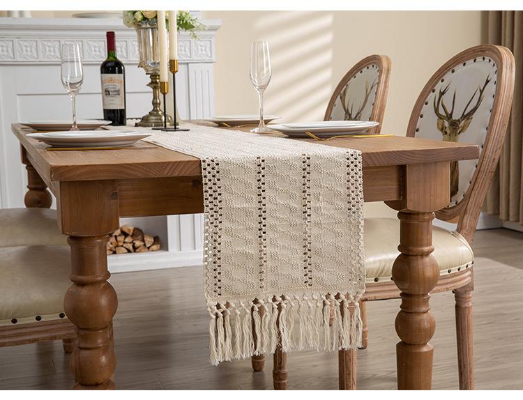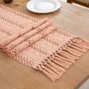 Camino de mesa de algodón y lino con borlas, hecho a mano, con nudo hueco, largo, para mesa de comedor, decorativo, para mesa de centro, zapatero, funda de tela, toalla para el extremo de la cama