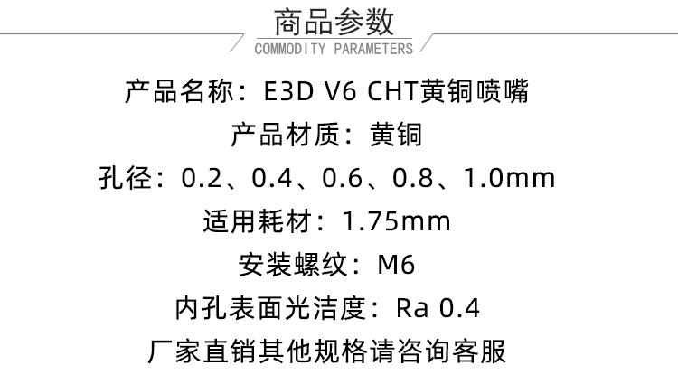 E3D V6 brass CHT nozzle 0.2mm, E3D V6 brass CHT nozzle 0.4mm, E3D V6 brass CHT nozzle 0.6mm, E3D V6 brass CHT ...