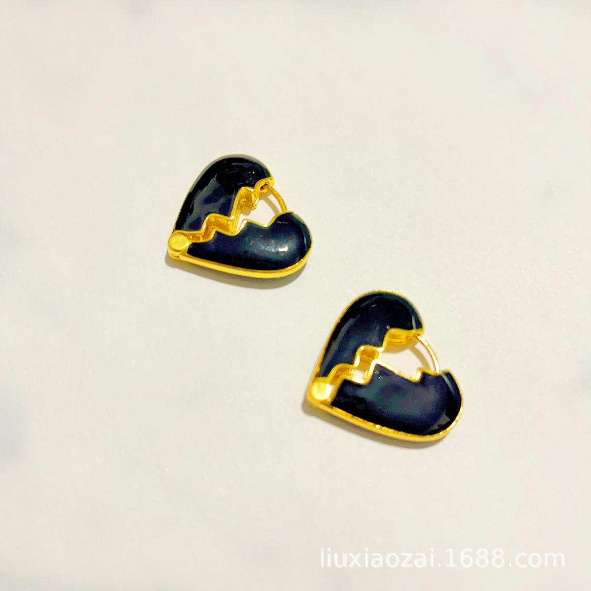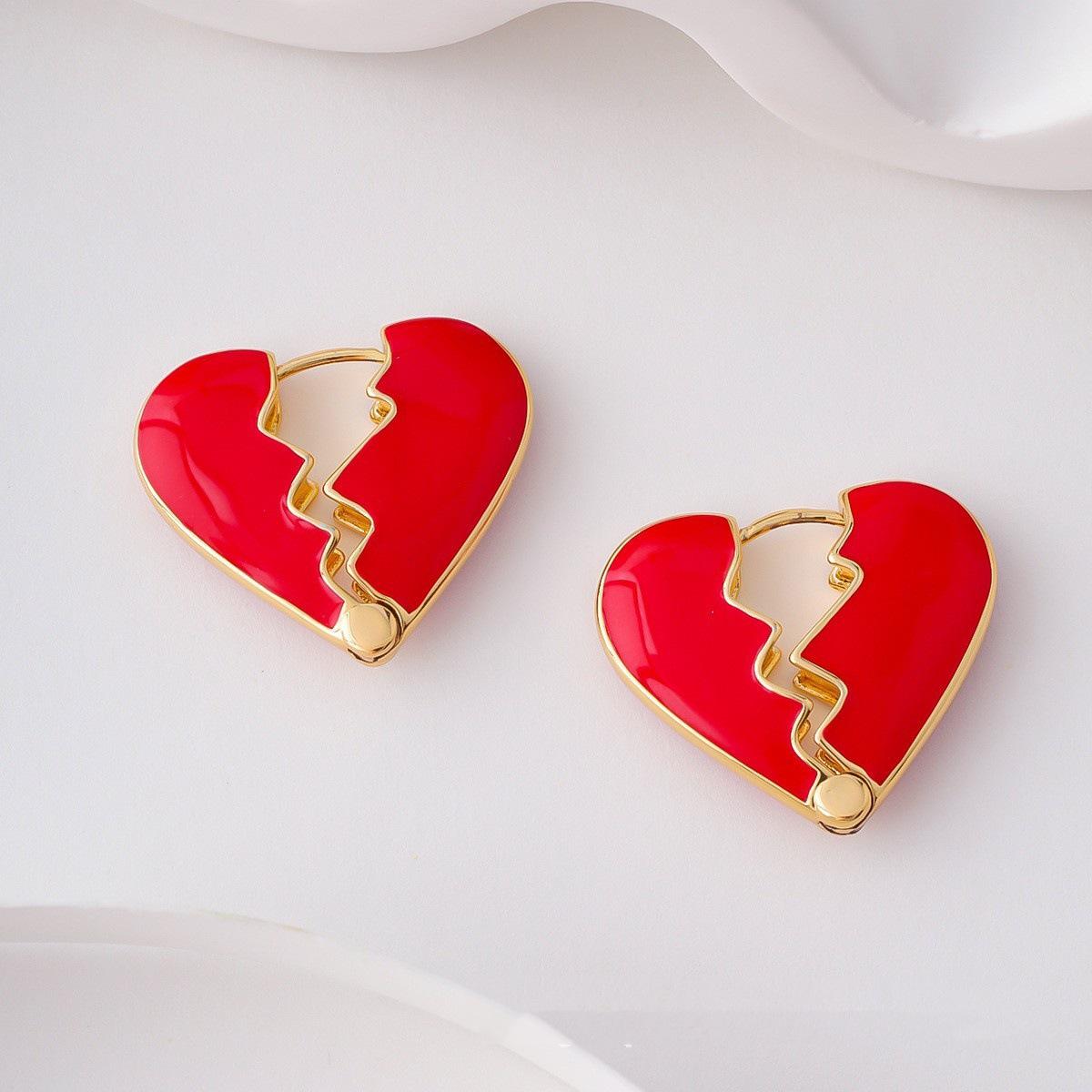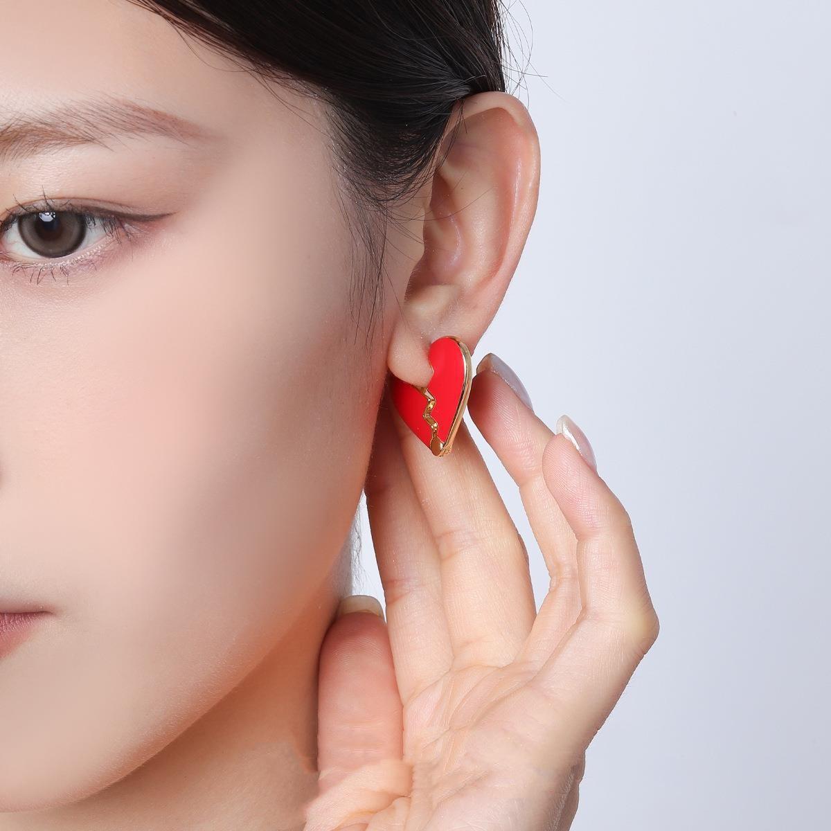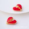 Pendientes de botón con forma de corazón de estilo europeo y americano, elegantes, esmaltados y chapados en cobre, con nicho dorado, para celebridades.