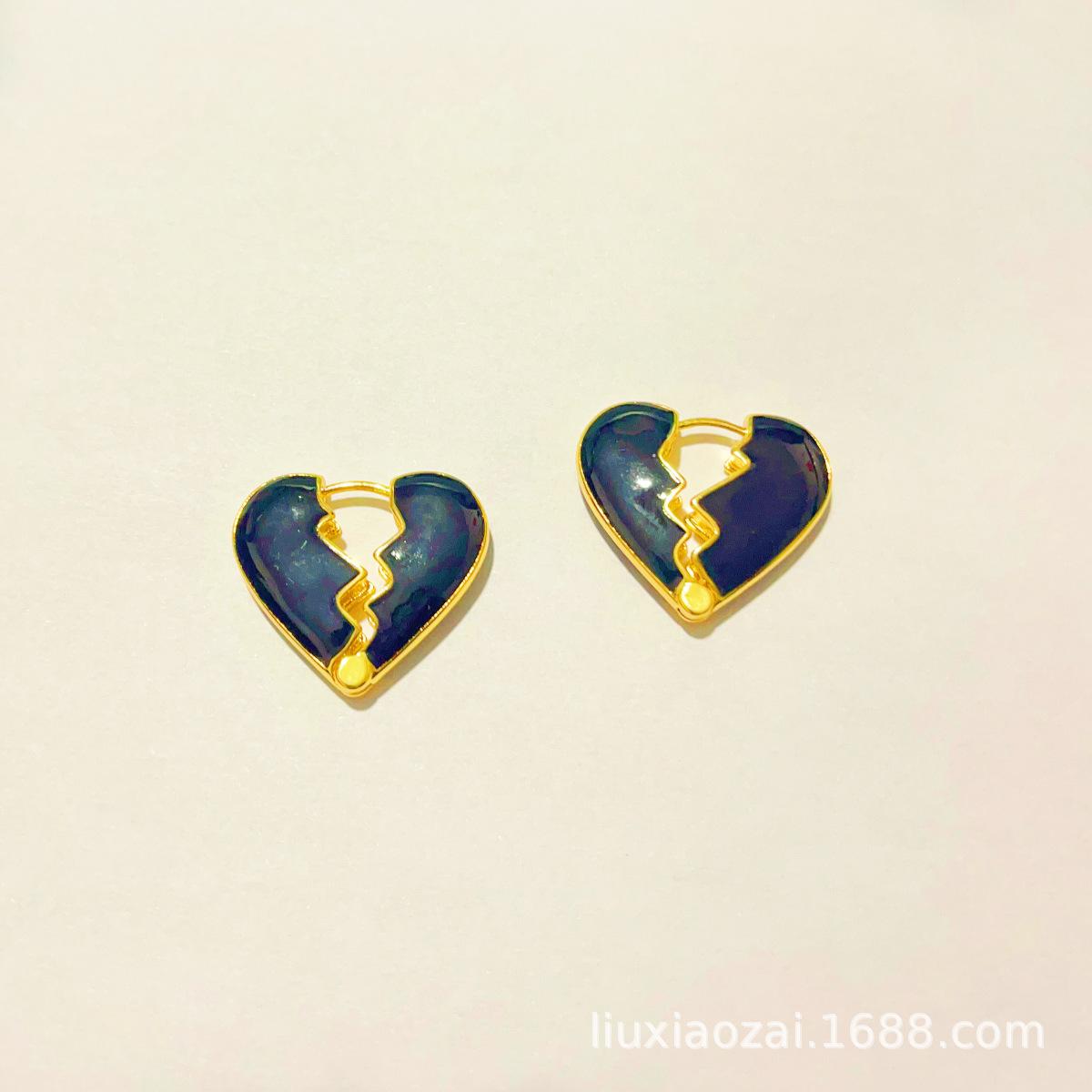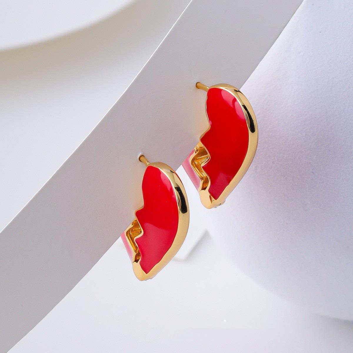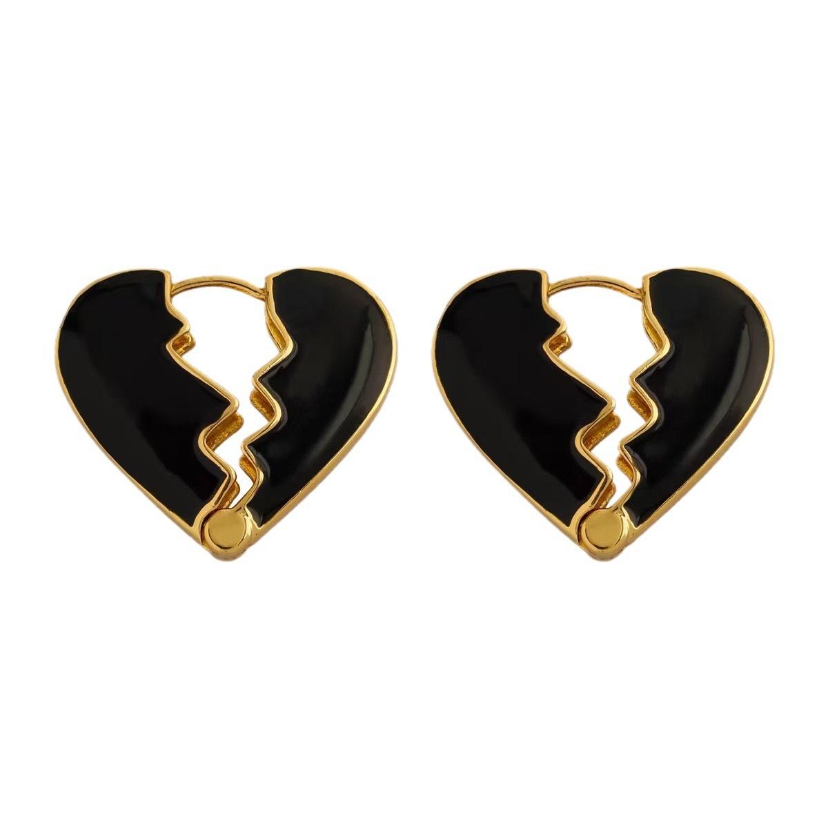 Pendientes de botón con forma de corazón de estilo europeo y americano, elegantes, esmaltados y chapados en cobre, con nicho dorado, para celebridades.