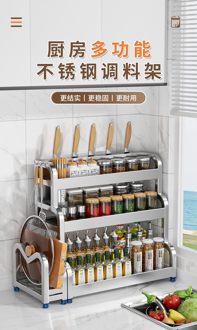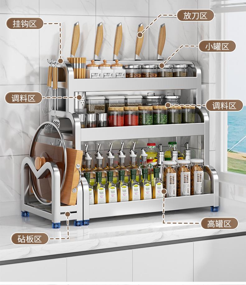 Estante de acero inoxidable para condimentos de cocina, soporte para palillos y cuchillos, estante multifuncional para condimentos de encimera para el hogar