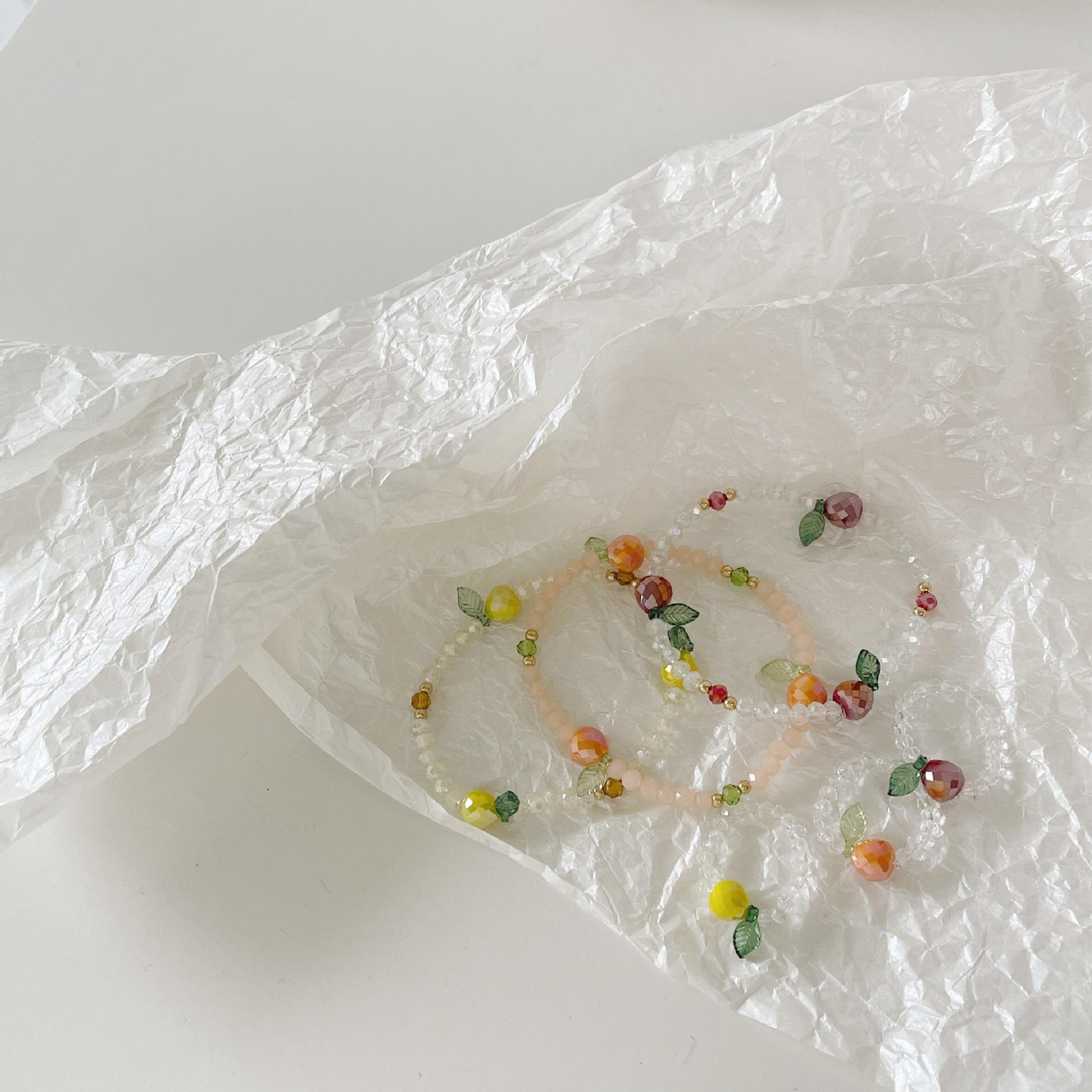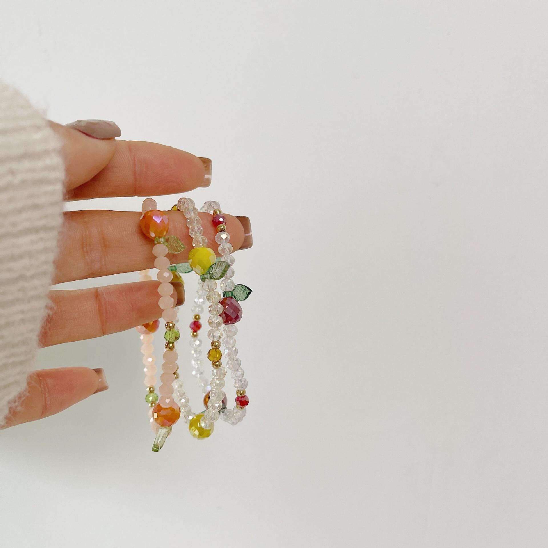 Compra Corea del Sur Dongdaemun Pulsera de Cuentas de Fresa y Fruta Pulsera Primavera y Verano Hojas Verdes Cristal Tejido Pulsera Venta al por Mayor al por mayor en Joom.pro