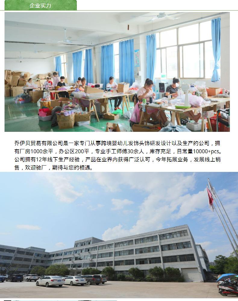 Yiwu Joeybei Trading es un fabricante especializado en accesorios para el cabello para bebés y niños, que integra investigación y desarrollo, diseño, procesamiento y producción independientes. Cuenta con una larga trayectoria profesional y un estilo de diseño moderno y vanguardista. Los materiales utilizados en sus productos son ecológicos y suaves, con una excelente mano de obra y una innovación continua. , con la capacidad de estabilizar el suministro y resolver las dificultades y los problemas de los clientes. La empresa cuenta con más de 1500 metros cuadrados de naves de fabricación y casi 60 trabajadores manuales profesionales en la línea de producción. Cientos de modelos están en stock y podemos realizar pruebas personalizadas, personalización de muestras, personalización de dibujos, personalización de materiales entrantes, personalización de lotes pequeños, suministro estable, ciclo de envío corto y plazos de entrega cortos. Garantizado. Cuenta con la certificación de inspección de calidad estándar europea TÜV, alta calidad y es popular en Amazon, AliExpress y otras plataformas internacionales. La empresa entra en el mercado con calidad, consolida la industria con integridad y genera confianza con su servicio. Le invitamos a visitar nuestra fábrica para realizar negocios y recibir orientación turística.