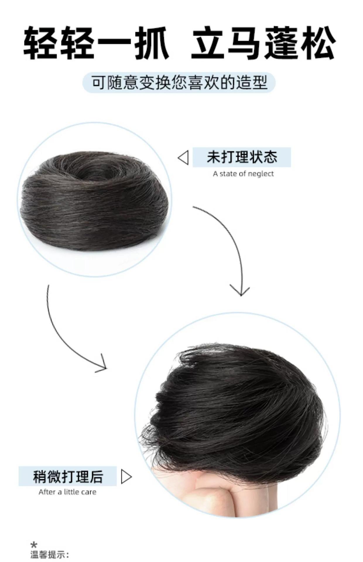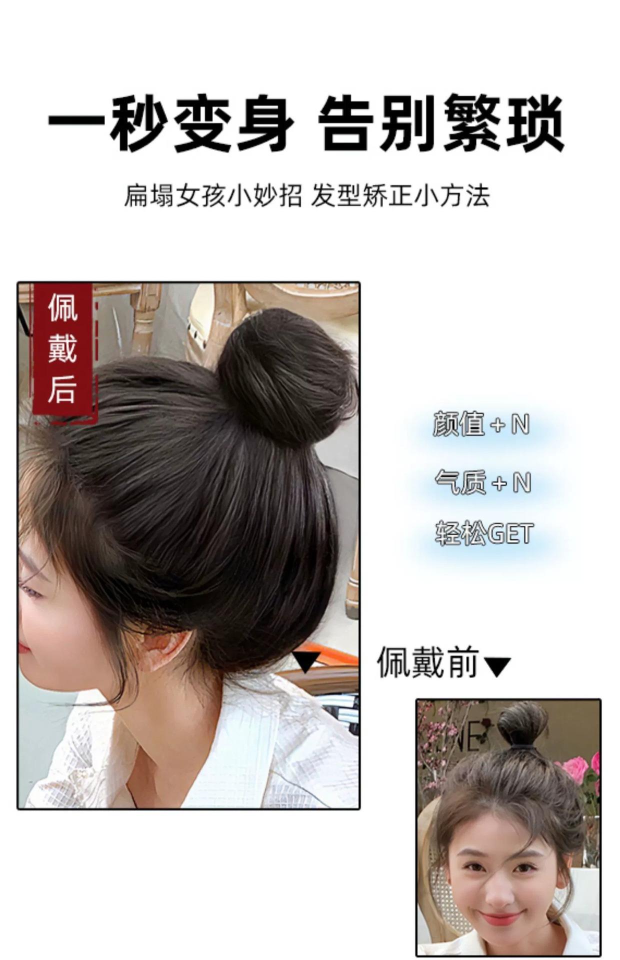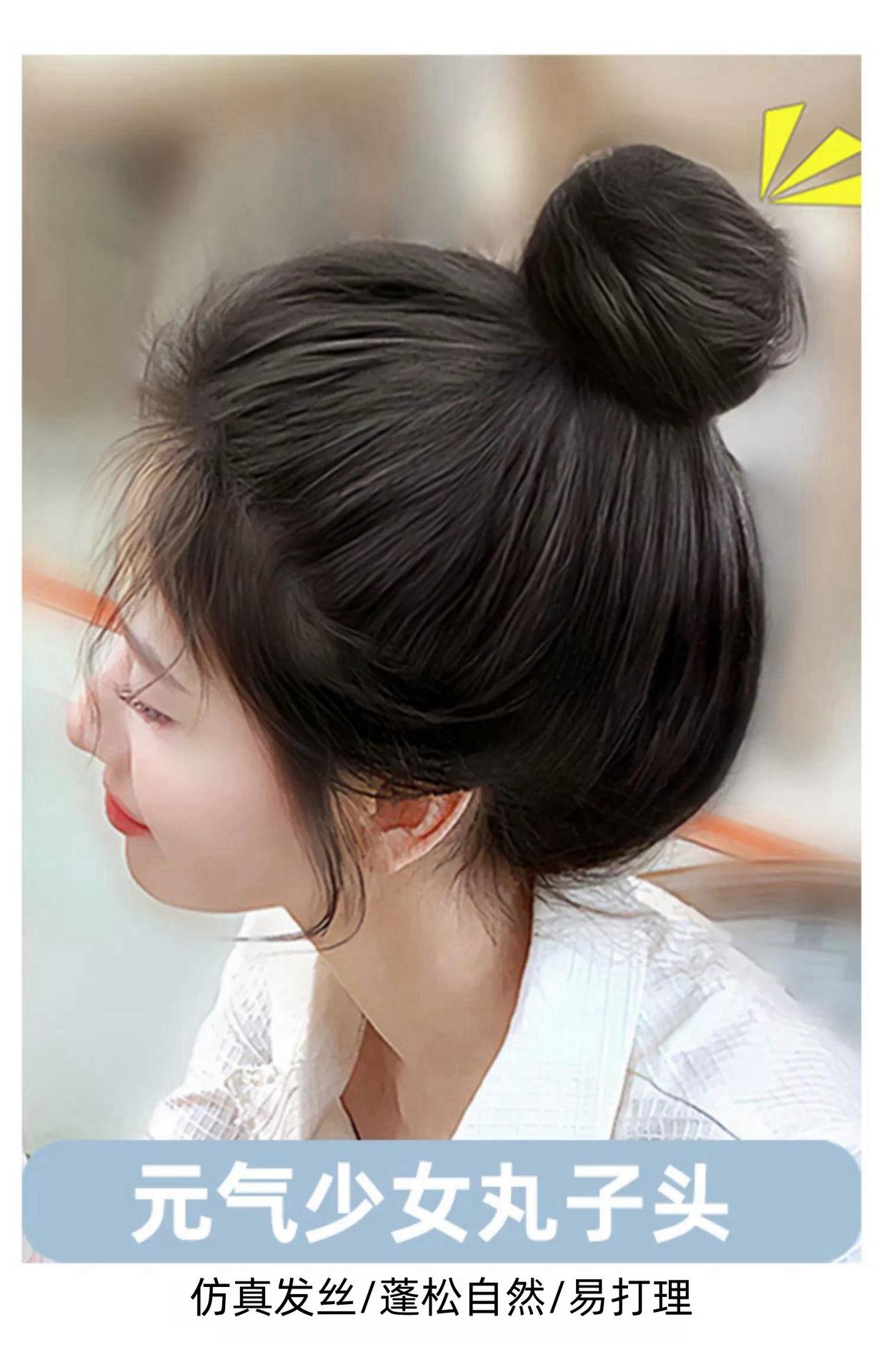 Peluca Cabeza de Albóndiga Simulación Cabello Incremento Natural Esponjoso Anillo para el Cabello Moño de Flores Moño Antiguo Adorno para el Cabello Perezoso