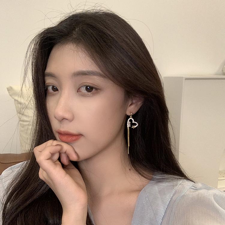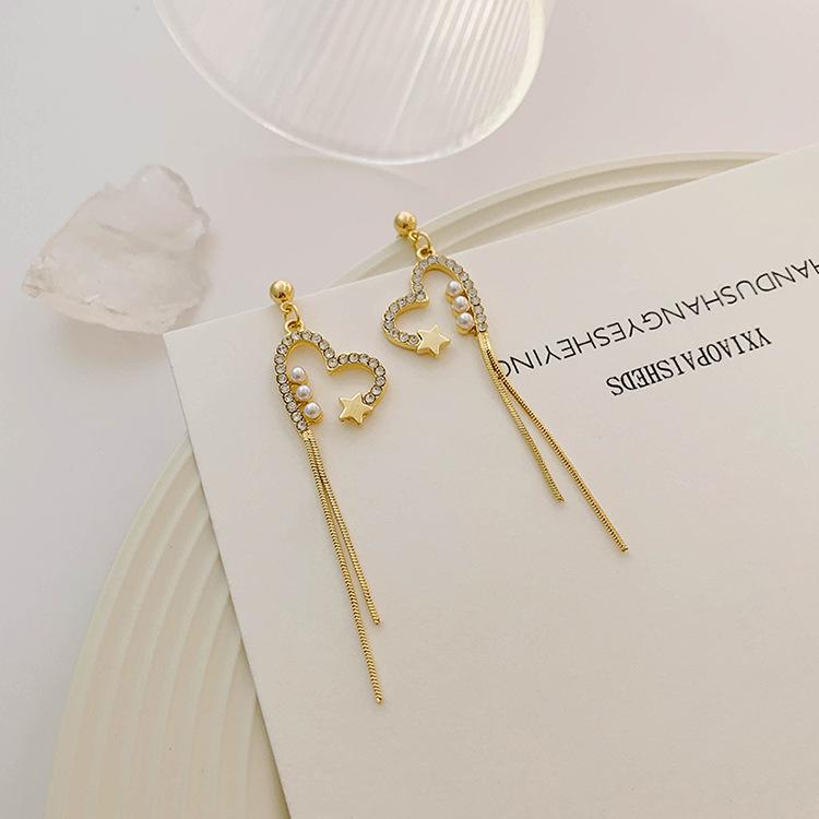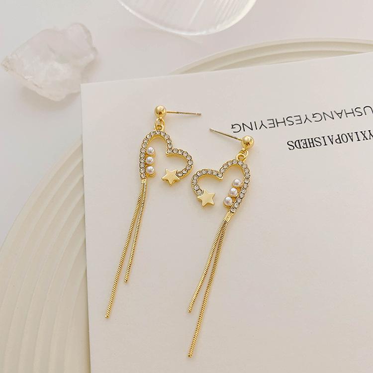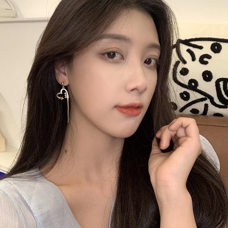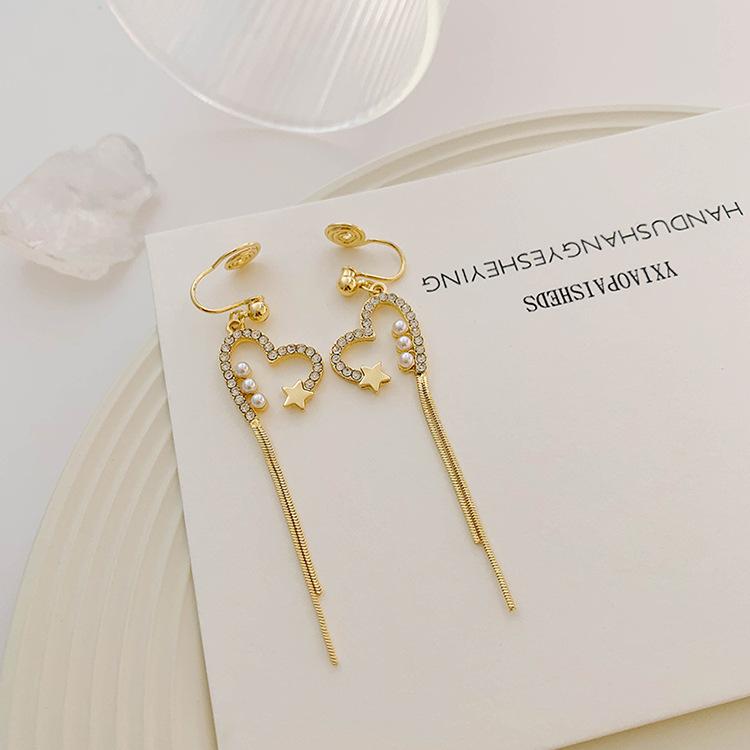 Pendientes de diseño único, hermosos y ahuecados con borlas, elegantes y largos pendientes de perlas con espiral antimosquitos y clip para las orejas sin orejas para mujer