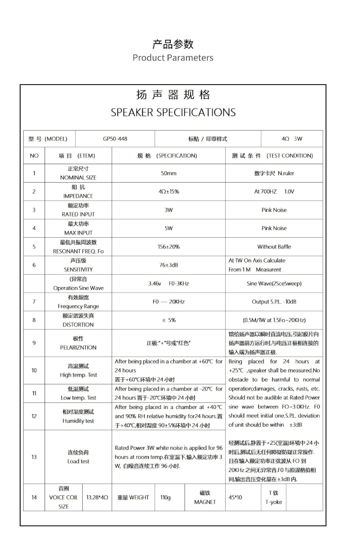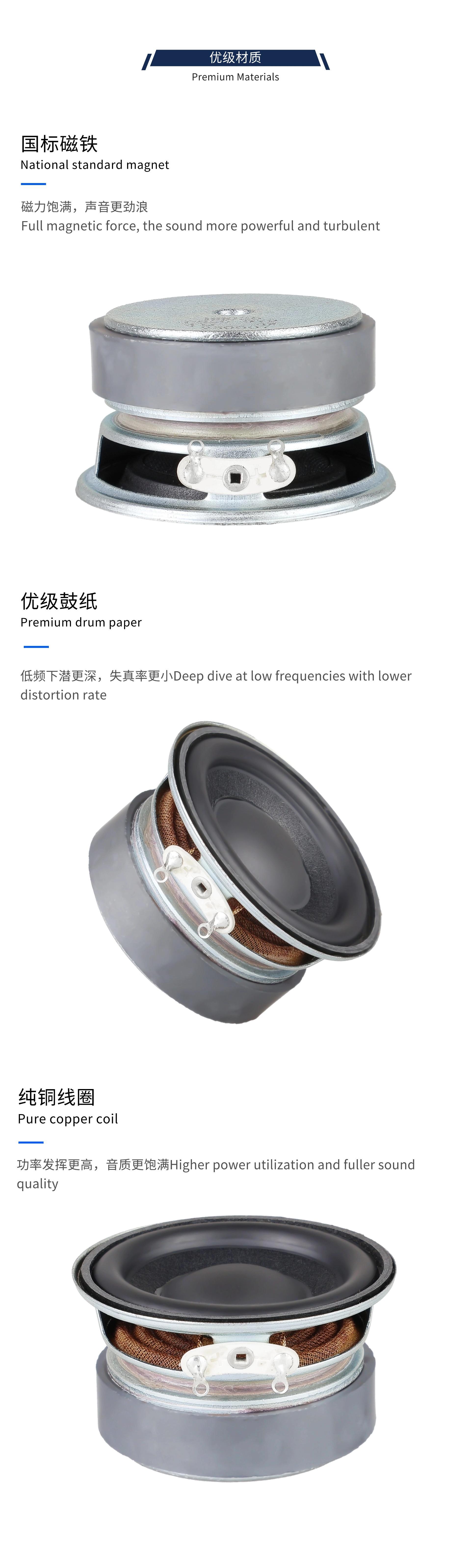 Altavoz de rango completo de 50 mm 2 pulgadas 4 ohmios 3 vatios Borde de goma nativa Tapa de PP Cañón pequeño de acero Altavoz magnético externo redondo