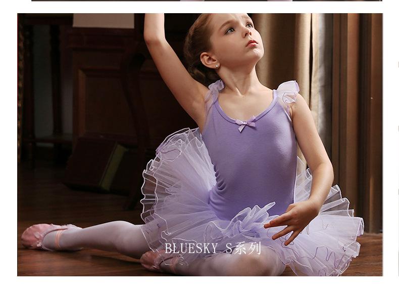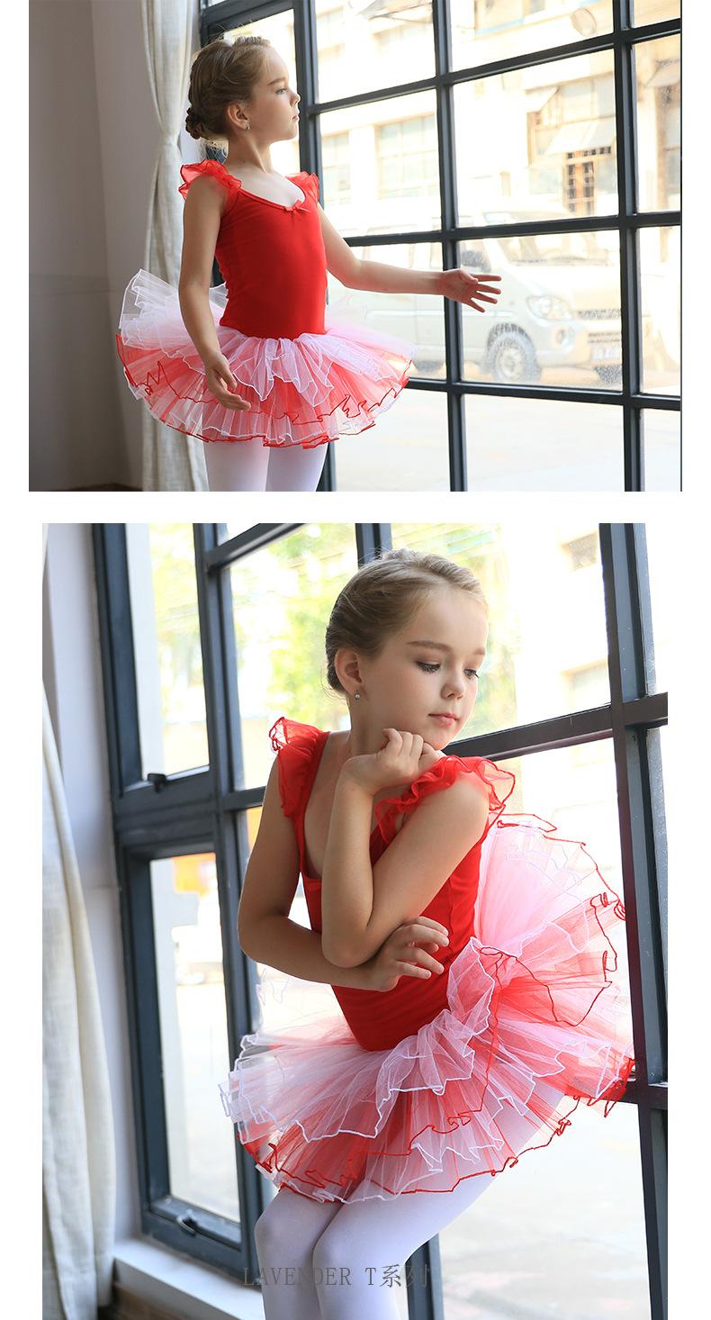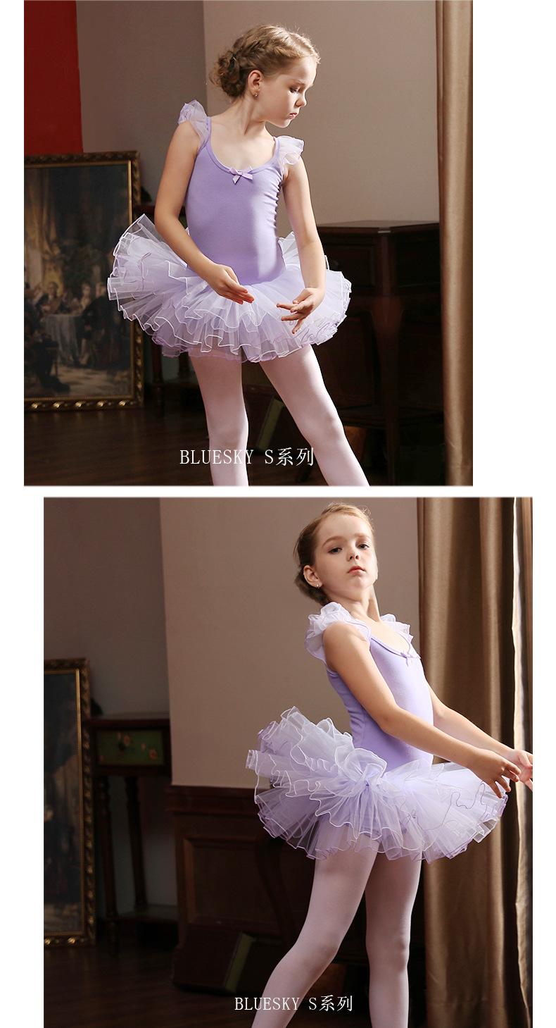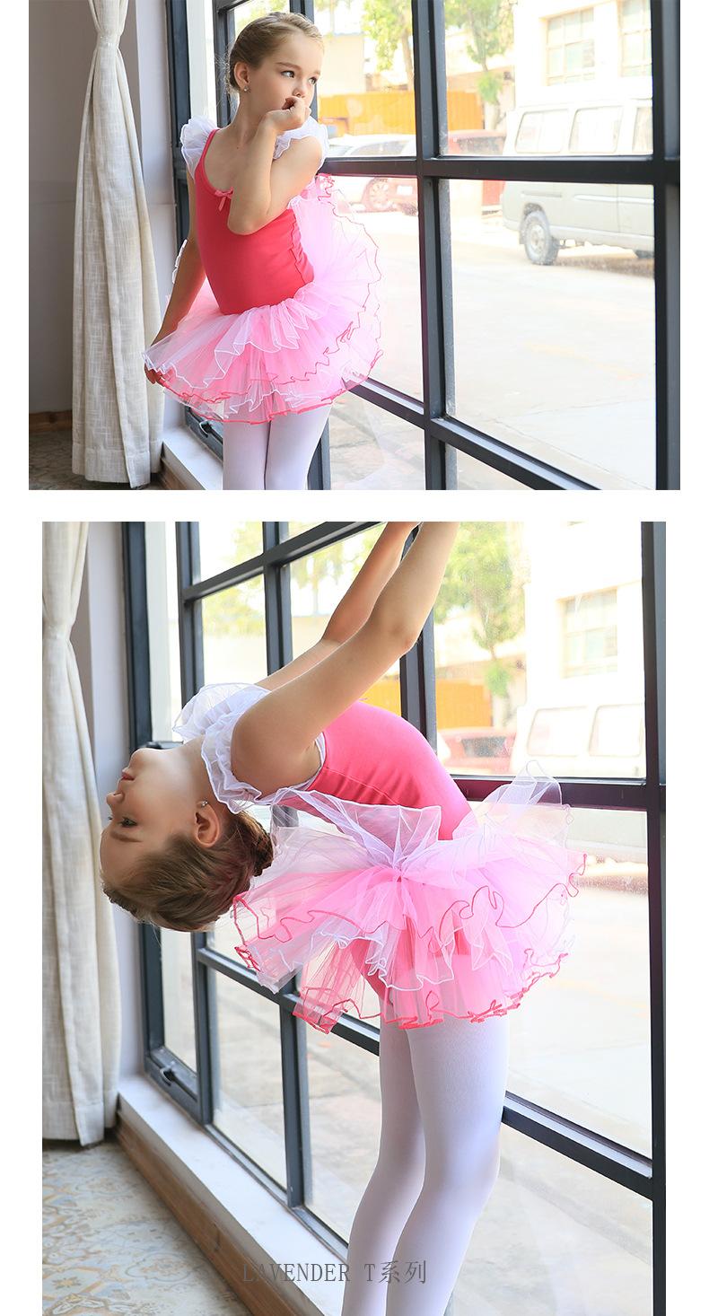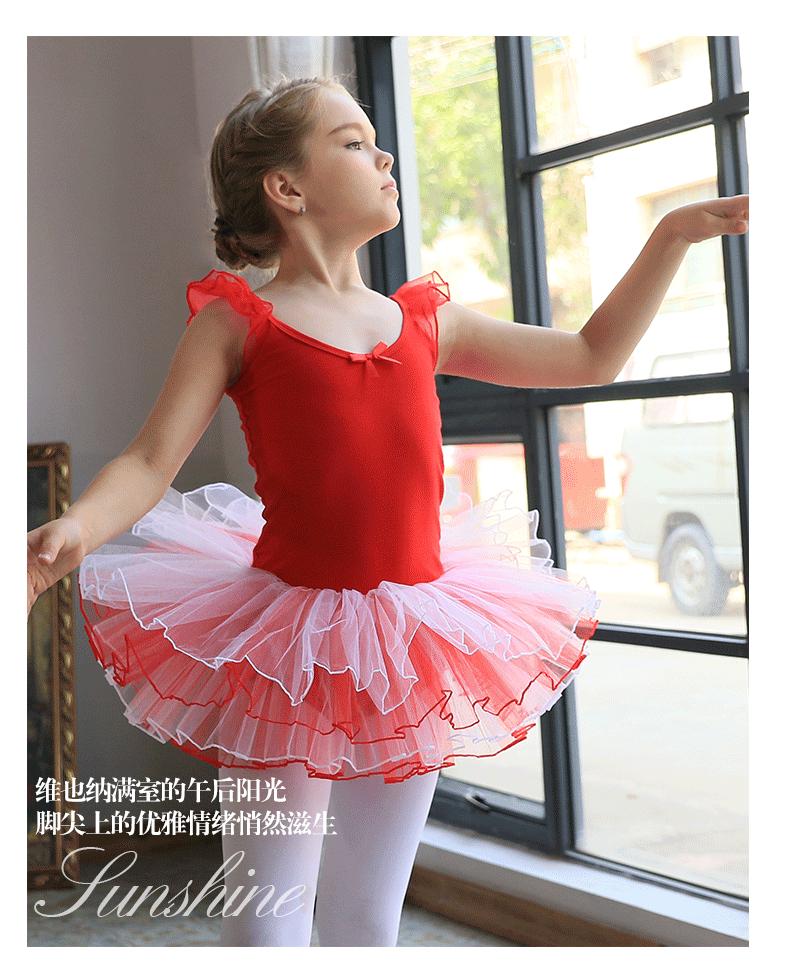 Traje de baile infantil de verano de manga corta, traje de actuación de baile infantil, falda abullonada, traje de práctica para niñas, falda de ballet