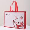 Bolso de mano no tejido laminado con diseño de conejo de dibujos animados, bolsa de compras para tienda de ropa, bolsa de regalo no tejida publicitaria con prensa en caliente