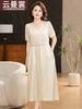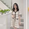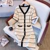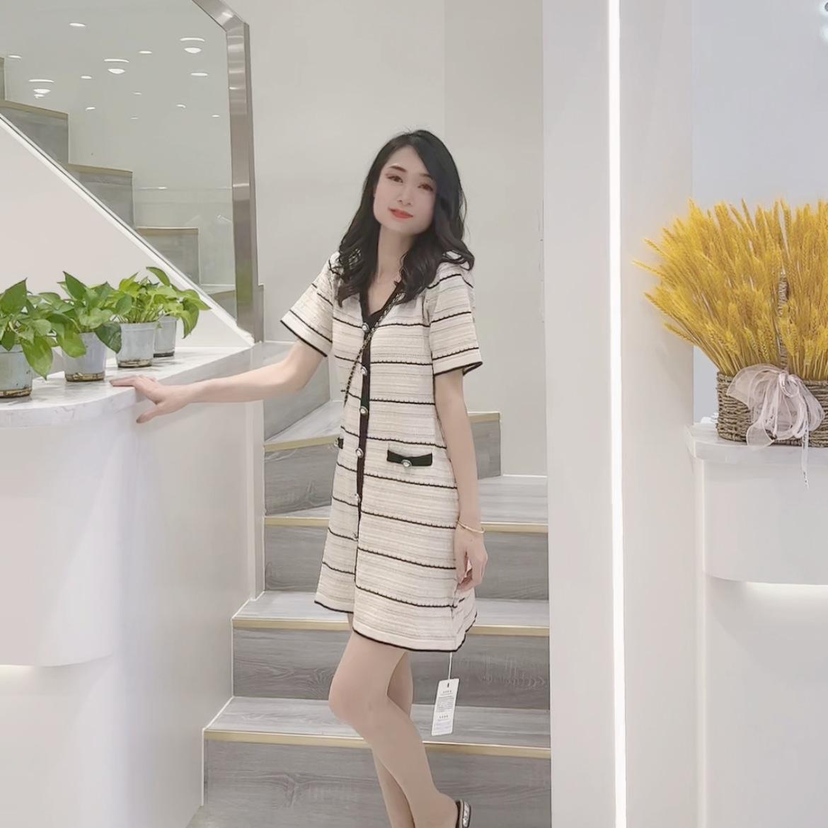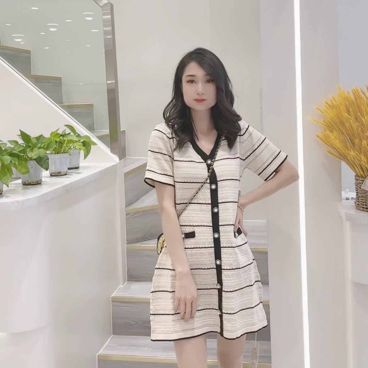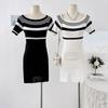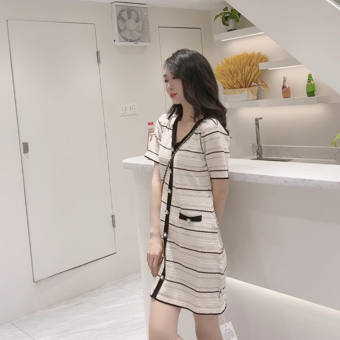 Vestido de Punto de Manga Corta a Rayas con Cuello en V para Mujer Verano Elegante de Alta Gama Elegante Lujo Ligero Cintura Ajustada Adelgazante