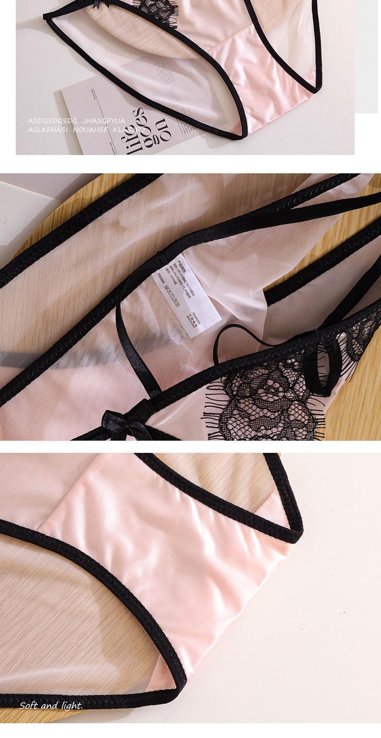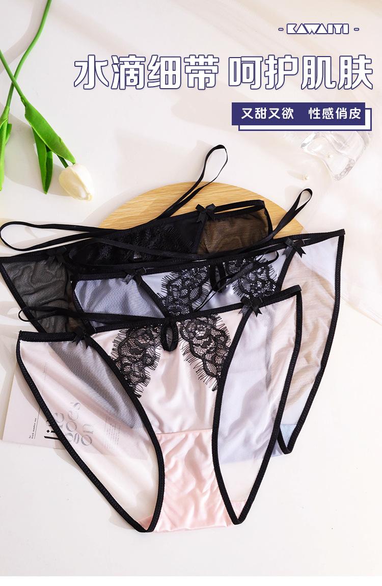 Gota de Agua No Elástico Pestaña Tirante Delgado Ropa Interior para Niñas Mujeres Malla Encaje Sexy Calzones de Cintura Baja Fondo de Algodón Recorte