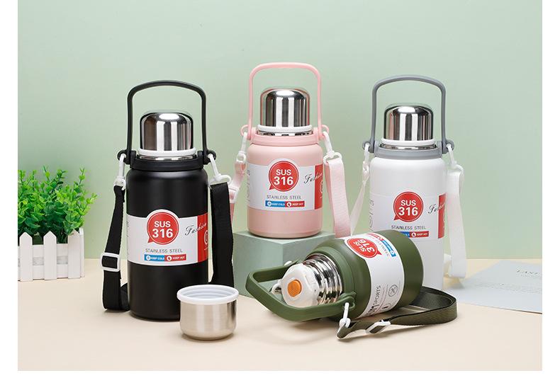 Hervidor deportivo de acero inoxidable 316 de grado alimenticio transfronterizo, gran capacidad, para acampar al aire libre, viaje, taza térmica portátil al vacío