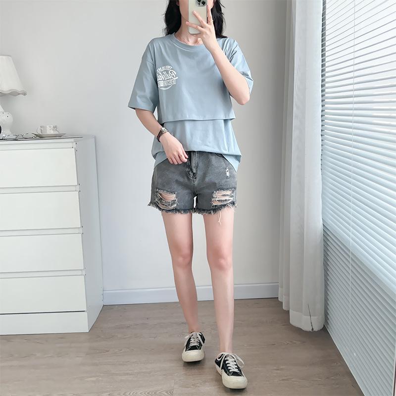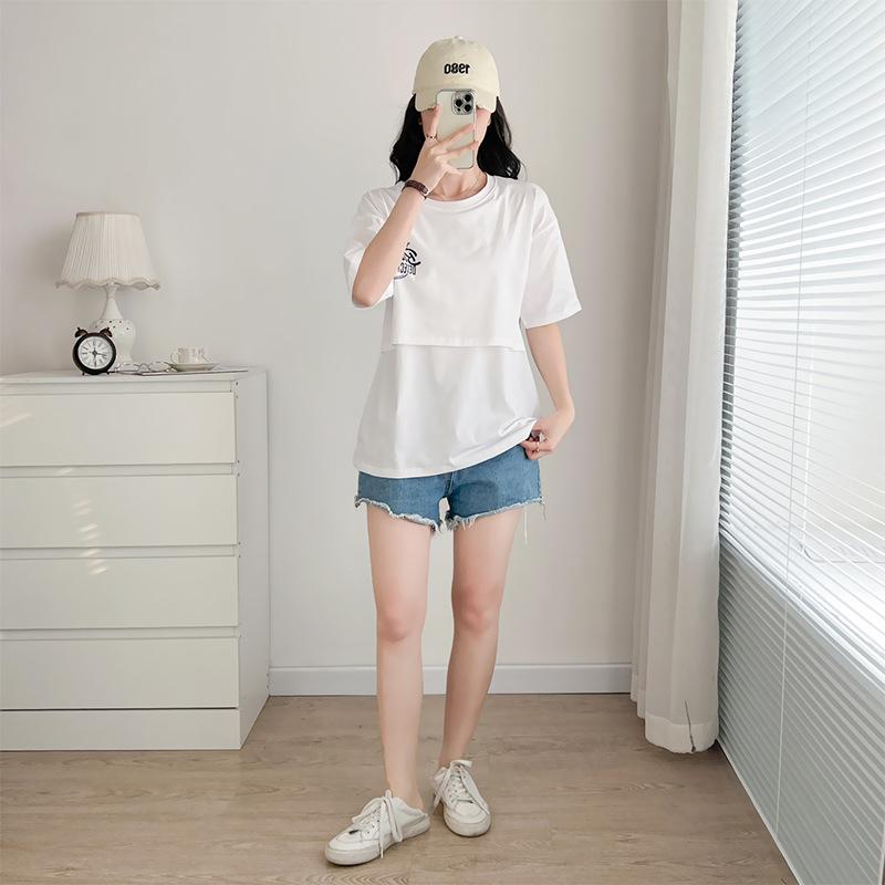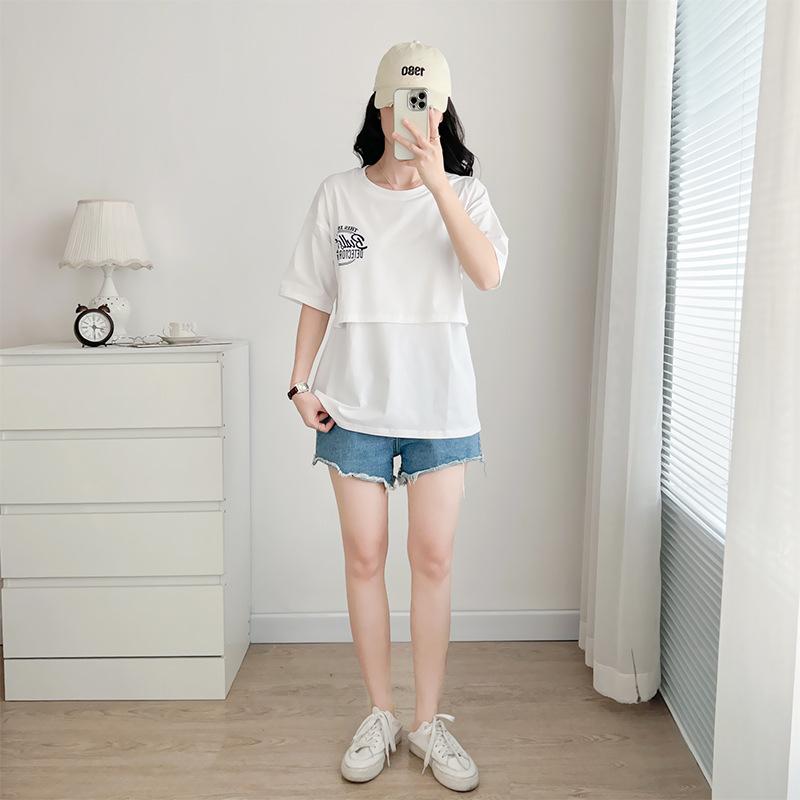 Camiseta de maternidad de algodón puro de verano con abertura lateral para amamantar, ropa exterior posparto, ropa de lactancia, camiseta de maternidad de moda para mamá, camiseta de fondo