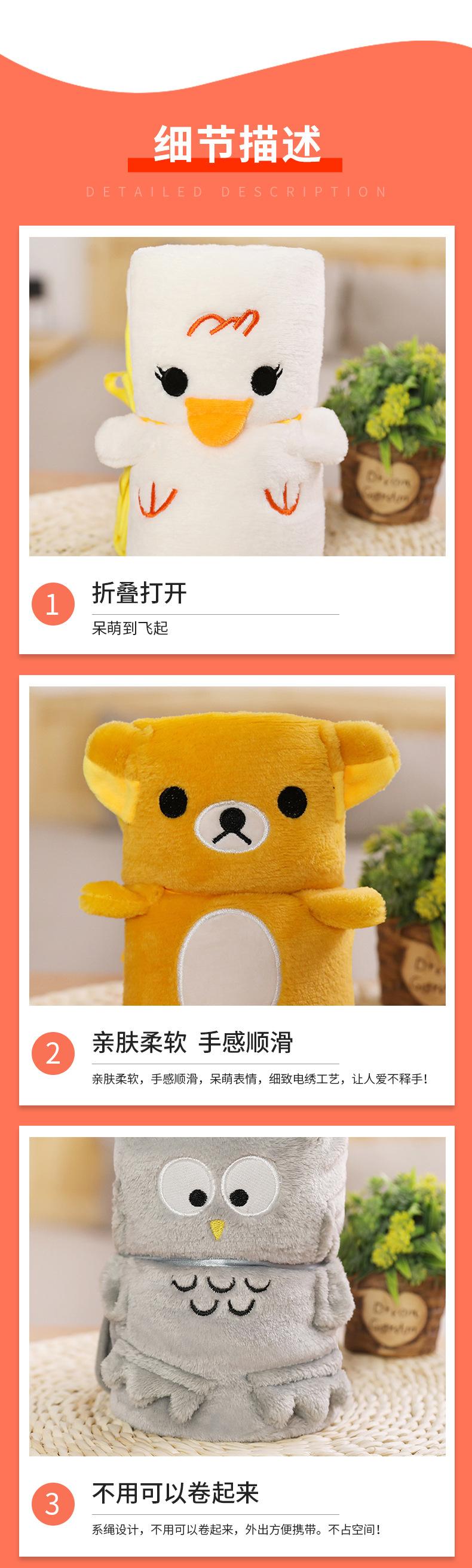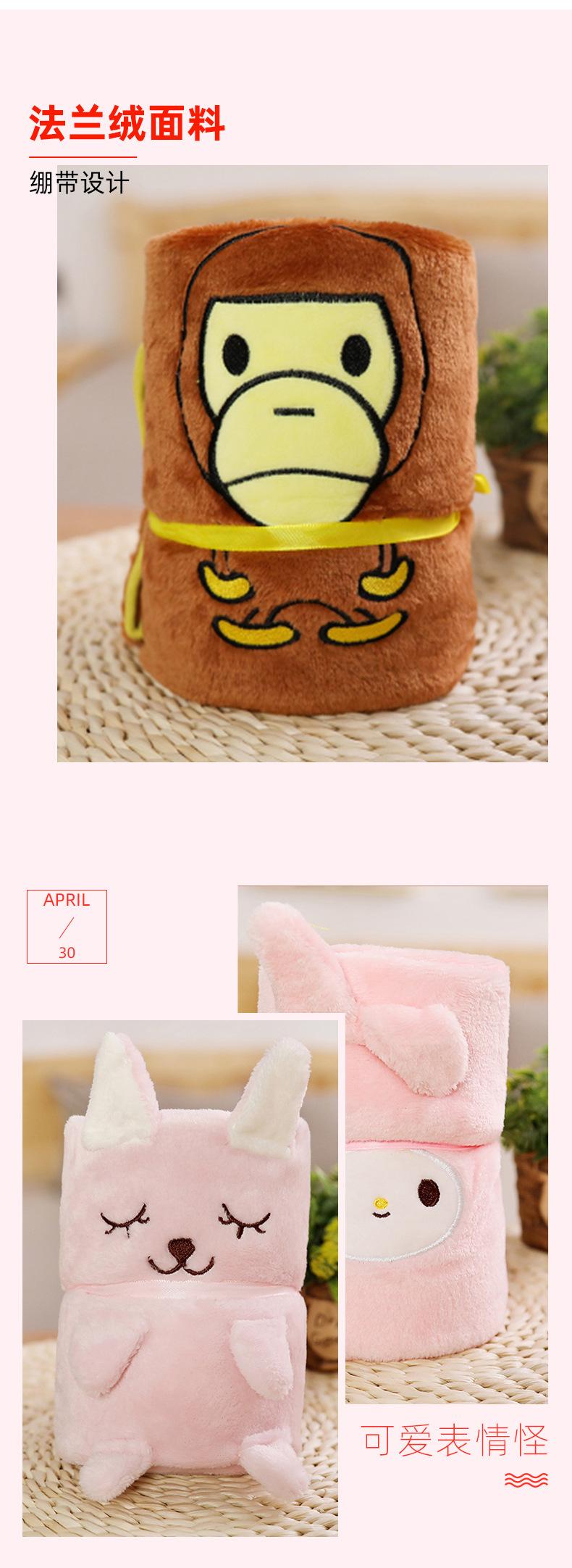 Venta al por mayor de mantas enrollables para niños, lindas mantas portátiles de franela con dibujos animados, mantas creativas para el aire acondicionado, para la hora del almuerzo y el pollo.