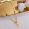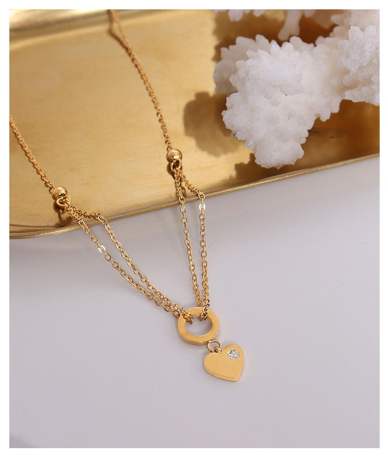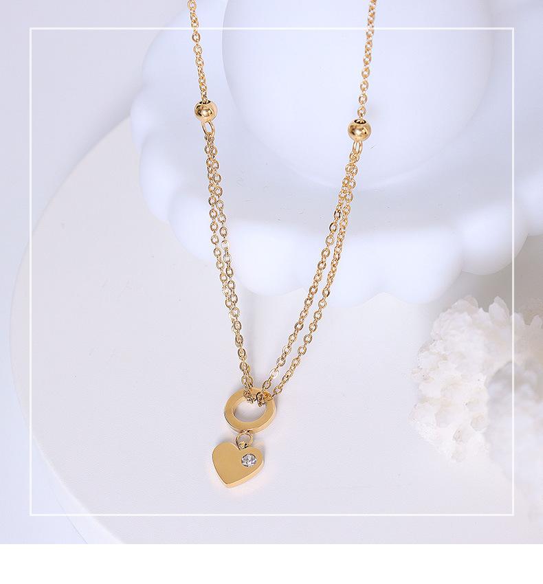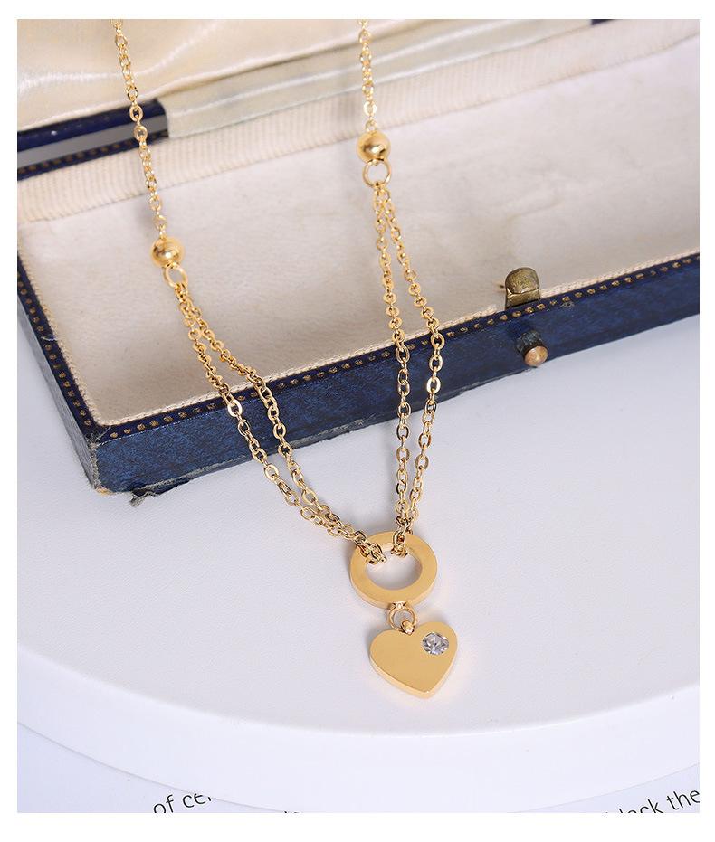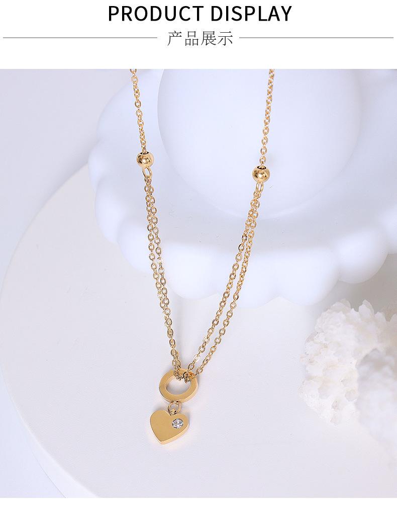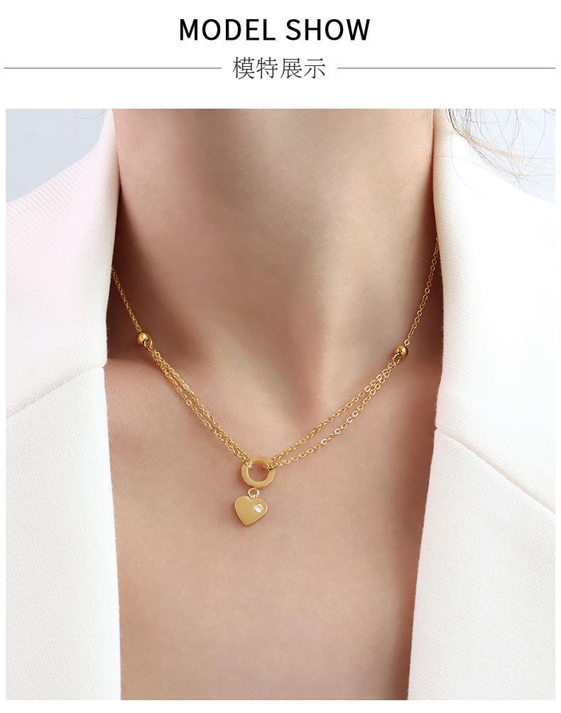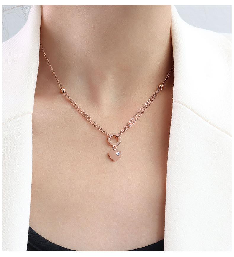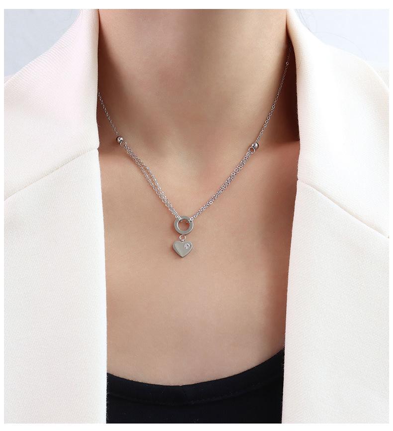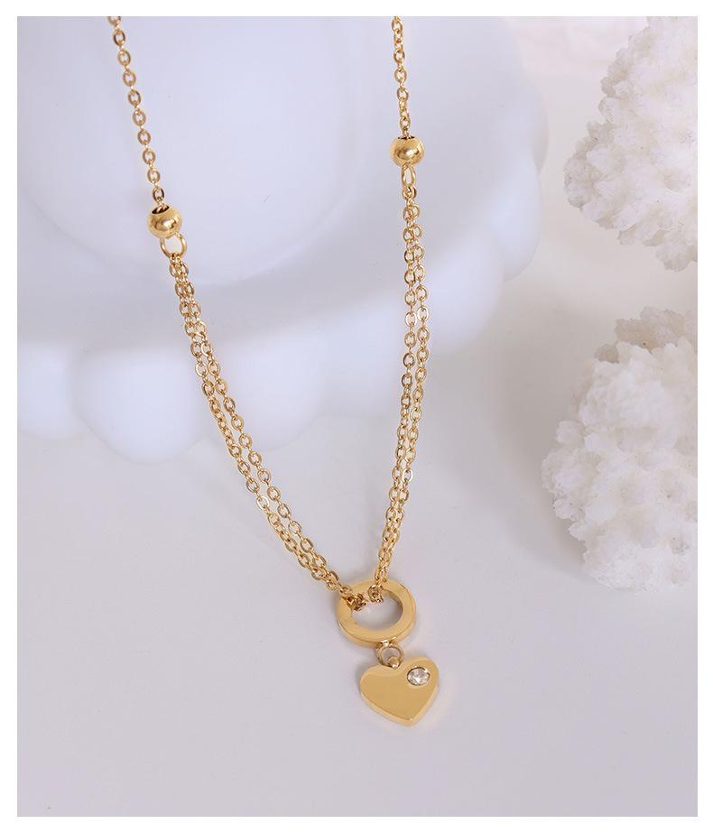 Collar con colgante de circonita y corazón de melocotón con costuras de bola de acero exageradas de estilo transfronterizo europeo y americano, de acero de titanio para mujer, venta al por mayor