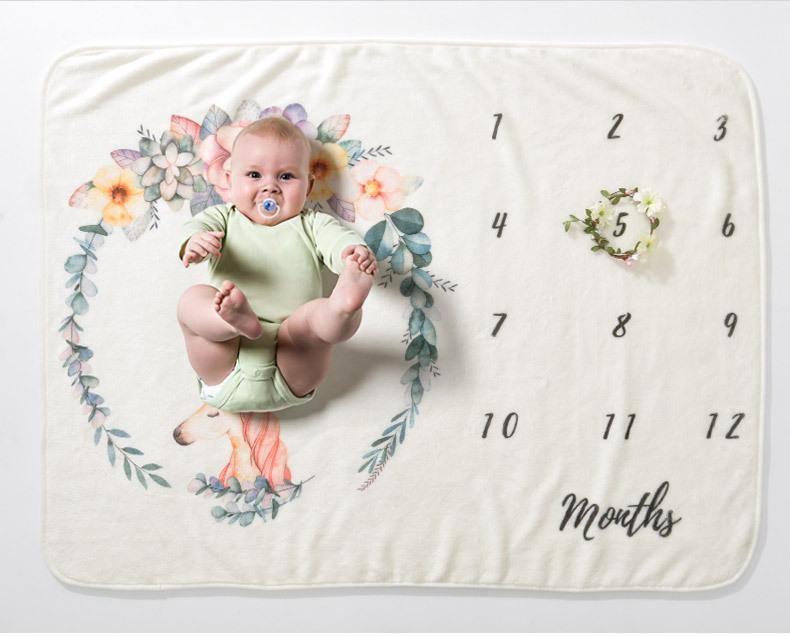 Manta de Hitos para Bebé de Comercio Exterior Personalizada Recién Nacido Luna Llena Fotografía Manta Conmemorativa Manta de Franela Acolchada Venta al por Mayor