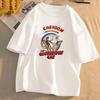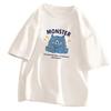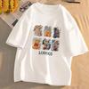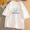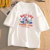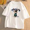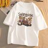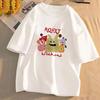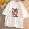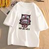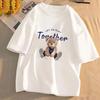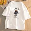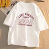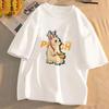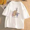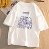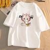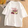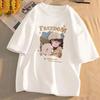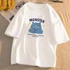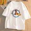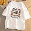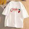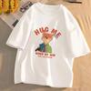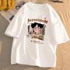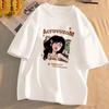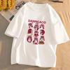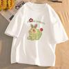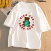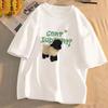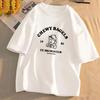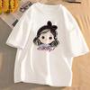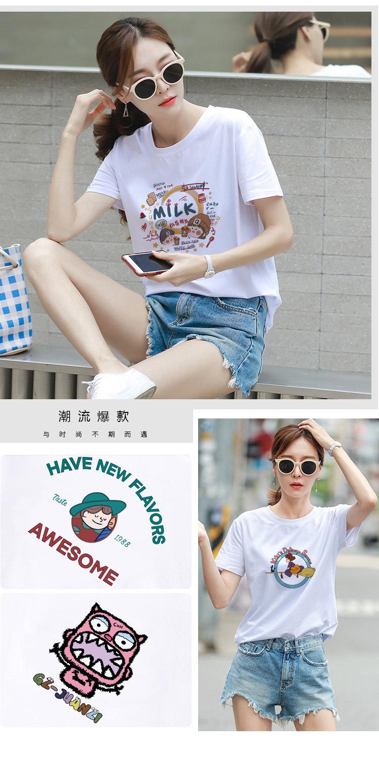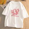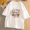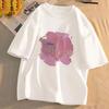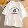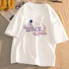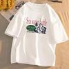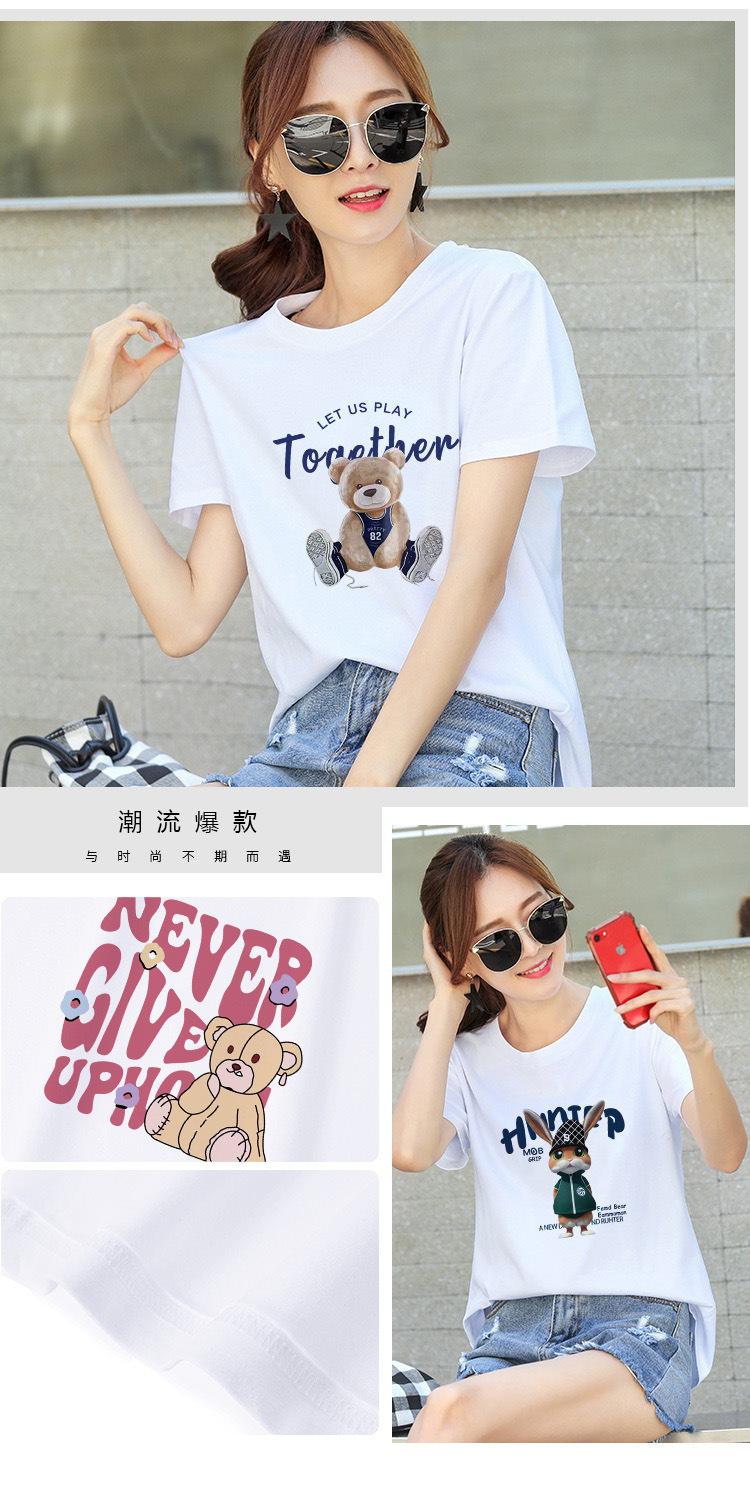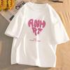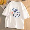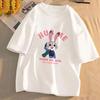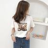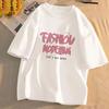 Camiseta de manga corta de algodón 2024 para mujer, blanca, holgada, moderna, con estampado de media manga y hombros descubiertos.