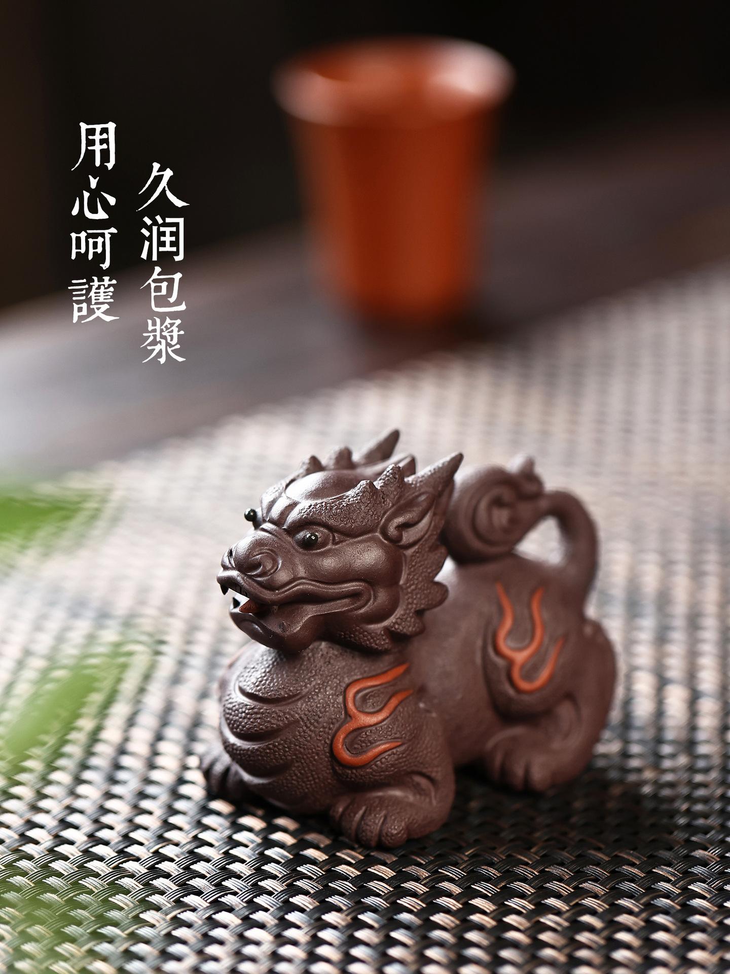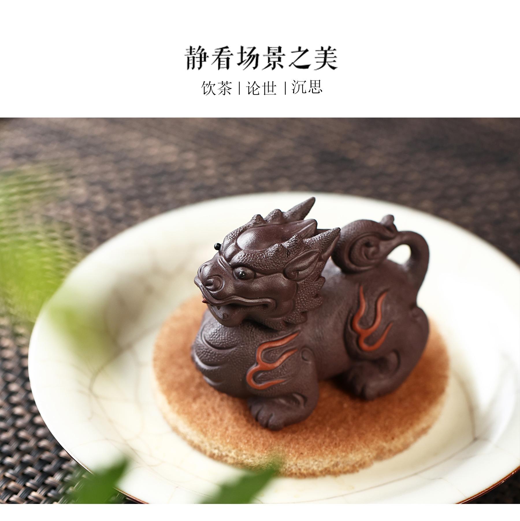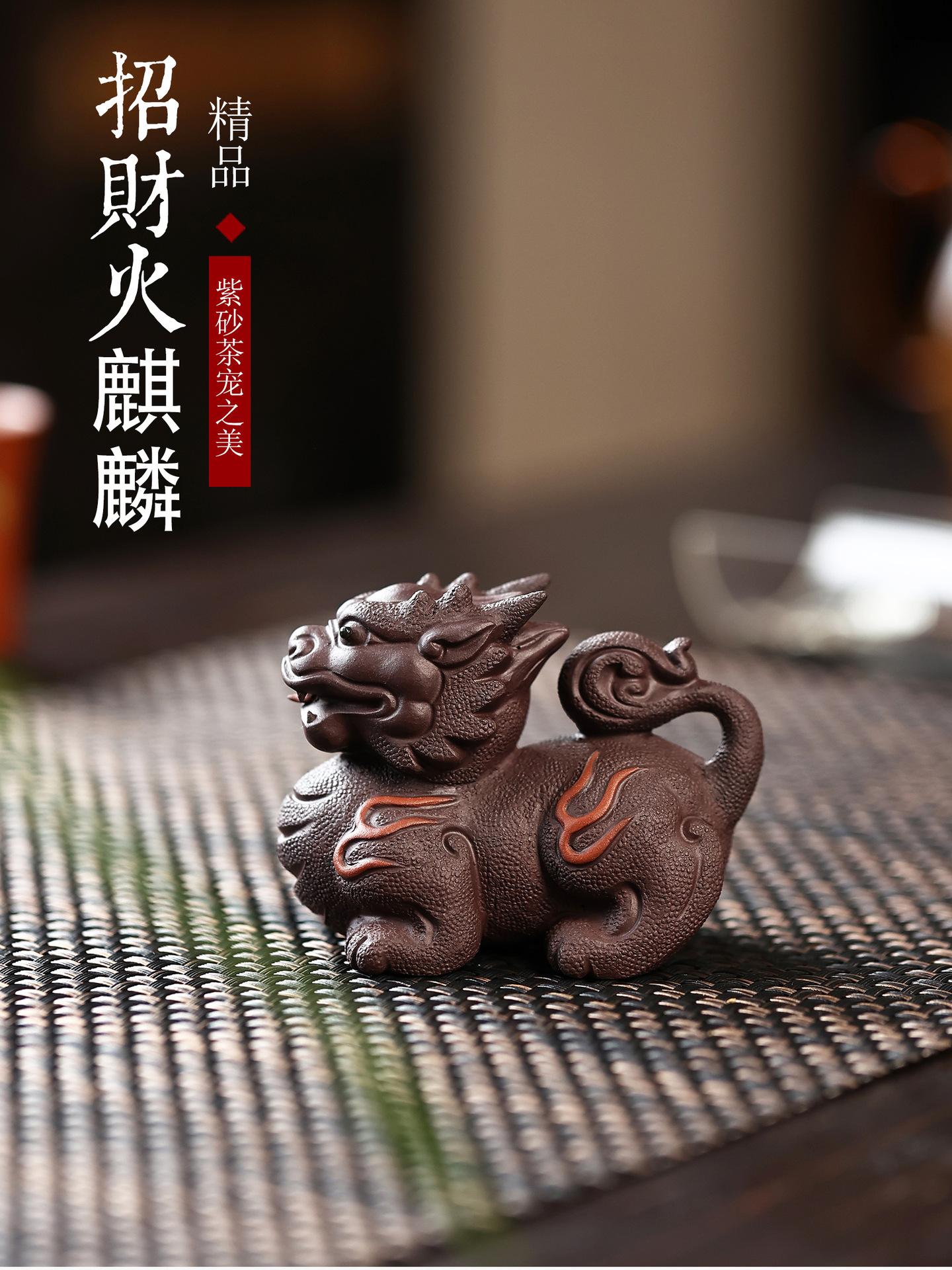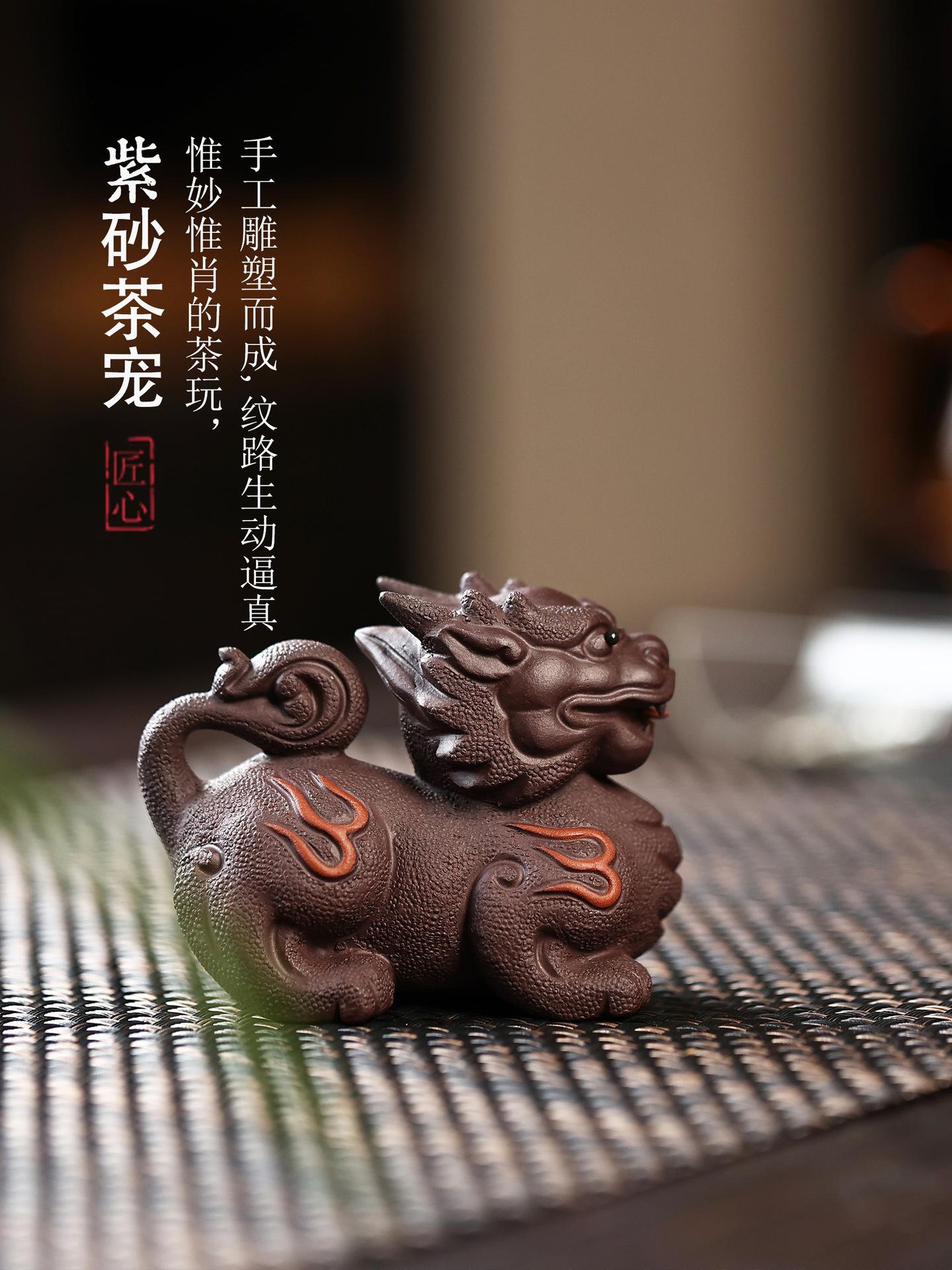 Decoración para mascotas de té de arena púrpura, fuego de la suerte, boutique creativa Kirin, juego de té hecho a mano, ceremonia del té, bandeja de té, decoración