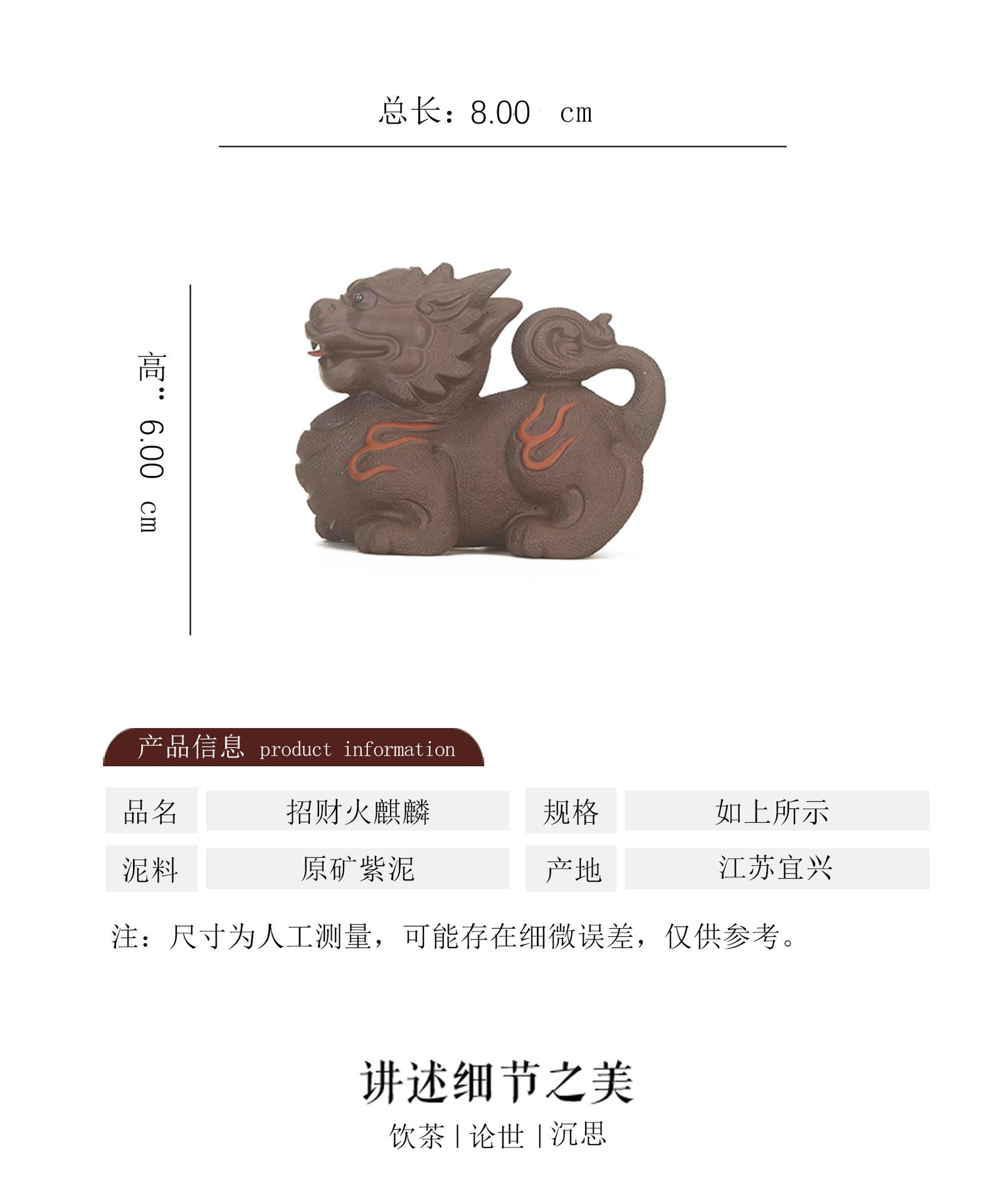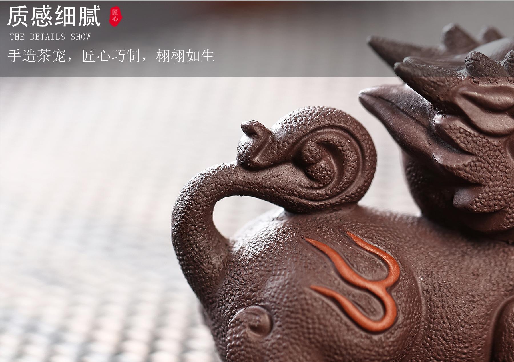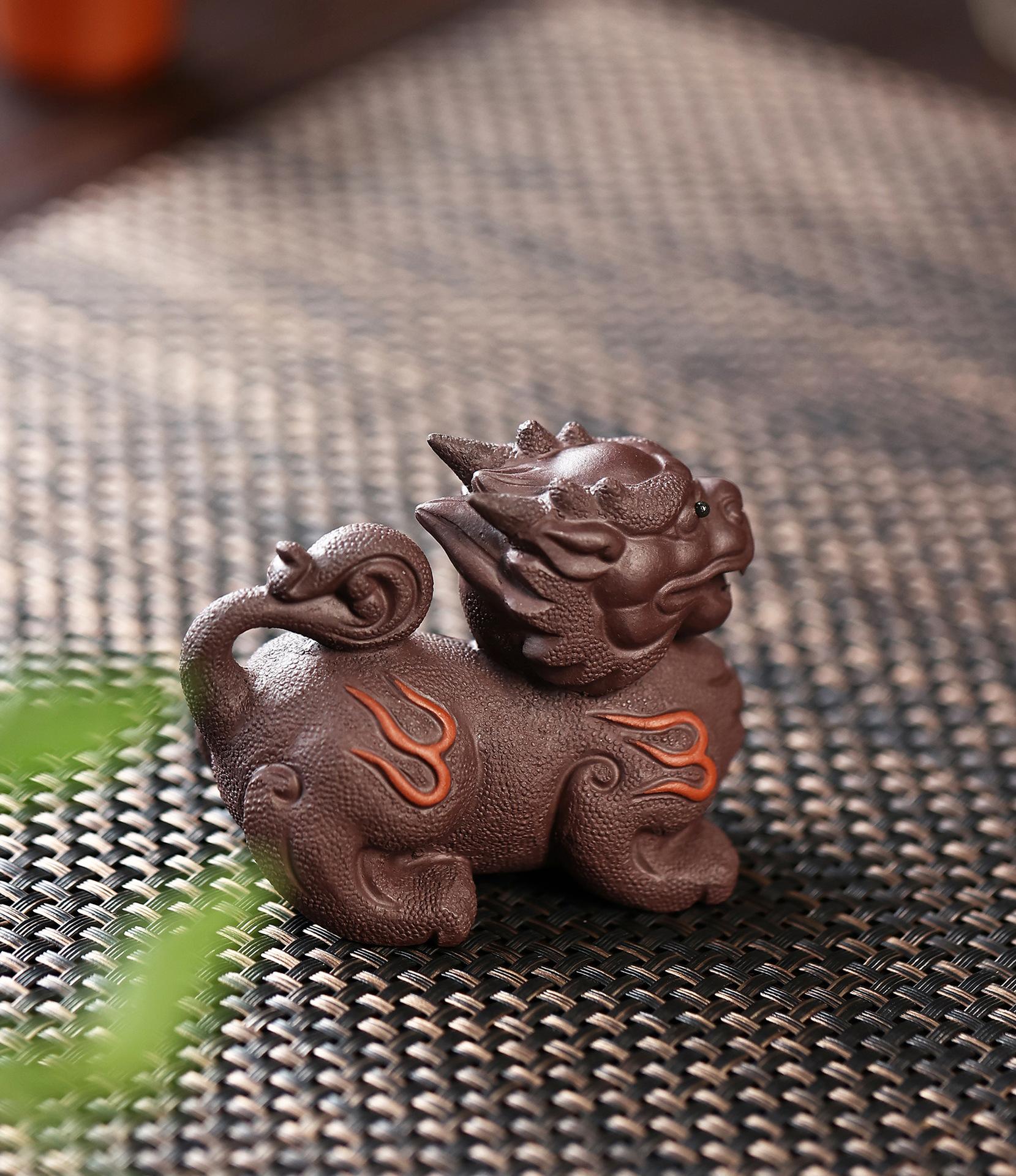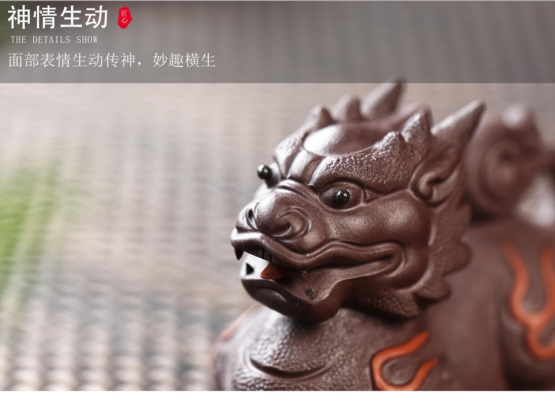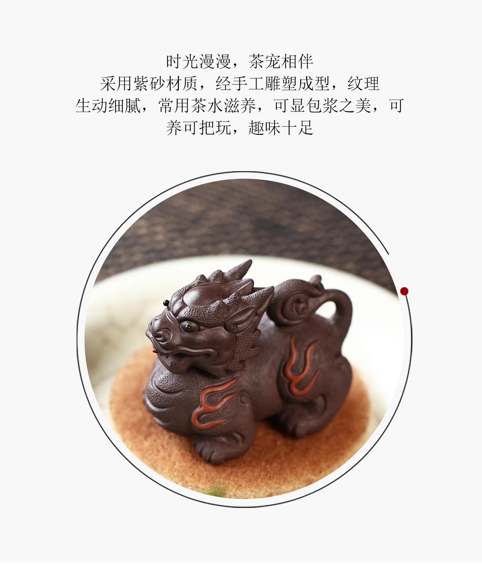 Decoración para mascotas de té de arena púrpura, fuego de la suerte, boutique creativa Kirin, juego de té hecho a mano, ceremonia del té, bandeja de té, decoración