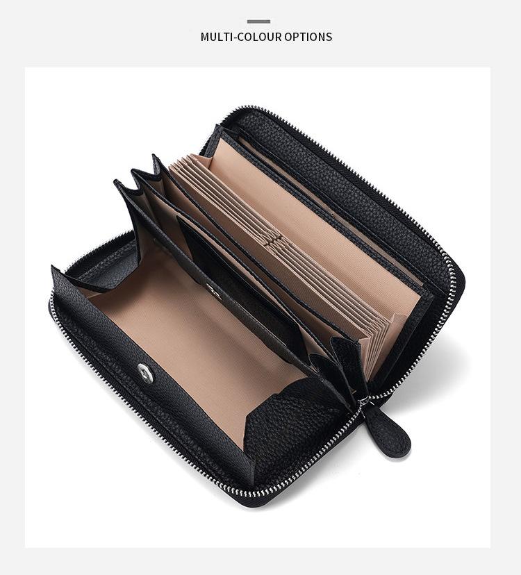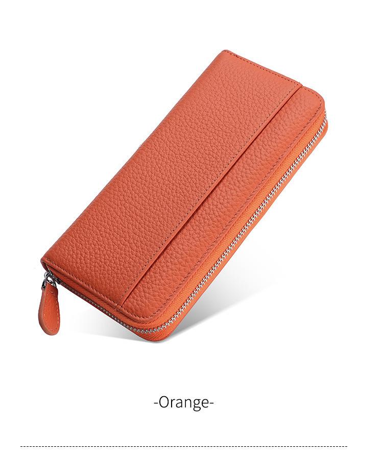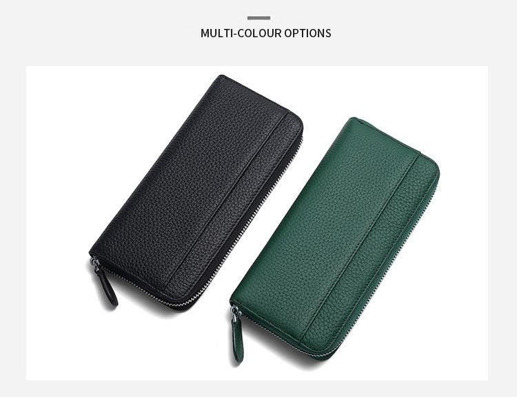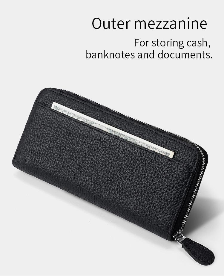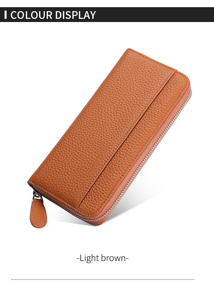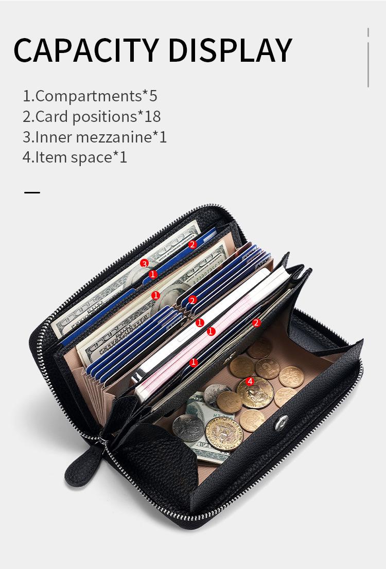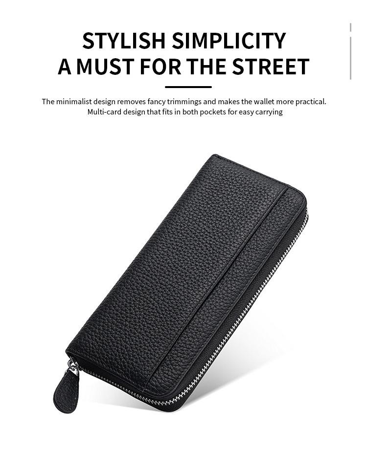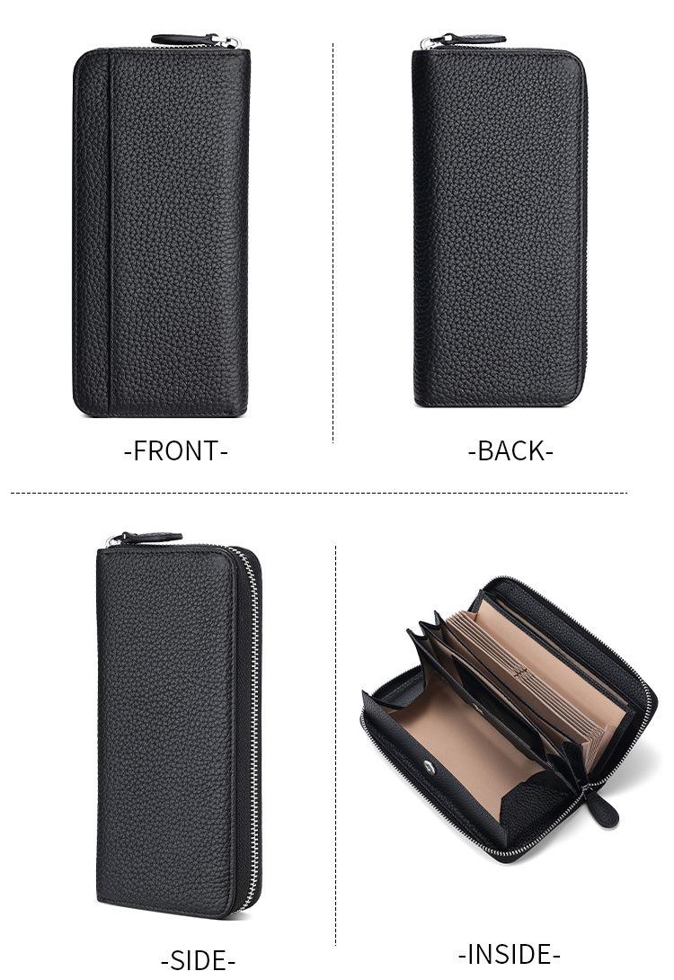 Cartera japonesa de cuero genuino para hombres y mujeres, tarjetero antirrobo RFID antimagnético, monedero largo de piel de vaca