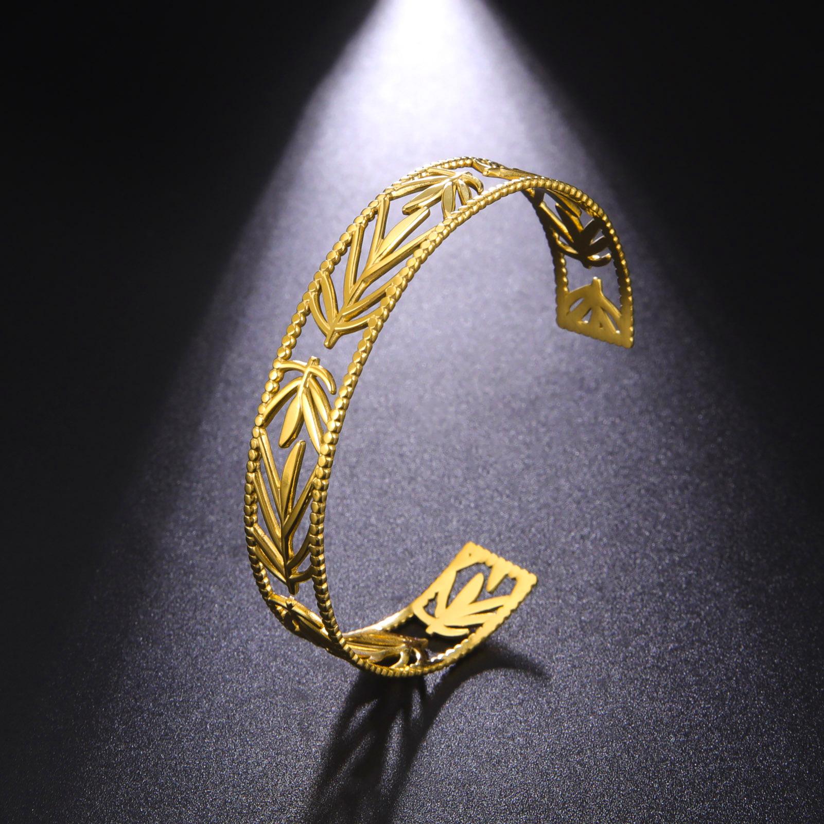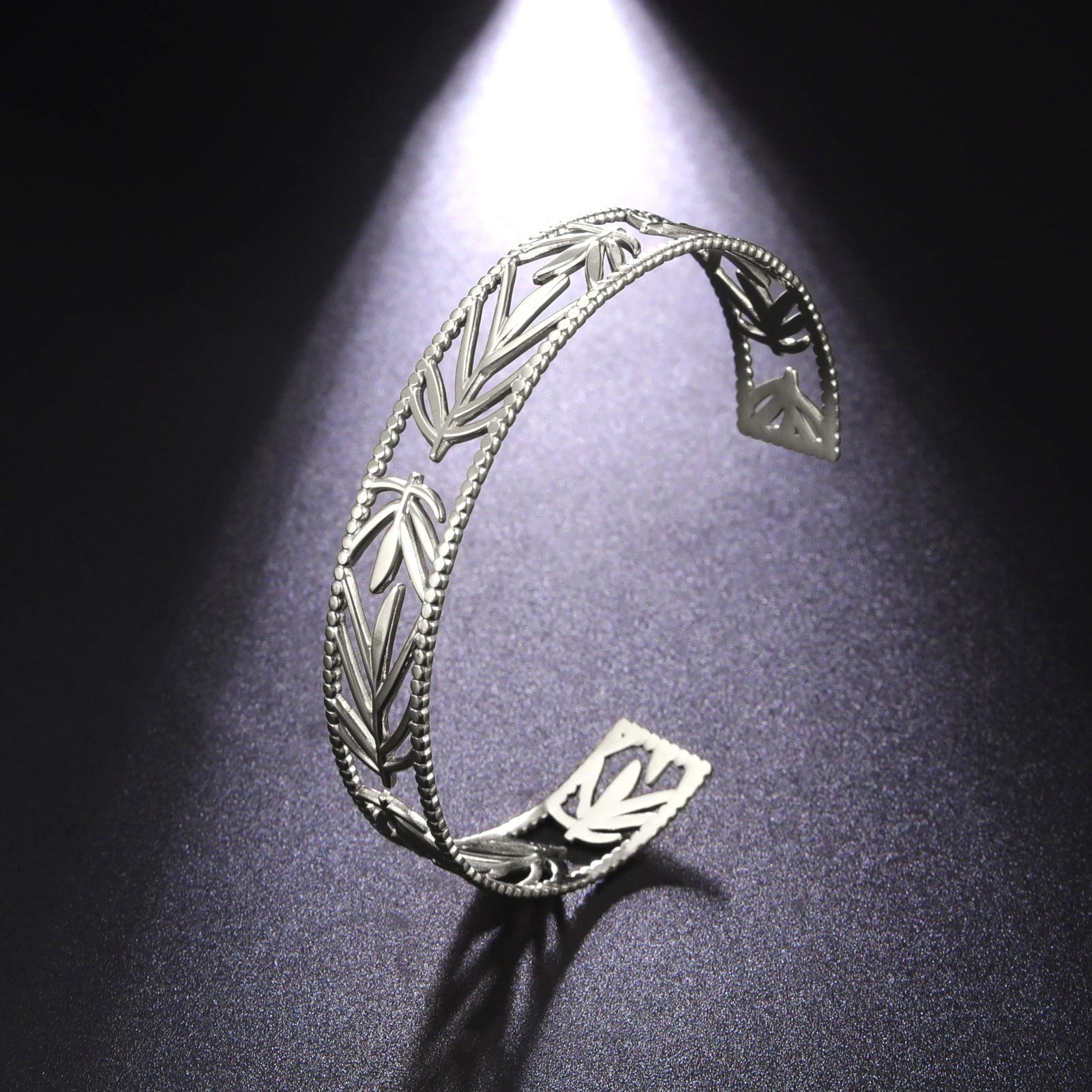 Joyería Transfronteriza Europea y Americana Pulsera Abierta de Acero de Titanio Hoja No Se Desvanece Moda Nicho 304 Acero Inoxidable Mujeres