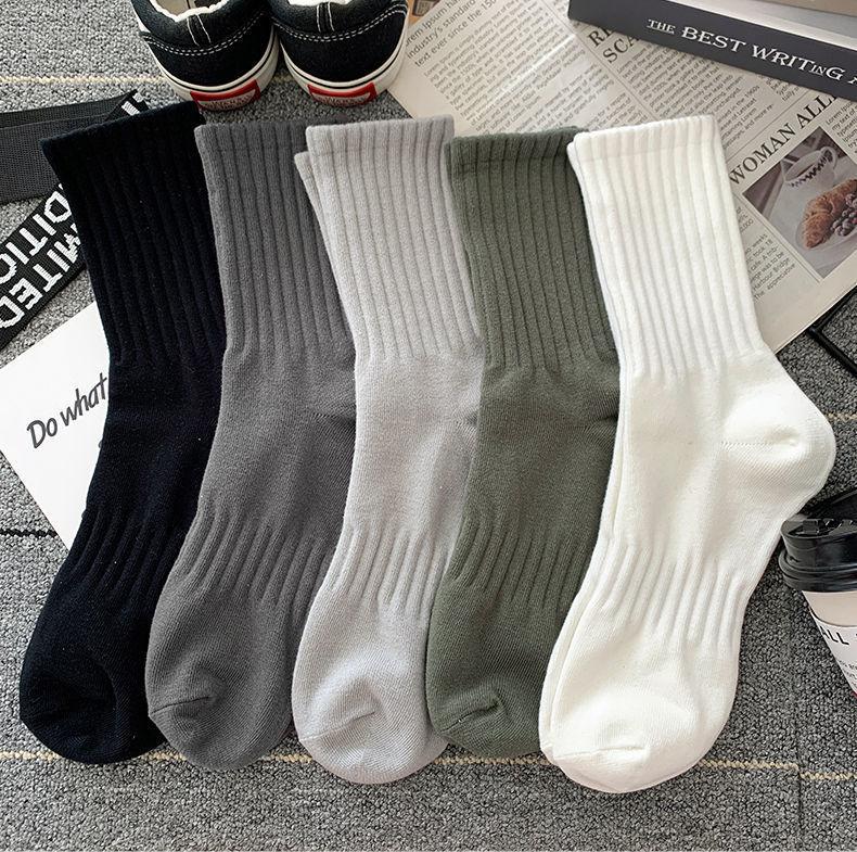 Calcetines Zhuji para hombre de media caña primavera y otoño desodorantes absorbe sudor gruesos color sólido deportivos combinan con todo pareja calcetines largos para hombre