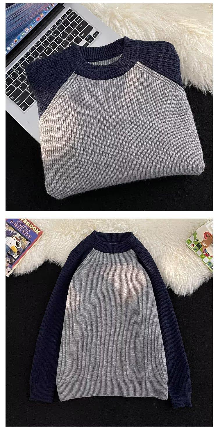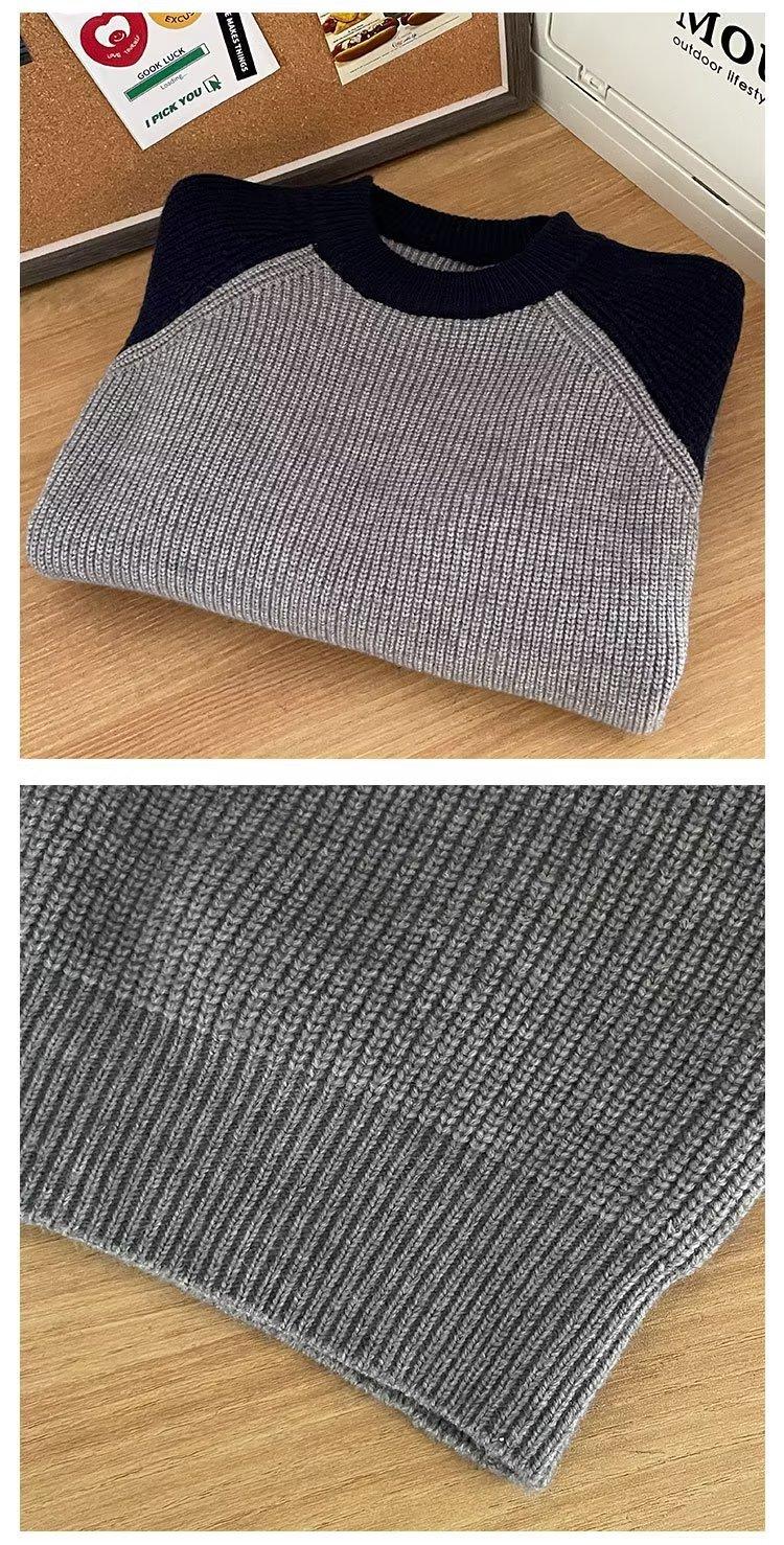 Suéter de cuello redondo para hombre, suéter de marca de moda de otoño e invierno con colores a juego, camisa cálida de fondo, suéter casual de lana gruesa para hombre