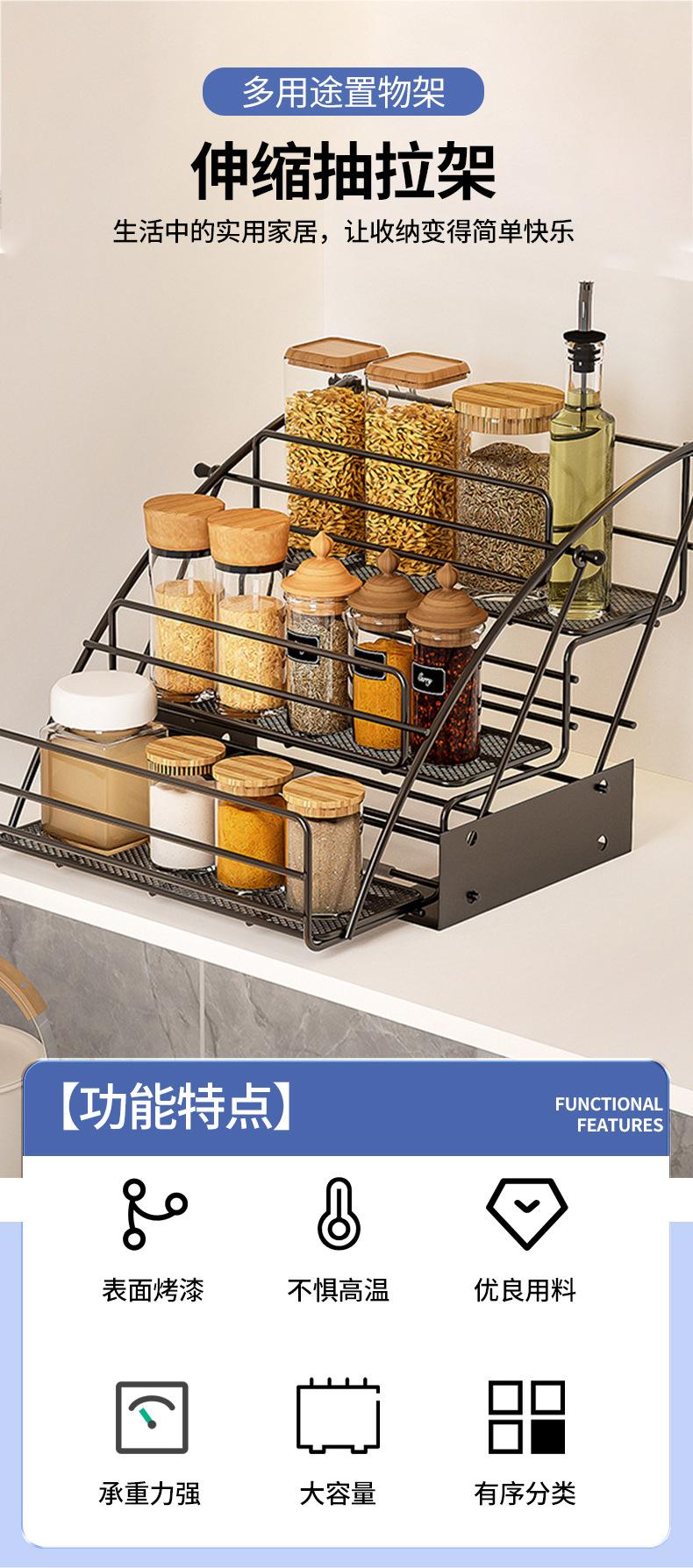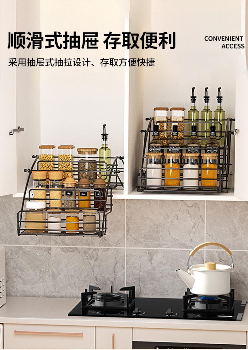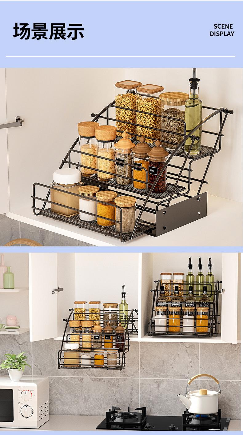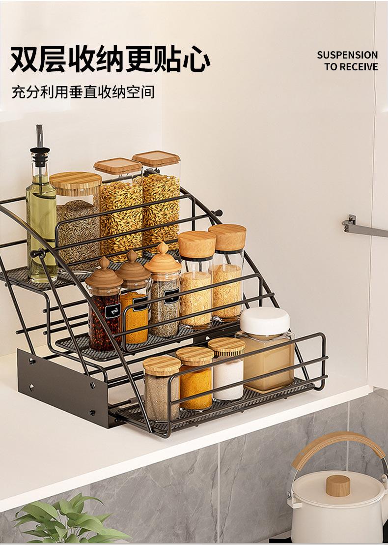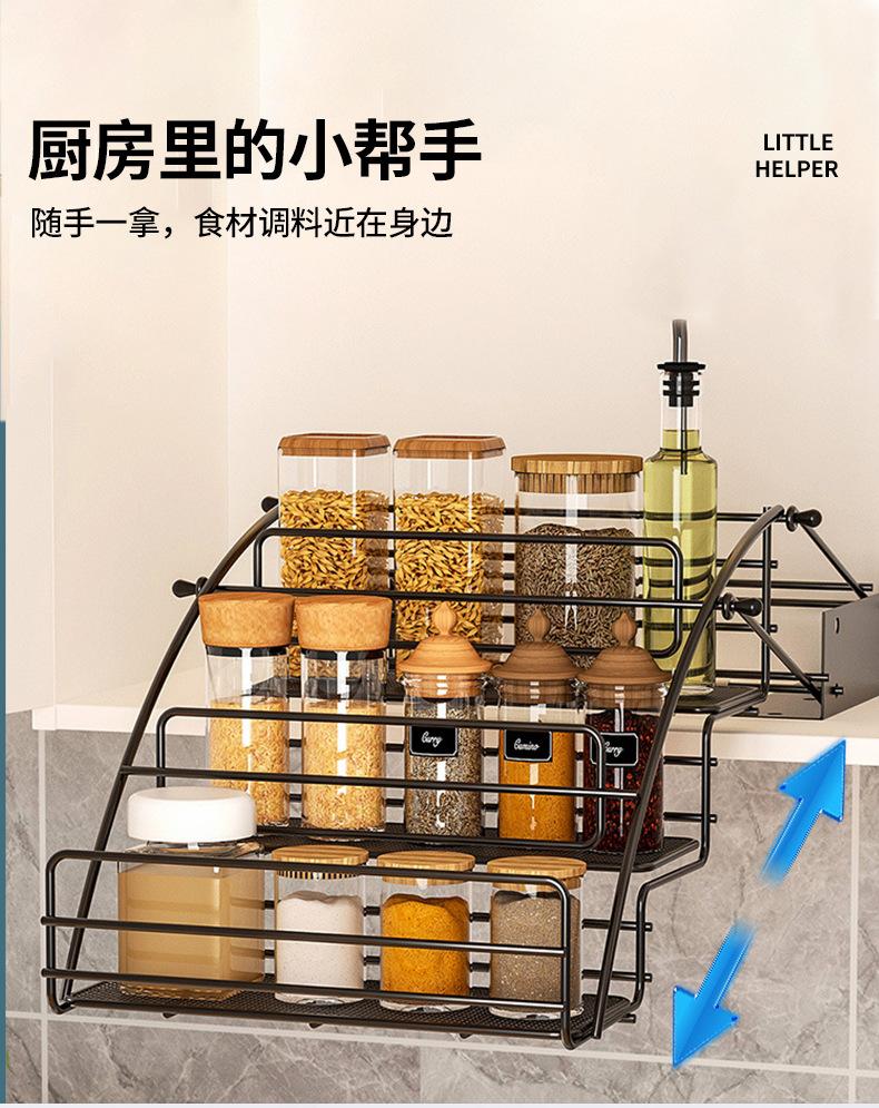 Estante Popular para Almacenamiento de Botellas de Condimentos de Cocina de Amazon, Estante Retráctil de Especias Multicapa de Arte en Hierro, Estante de Almacenamiento para Gabinete de Sala de Estar