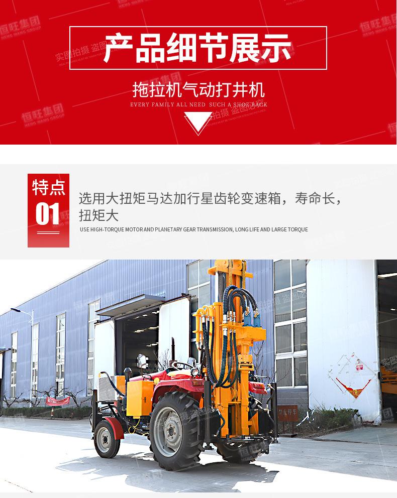 Taladro neumático con tractor, máquina perforadora de pozos modificada, plataforma de exploración autopropulsada con ruedas, máquina perforadora de pozos