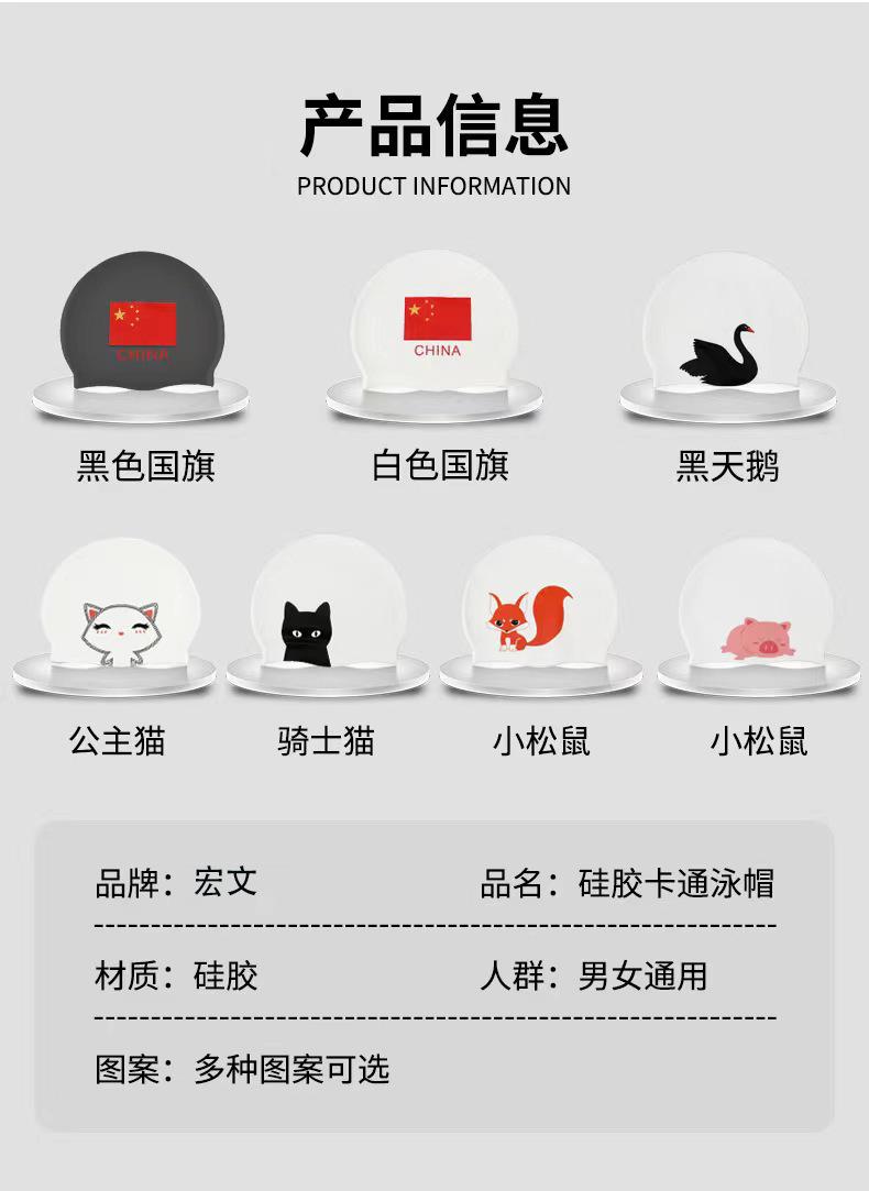 White flag hat (zipper bag packaging), Black flag hat (zipper bag packaging), Black swan swimming cap (zipper ...