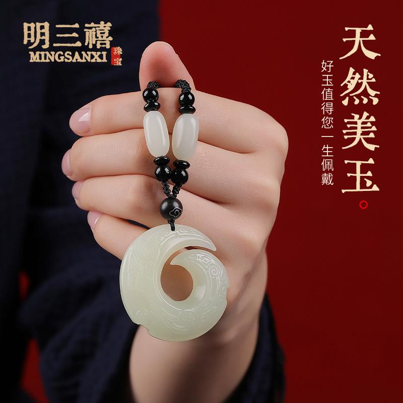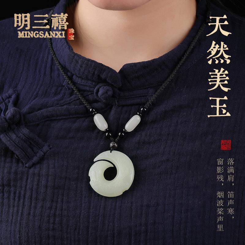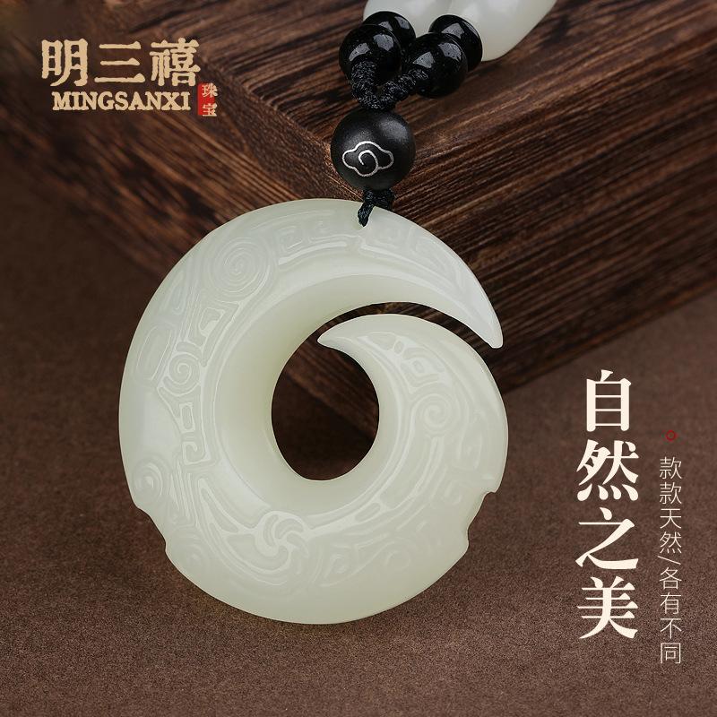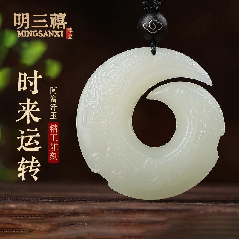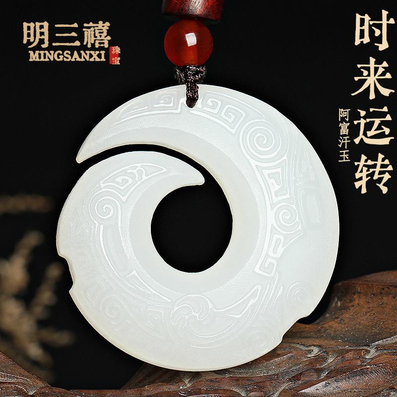 Colgante con hebilla de jade afgano natural Ping An para hombres y mujeres, tallado de doble cara Ruyi Qiankun y Tian Yuping para el tiempo