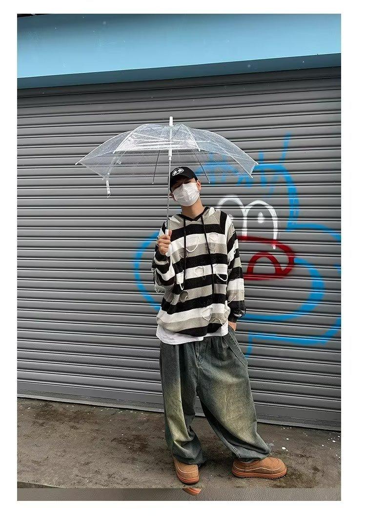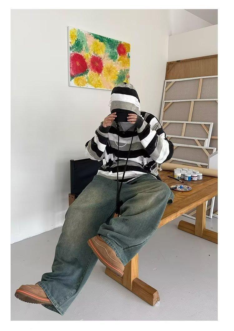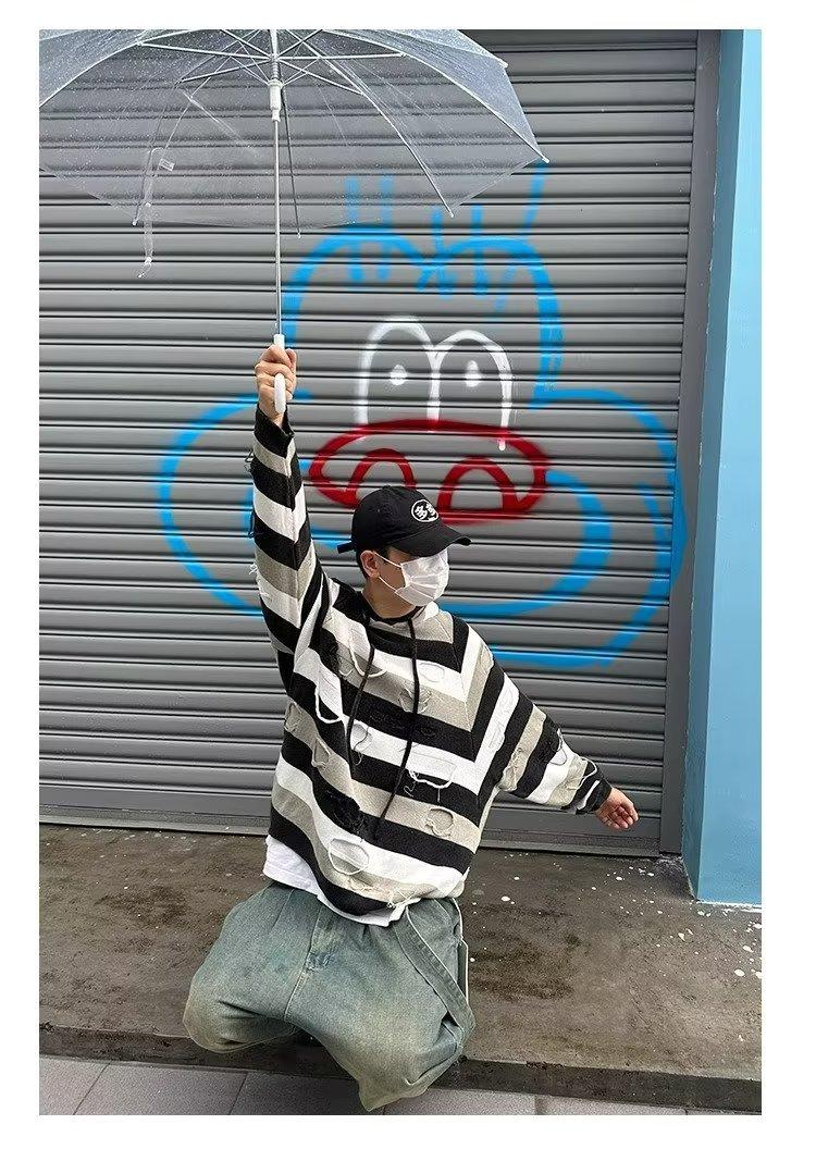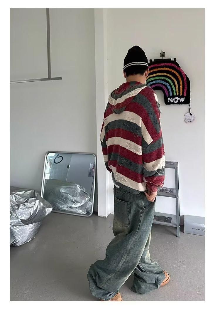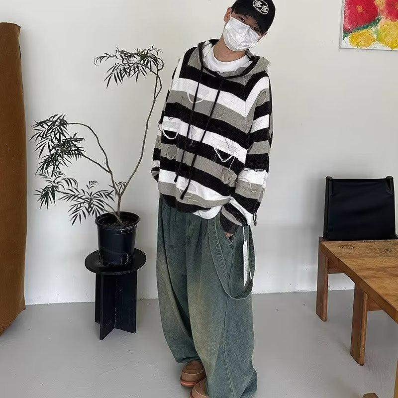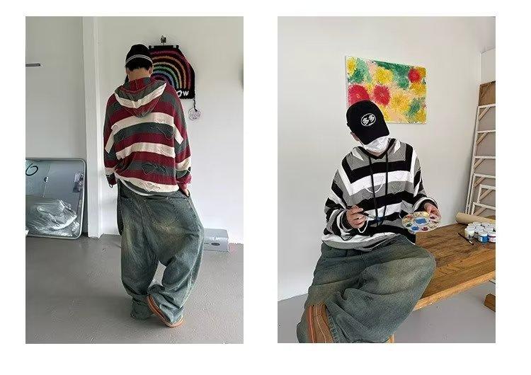 Suéter con capucha para otoño e invierno, suéter de marca de moda estadounidense para hombre, suéter holgado con rayas retro a la moda.
