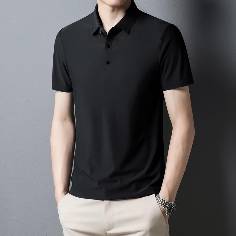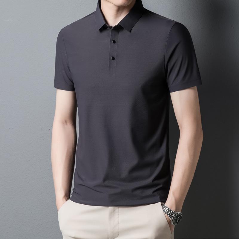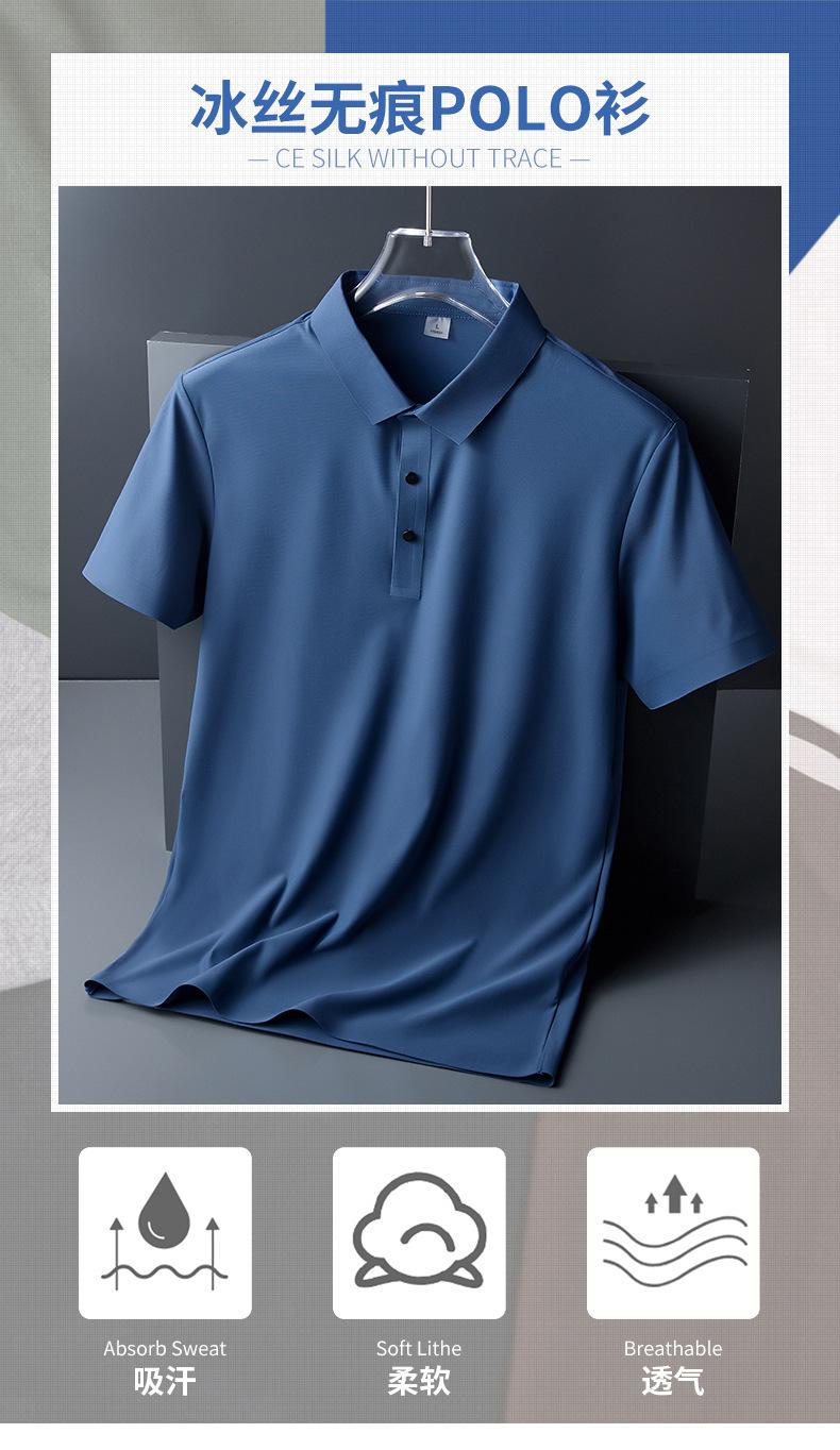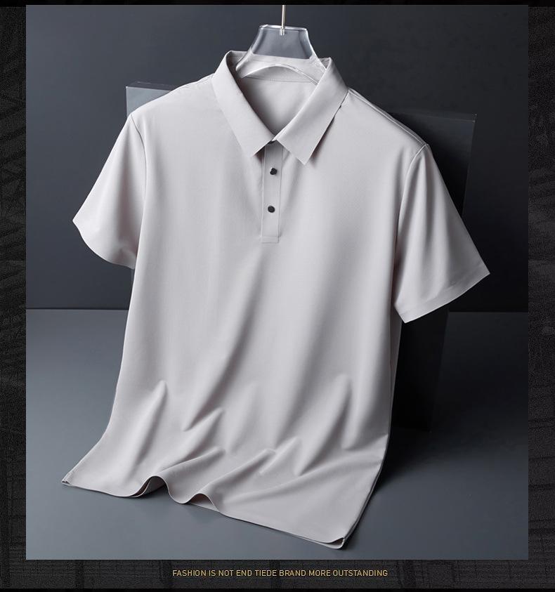 Polo de Seda de Hielo Sin Costuras de Gama Alta para Hombre Verano Solapa Secado Rápido Manga Corta Top Ropa para Papá de Mediana Edad y Anciano Ropa para Padre Ropa para Hombre