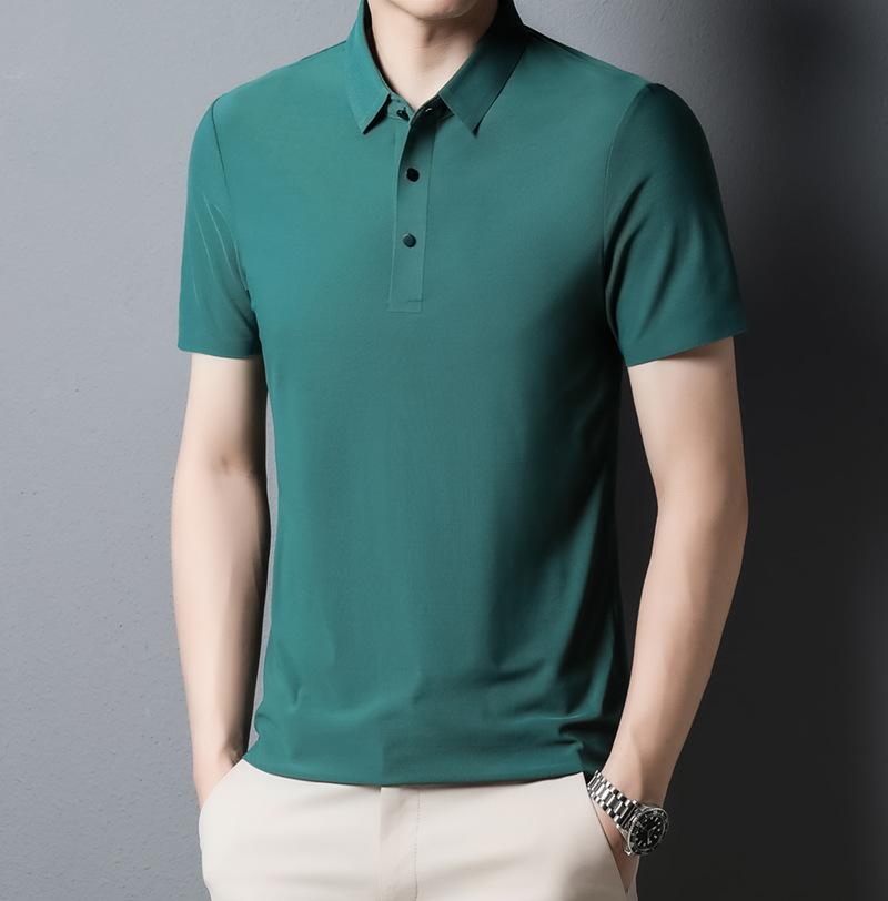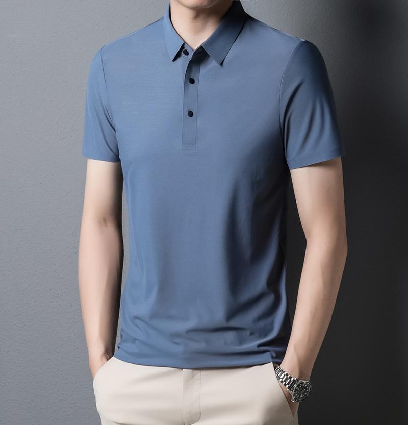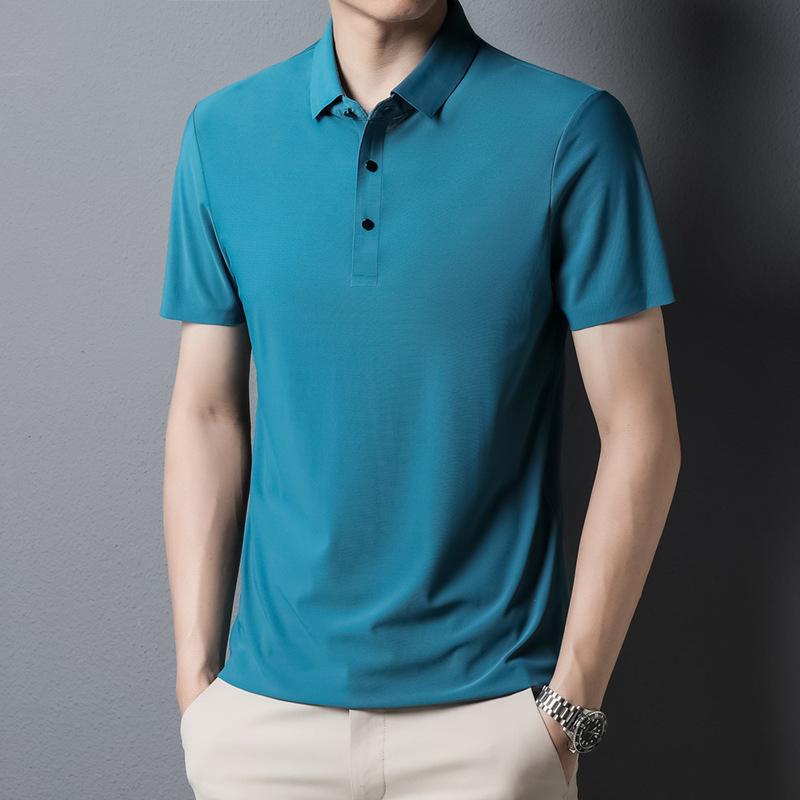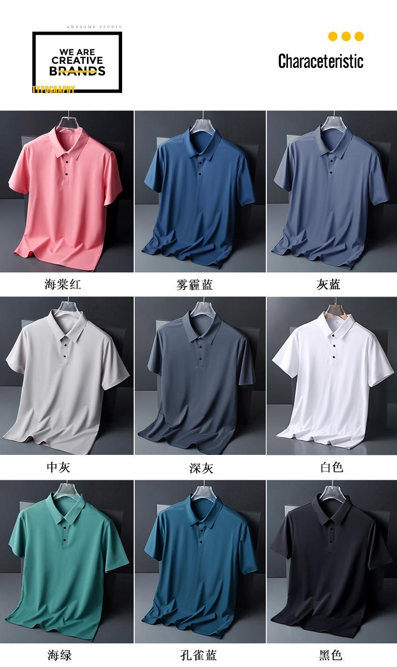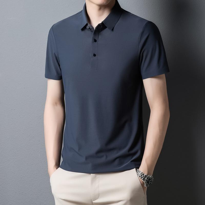 Polo de Seda de Hielo Sin Costuras de Gama Alta para Hombre Verano Solapa Secado Rápido Manga Corta Top Ropa para Papá de Mediana Edad y Anciano Ropa para Padre Ropa para Hombre