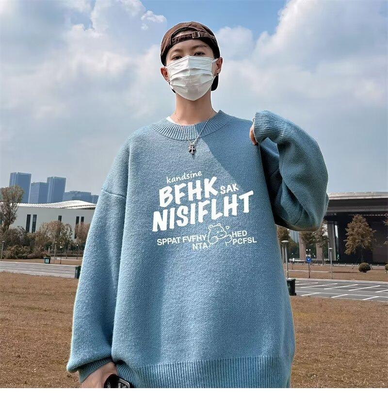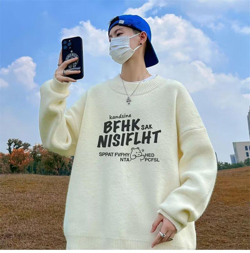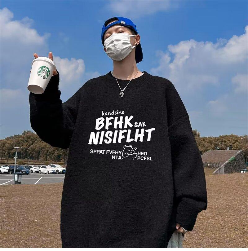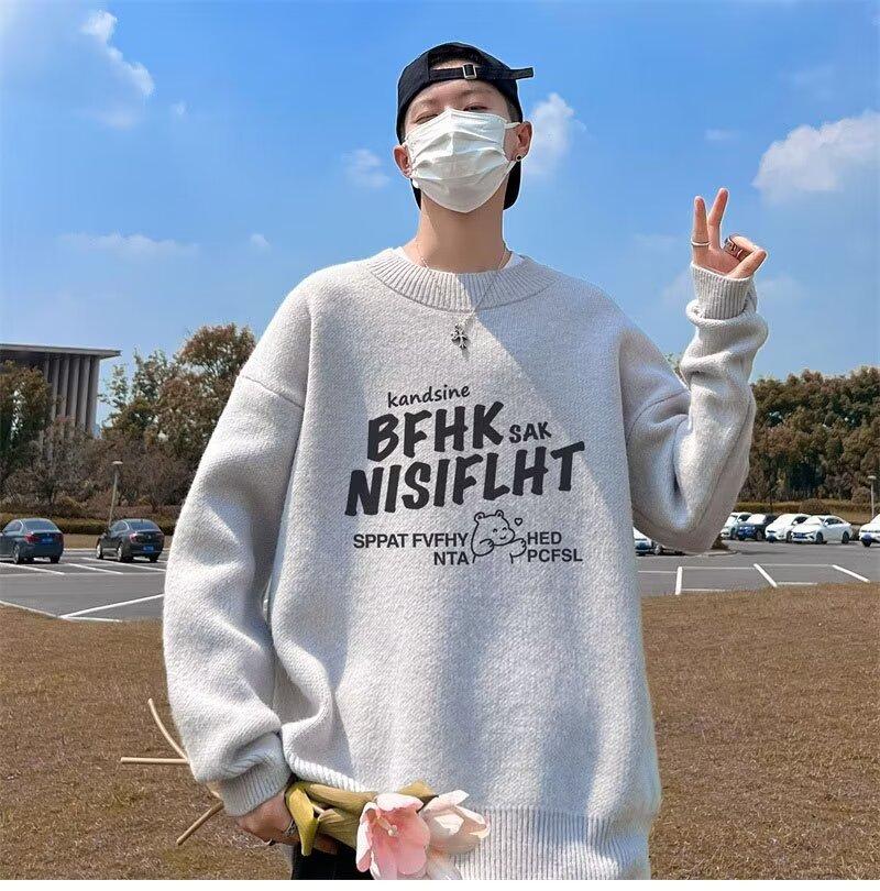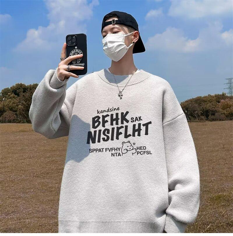 Suéter de cuello redondo nuevo de otoño e invierno para hombre, marca de moda americana, informal, holgado, de talla grande, ropa superior versátil para estudiantes