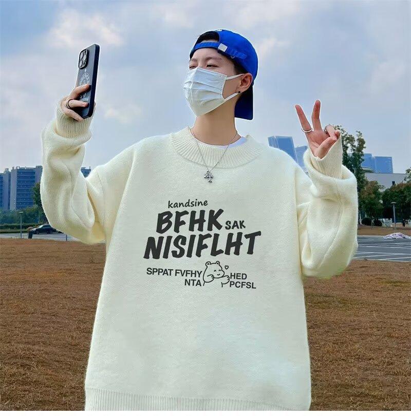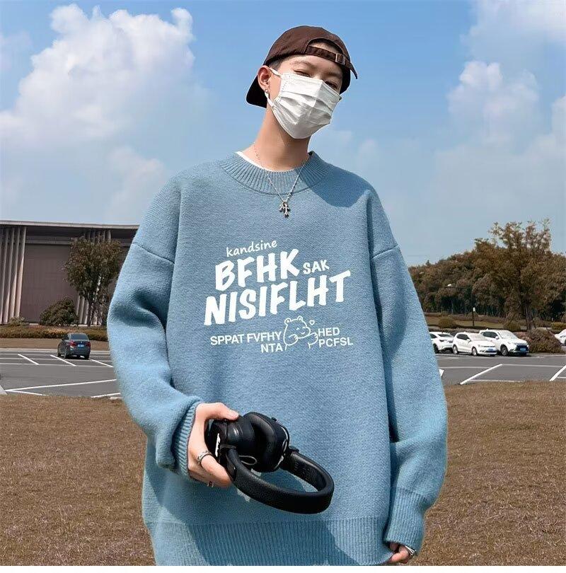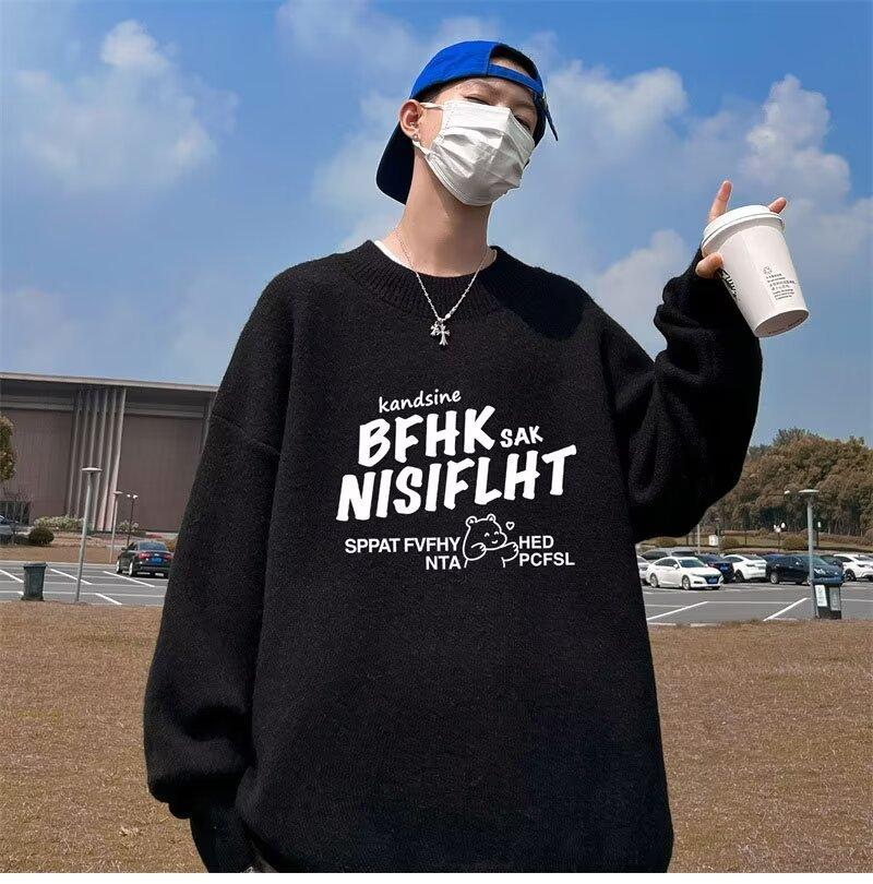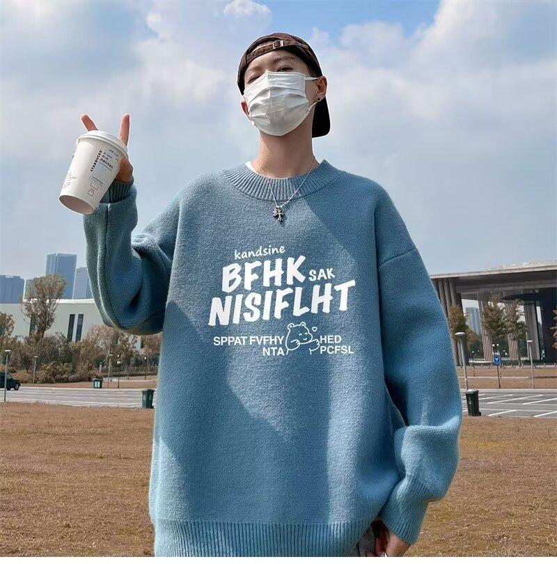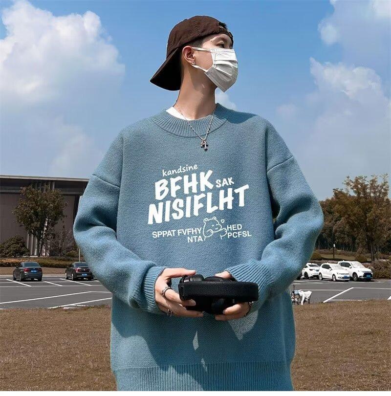 Suéter de cuello redondo nuevo de otoño e invierno para hombre, marca de moda americana, informal, holgado, de talla grande, ropa superior versátil para estudiantes