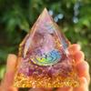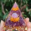 Esta pirámide mide 6 cm y pesa alrededor de 110 gramos.La pirámide mide 5 cm y pesa unos 70 gramos.Usando bola de amatista loto + piedra de amatista