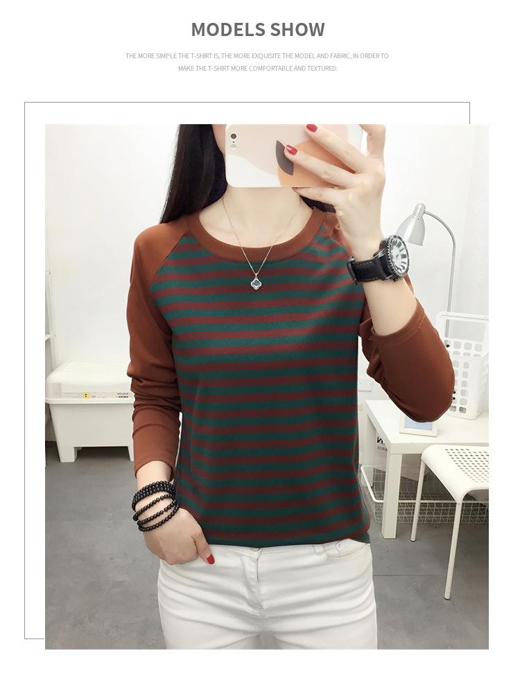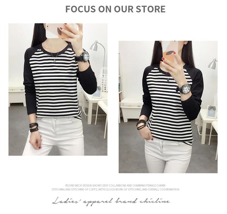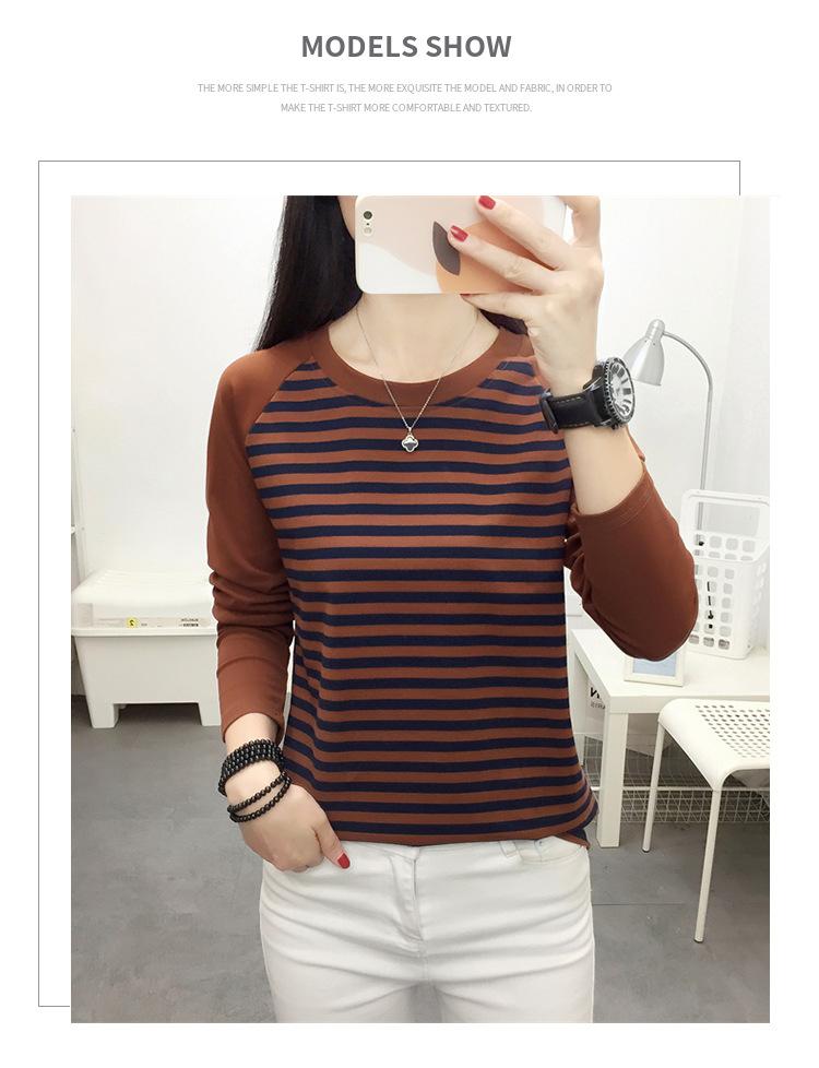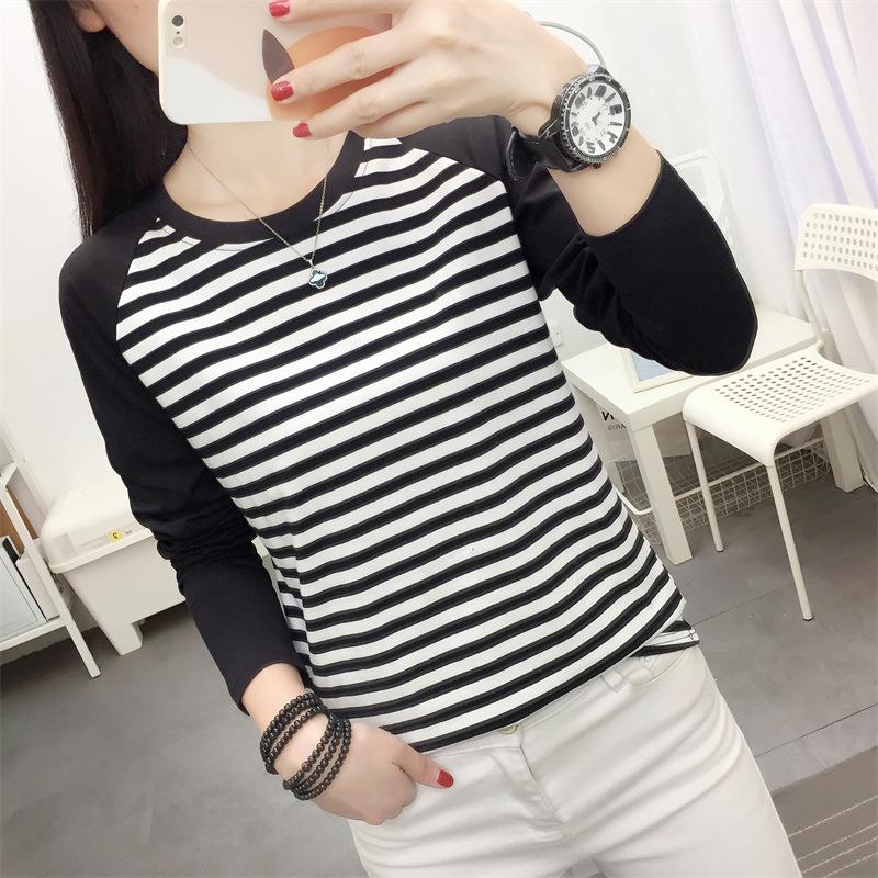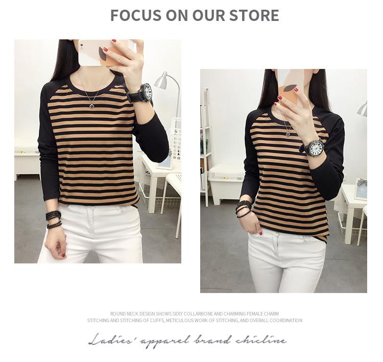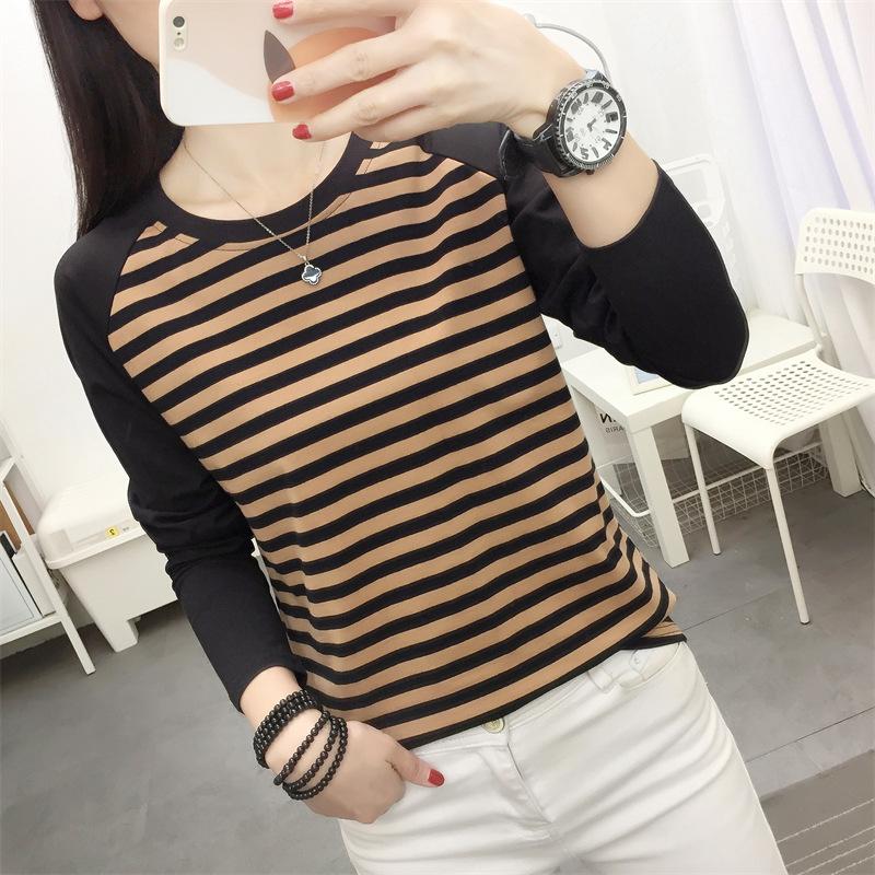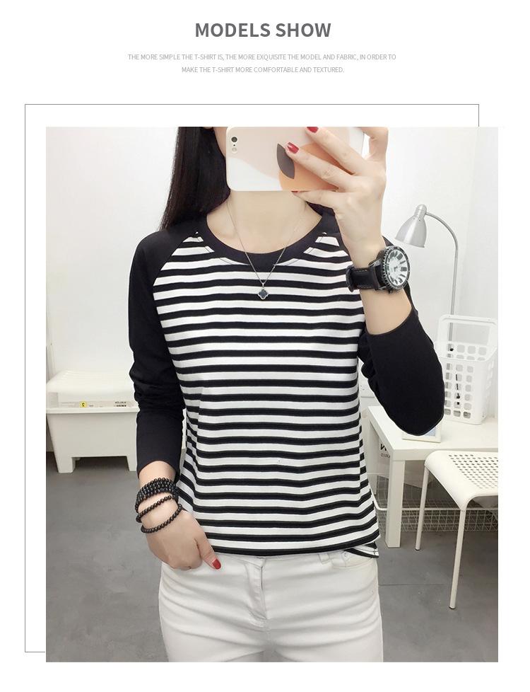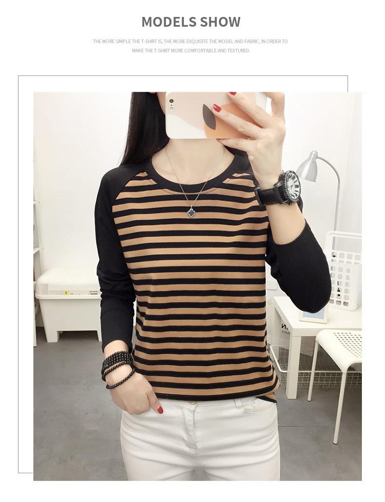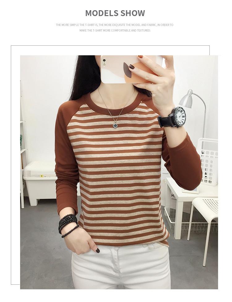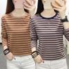 Camiseta de manga larga de algodón para mujer, holgada, adelgazante, de talla grande, para primavera y otoño, con rayas