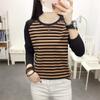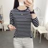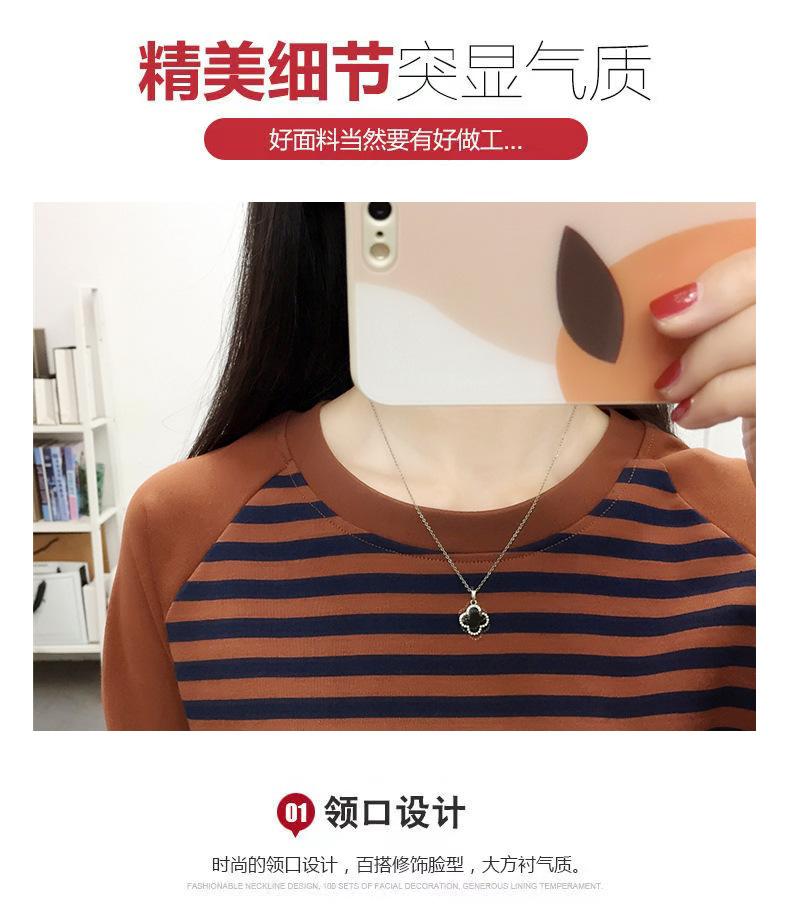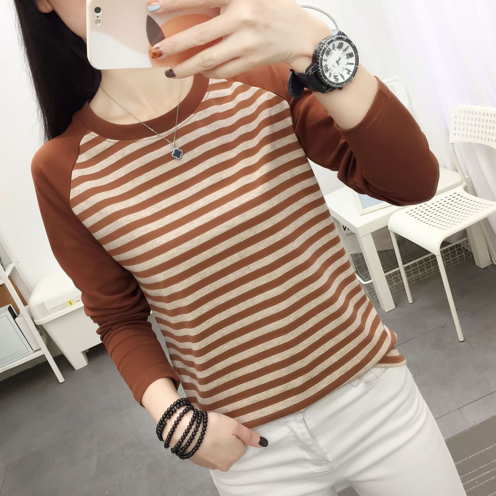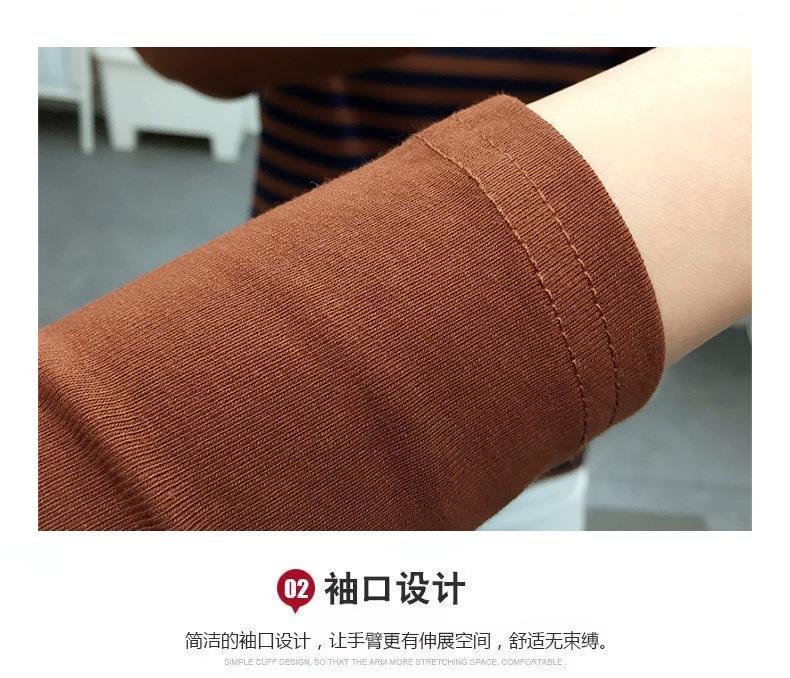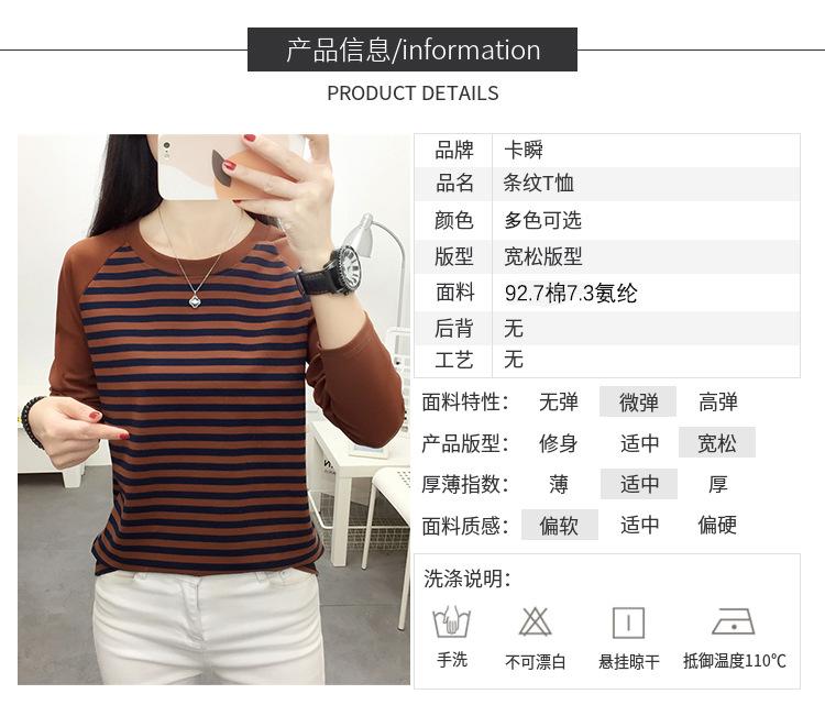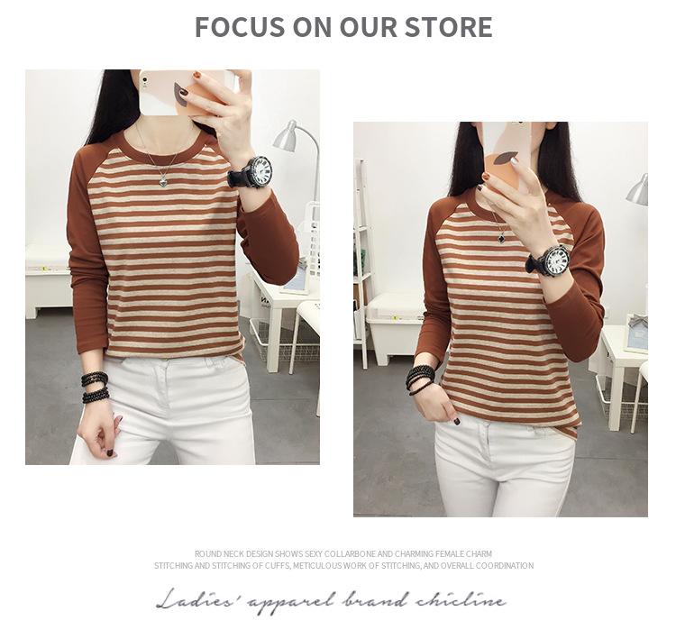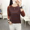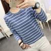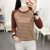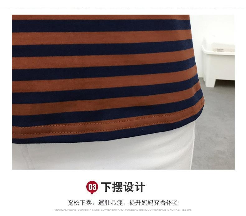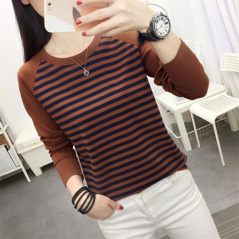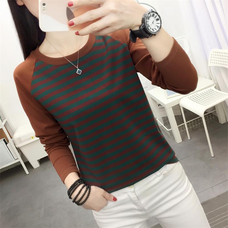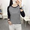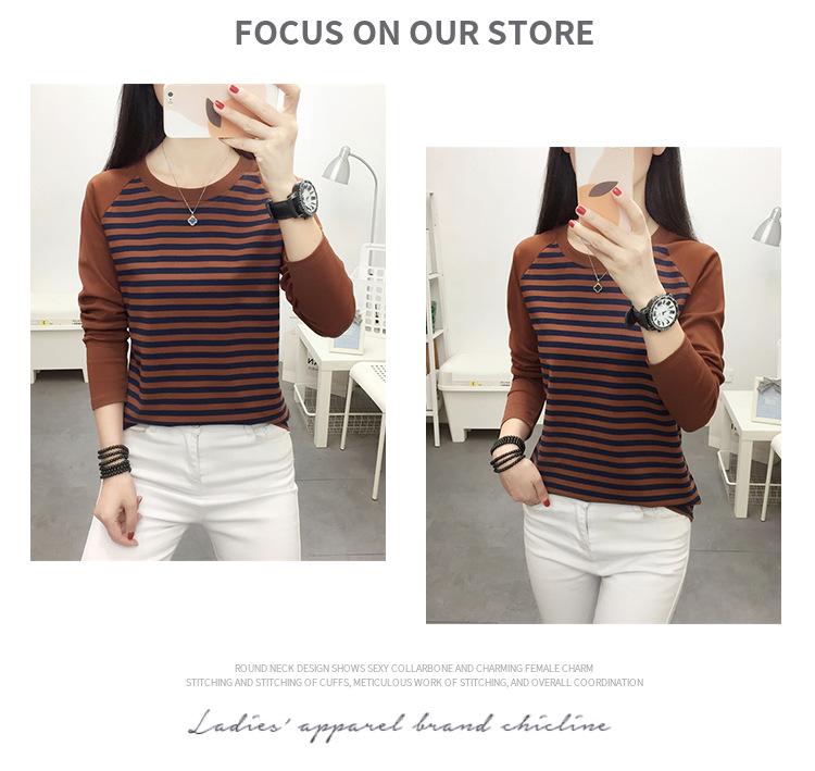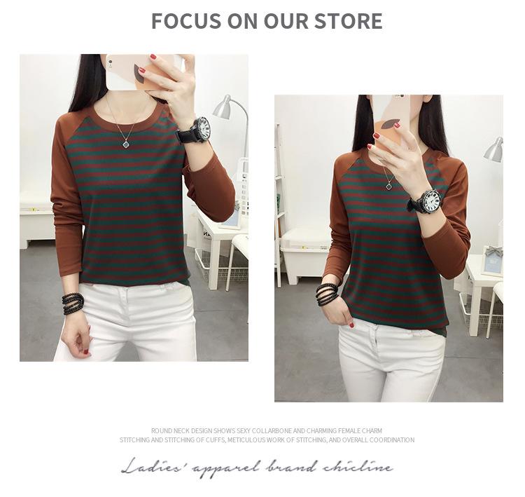Camiseta de manga larga de algodón para mujer, holgada, adelgazante, de talla grande, para primavera y otoño, con rayas