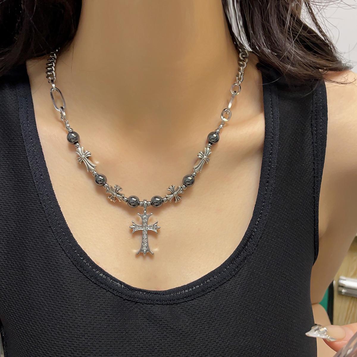Collar con cruz de diamantes retro europeo y americano para hombres y mujeres, diseño de nicho del mismo estilo, collar con colgante que combina con todo, cadena de suéter