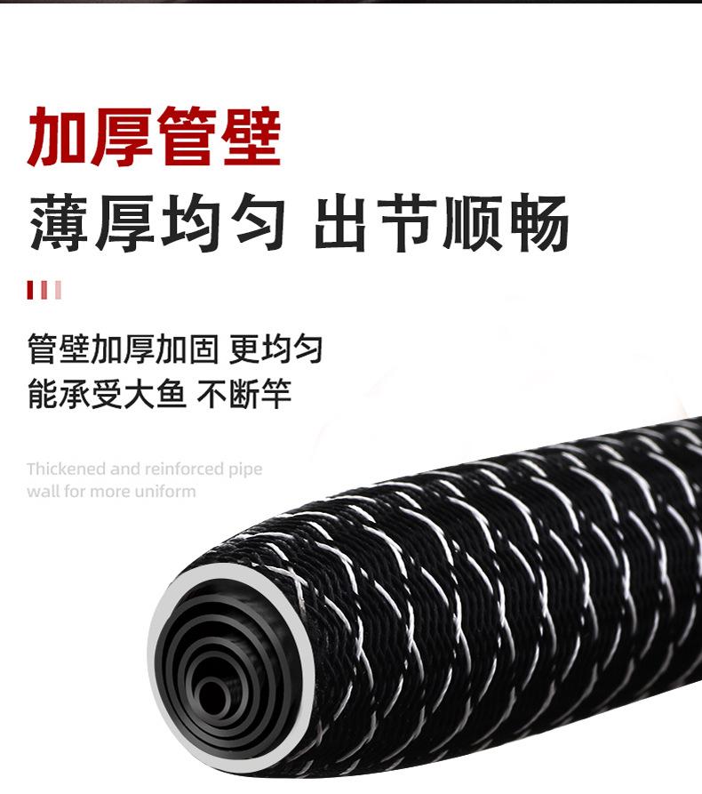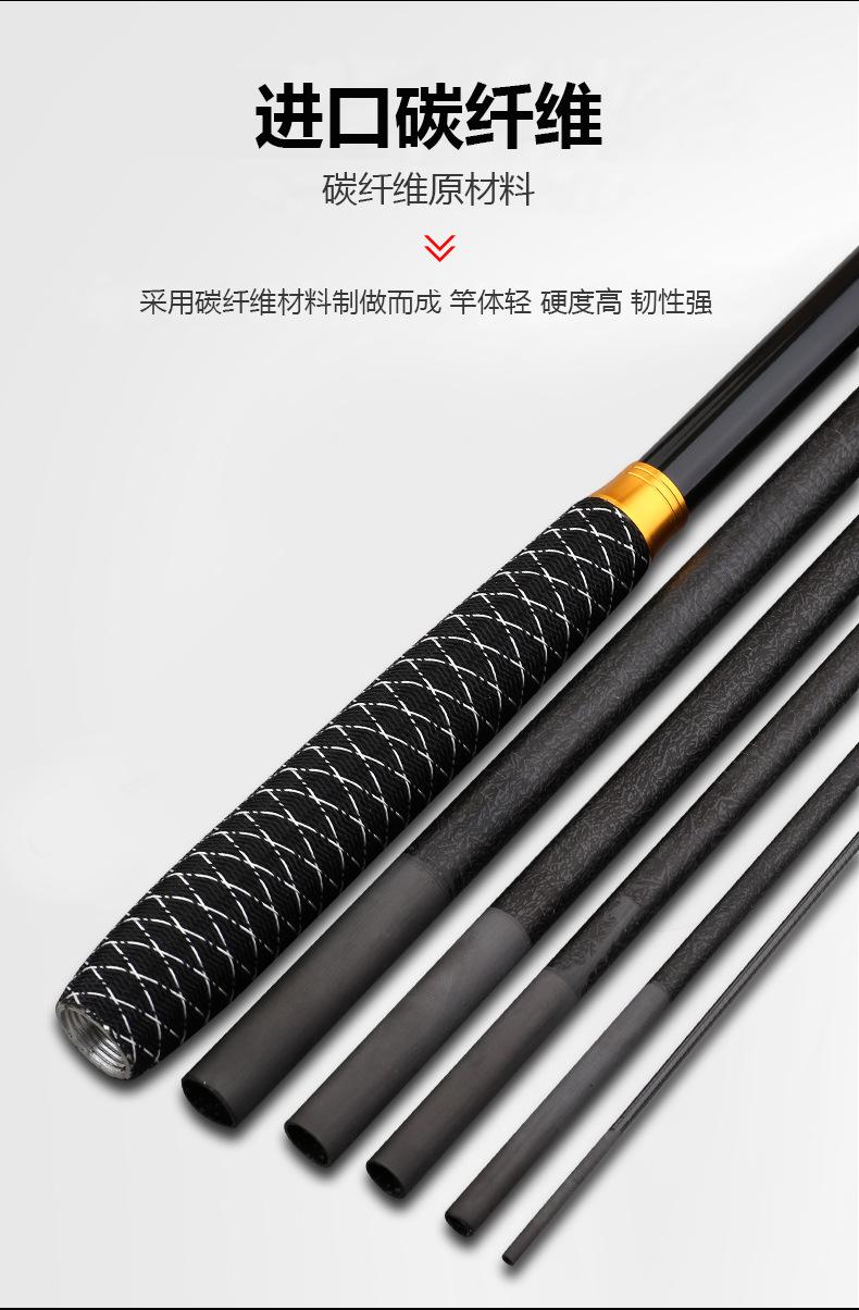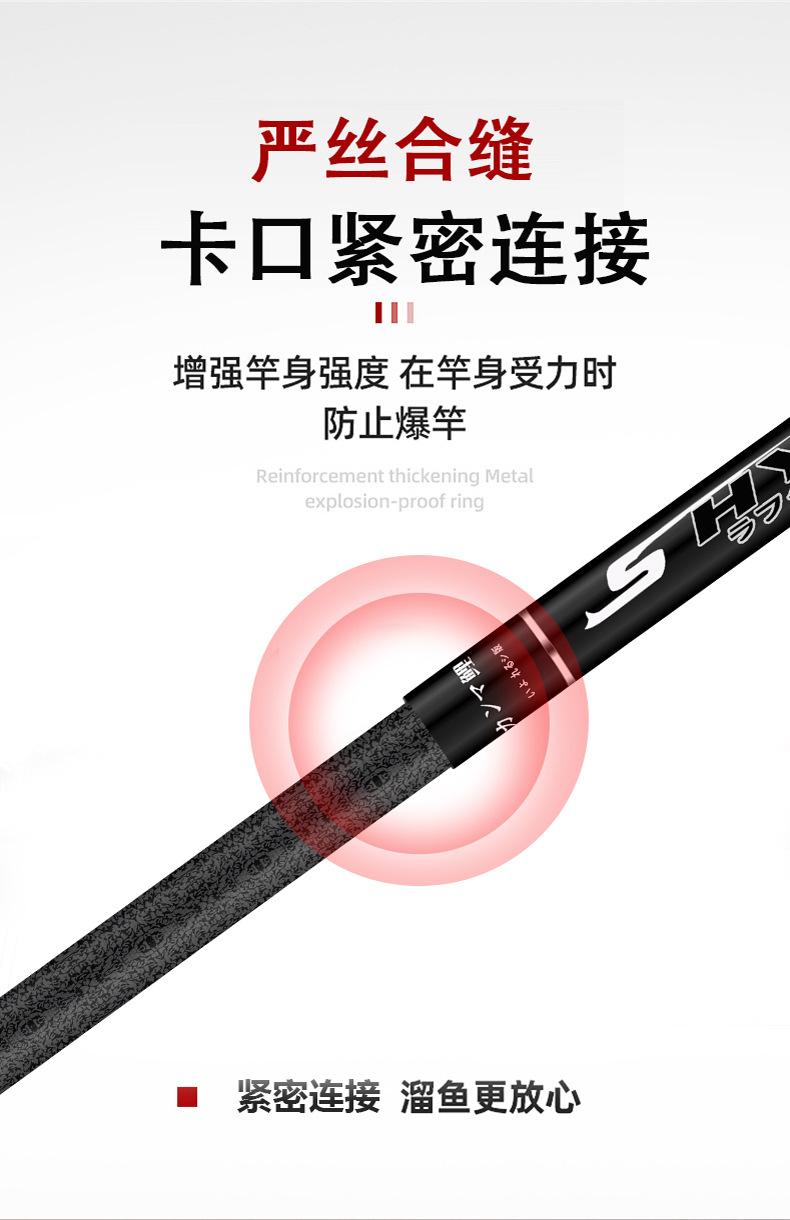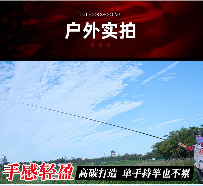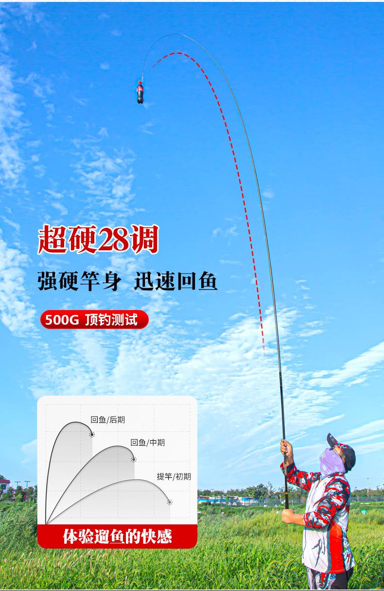 Este producto es producido y vendido en grandes cantidades por nuestra empresa, y la sección del mango está pintada con pintura de alta calidad. Los tamaños se dividen en 2,7 metros, 3,6 metros, 3,9 metros, 4,5 metros, 4,8 metros, 5,4 metros, 5,7 metros, 6,3 metros y 7,2 metros para que usted elija. La tonalidad de esta caña de pescar es de 28 y 37 grados, ideal para la pesca recreativa en aguas abiertas en diversas aguas y con una excelente sensibilidad para una variedad de peces. Bienvenidos a realizar pedidos. Se pueden fabricar productos personalizados para grandes cantidades. Si tiene alguna pregunta, consulte con el servicio de atención al cliente.